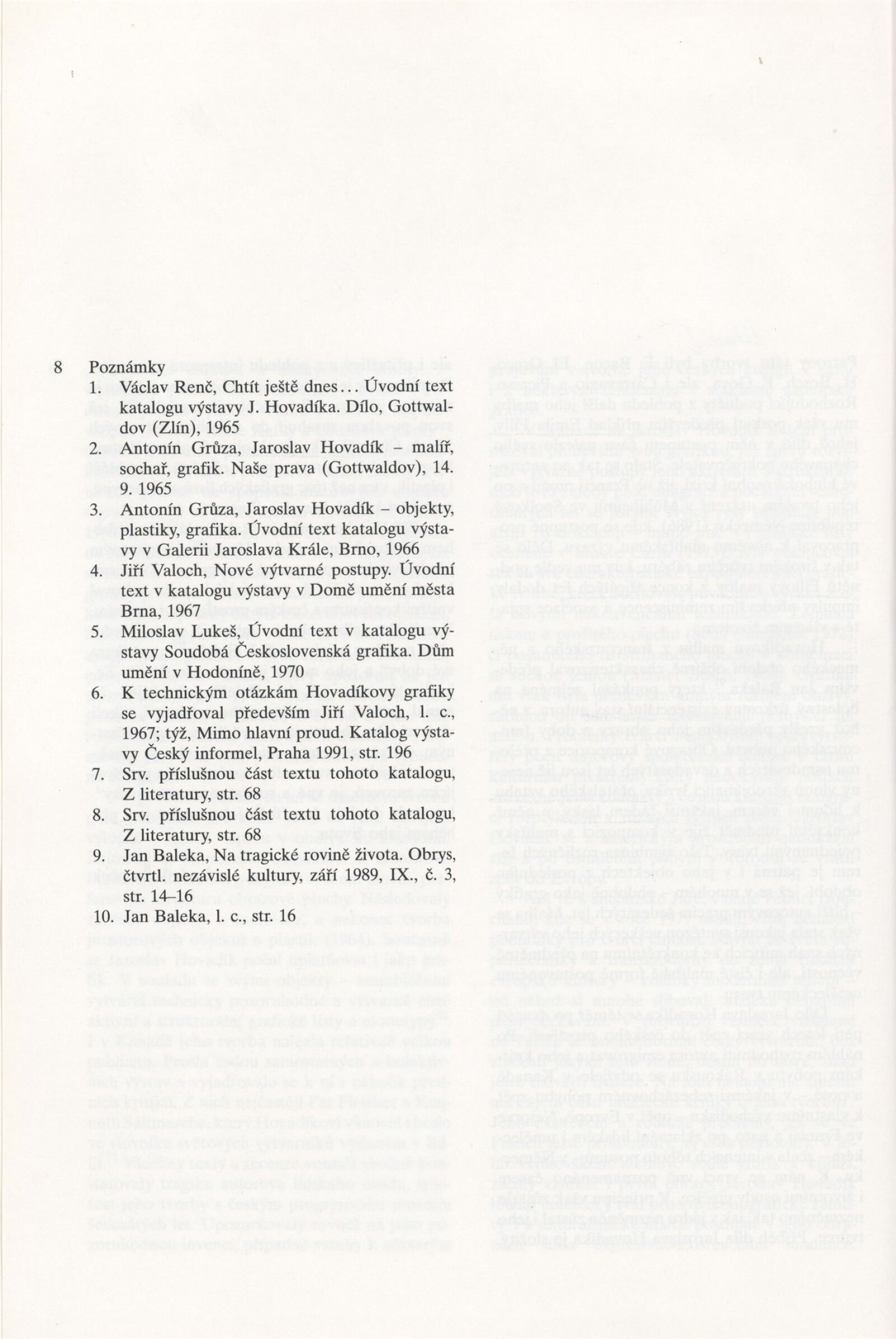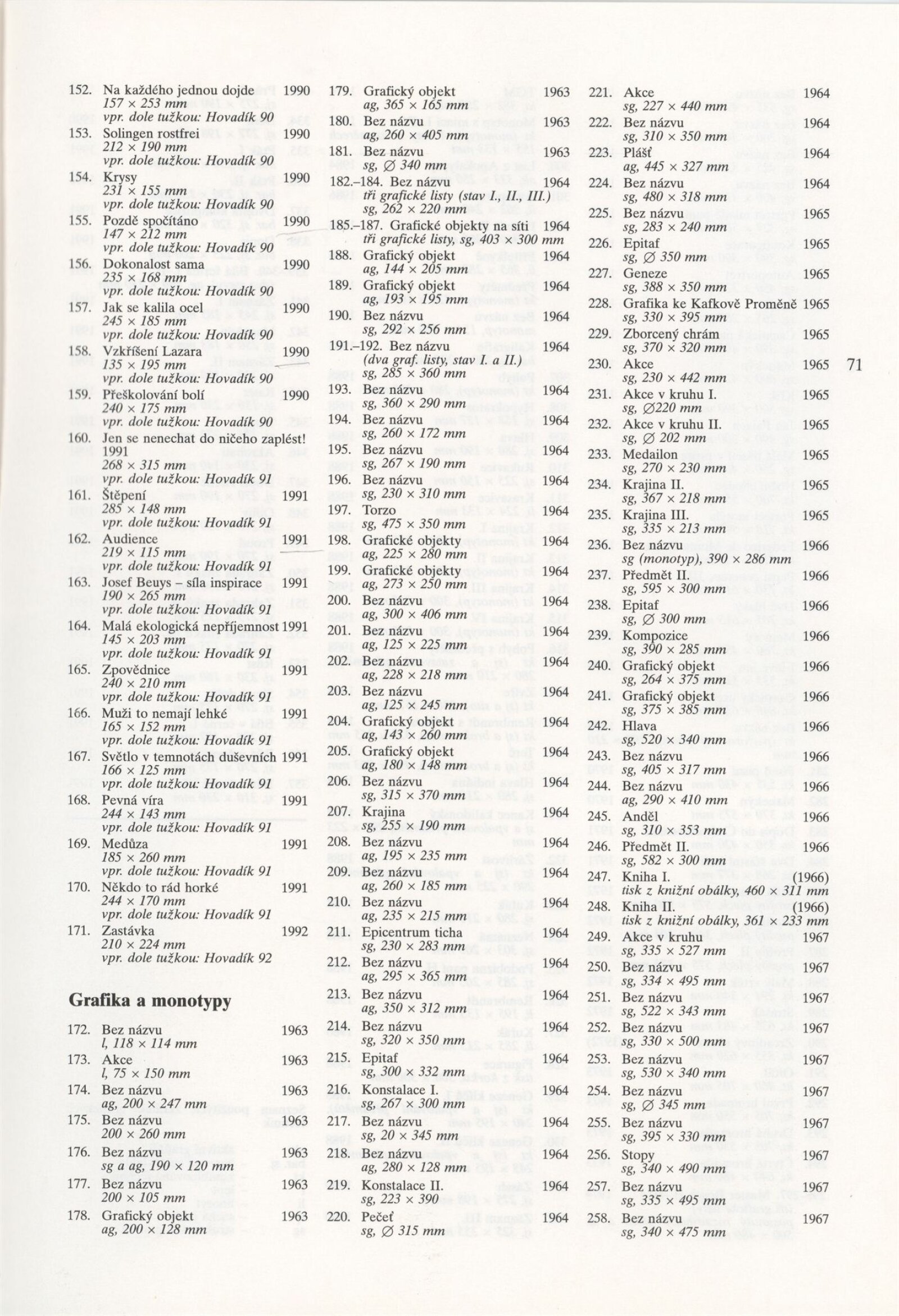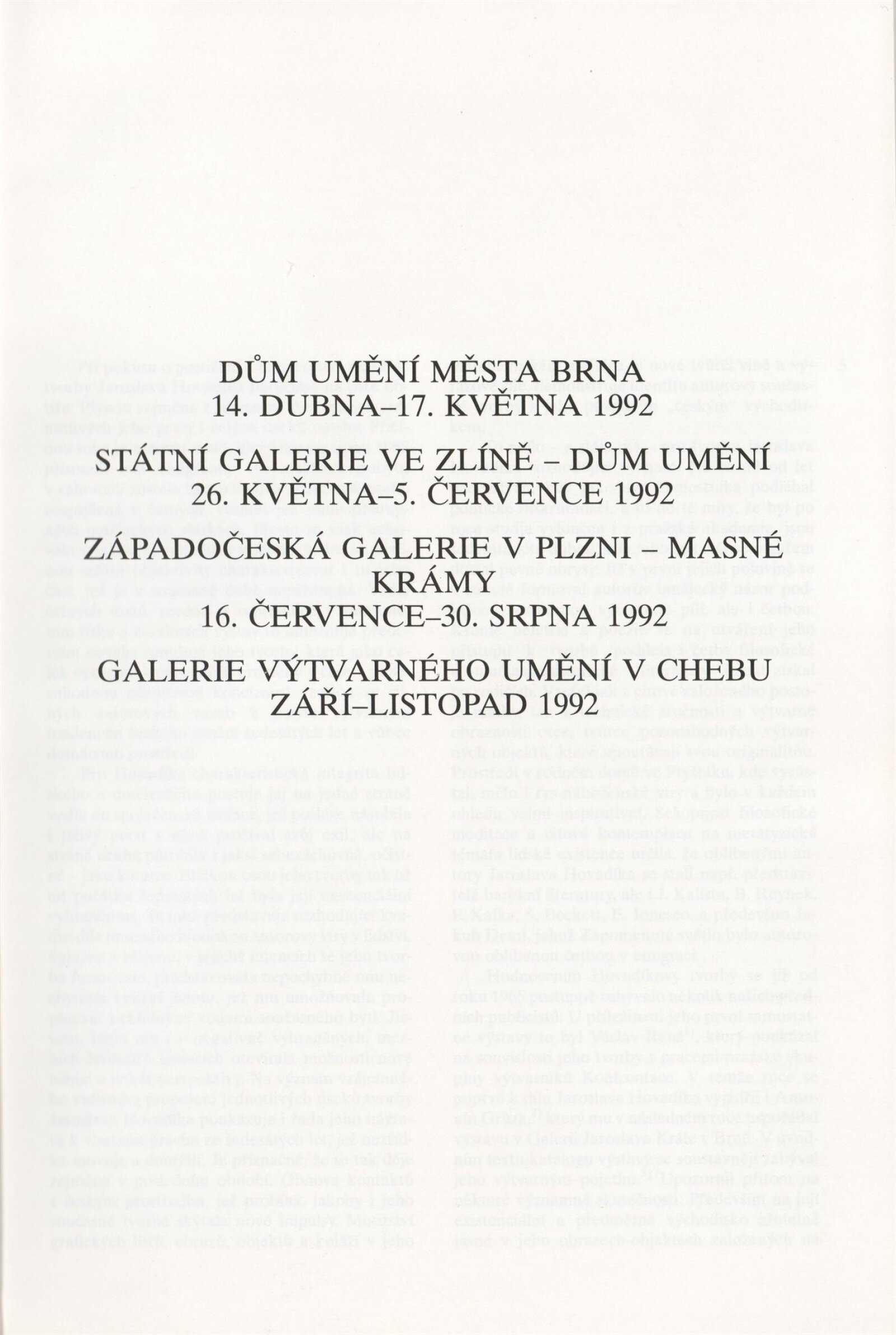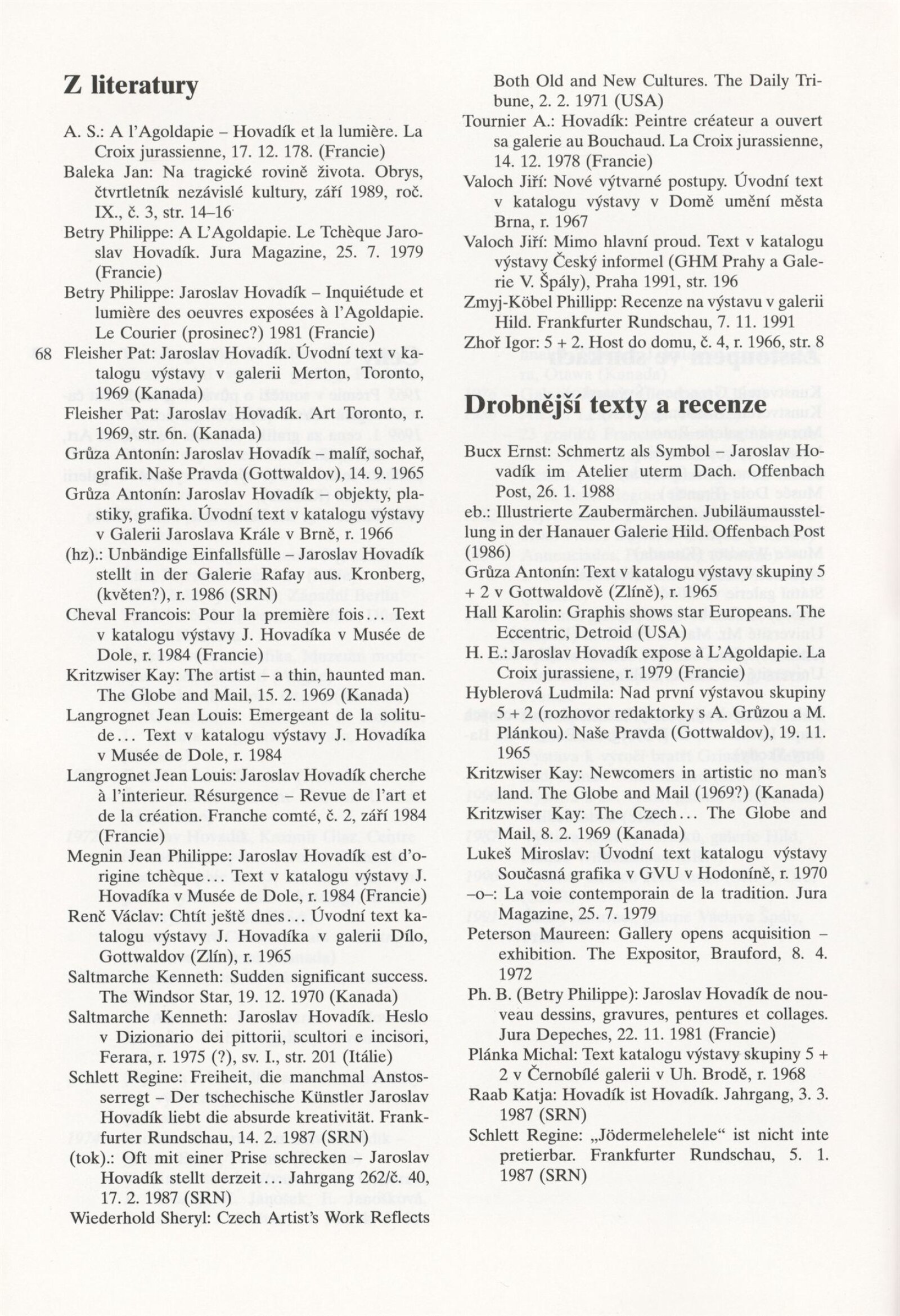 Jaroslav Hovadík. Obrazy, objekty, grafika, koláže: Dům umění města Brna, 14. 4. – 17. 5. 1992 / Text Ludvík Ševeček. – Zlín: Státní galerie, 1992. – 72 s., obr., portrét, životní data, výstavy, zastoupení ve sbírkách, ceny, bibliografie, DU 922