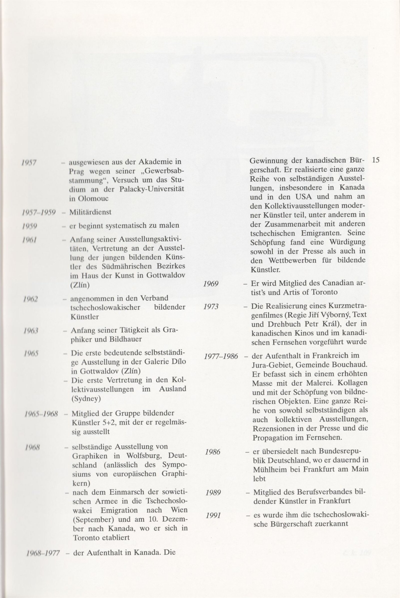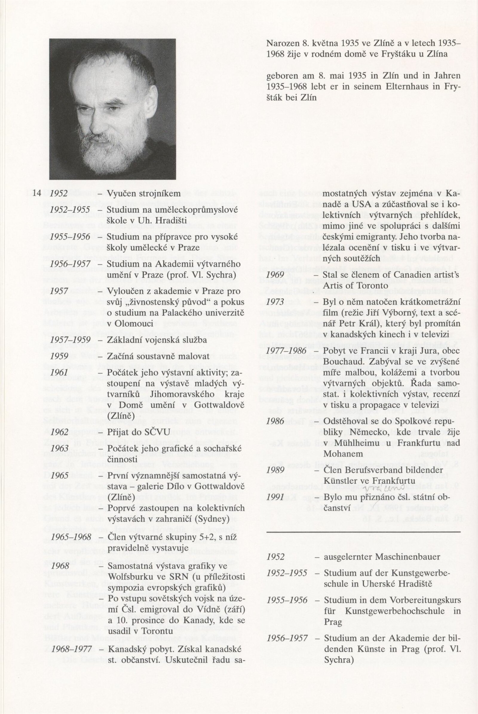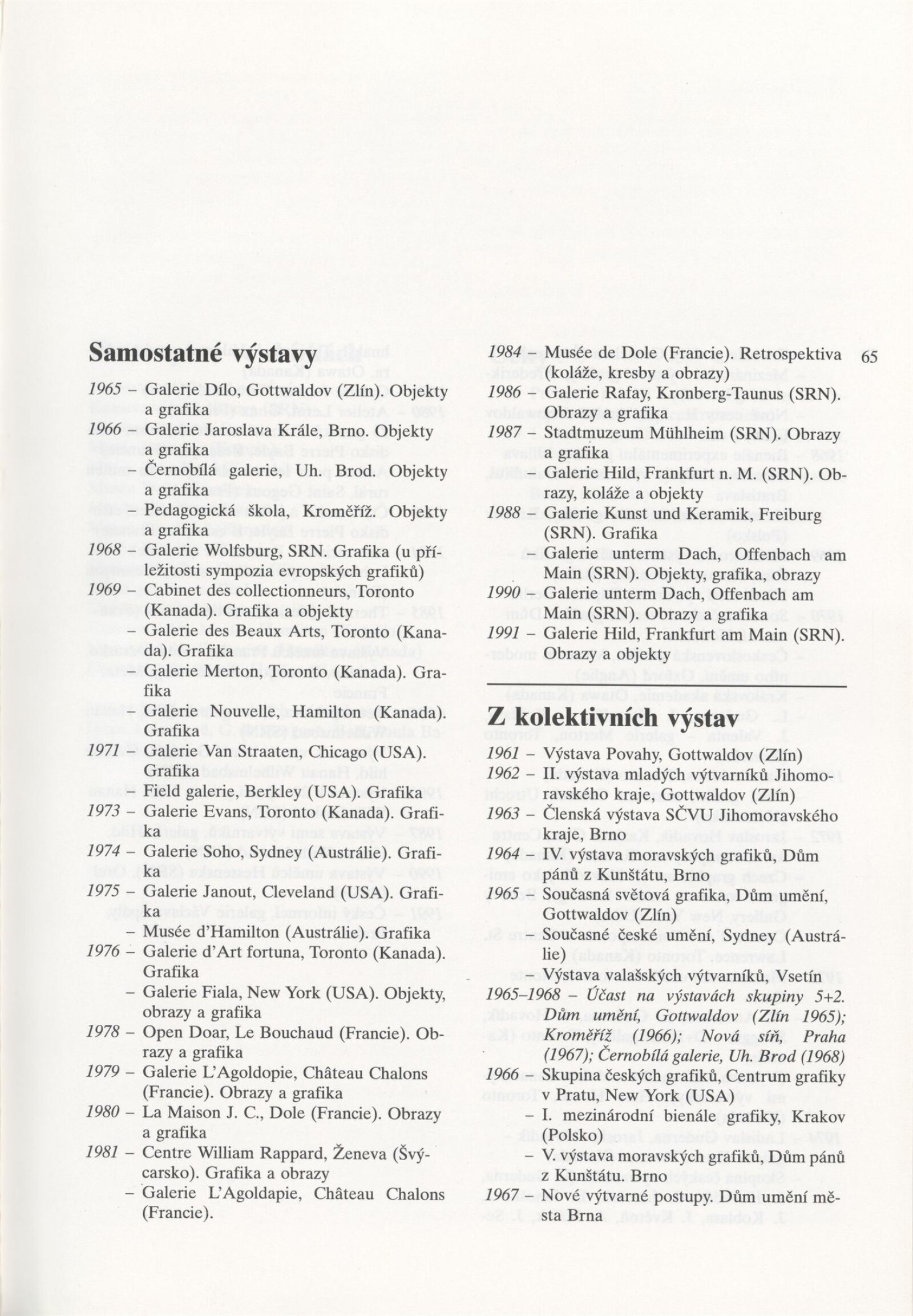 pozvánka, katalog - společný pro výstavy v Brně, Zlíně, Plzni a v Chebu), předávací protokol, hospodářská smlouva DU - Státní galerie Zlín, recenze v tisku, katalog k autorově výstavě v Gottwaldově (1965), pozvánka na výstavu v Brně (1966), katalog k výstavě A. Střížka v Praze (1991), poznámky