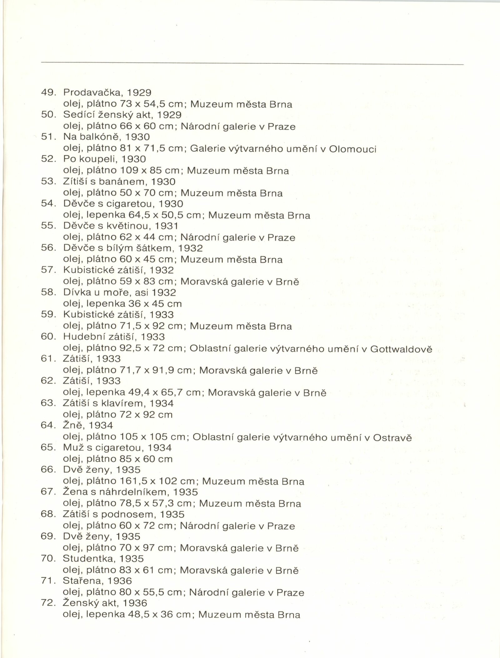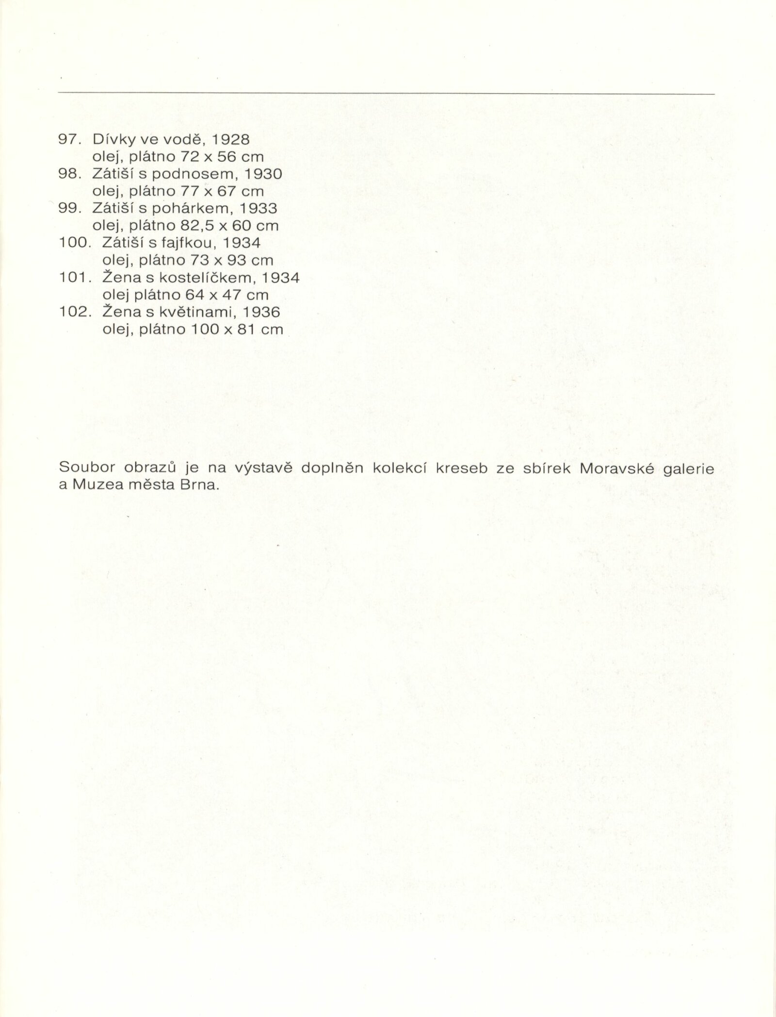 pozvánka, katalog, seznam vystavených děl, pojistný seznam, zpráva pro média, provozní korespondence (1989-1987), smlouvy o výpůjčce, potvrzení o převzetí, reversy, hospodářská smlouva, smlouva o spolupořádání výstavy, žádost a potvrzení o konání výstavy, recenze v tisku