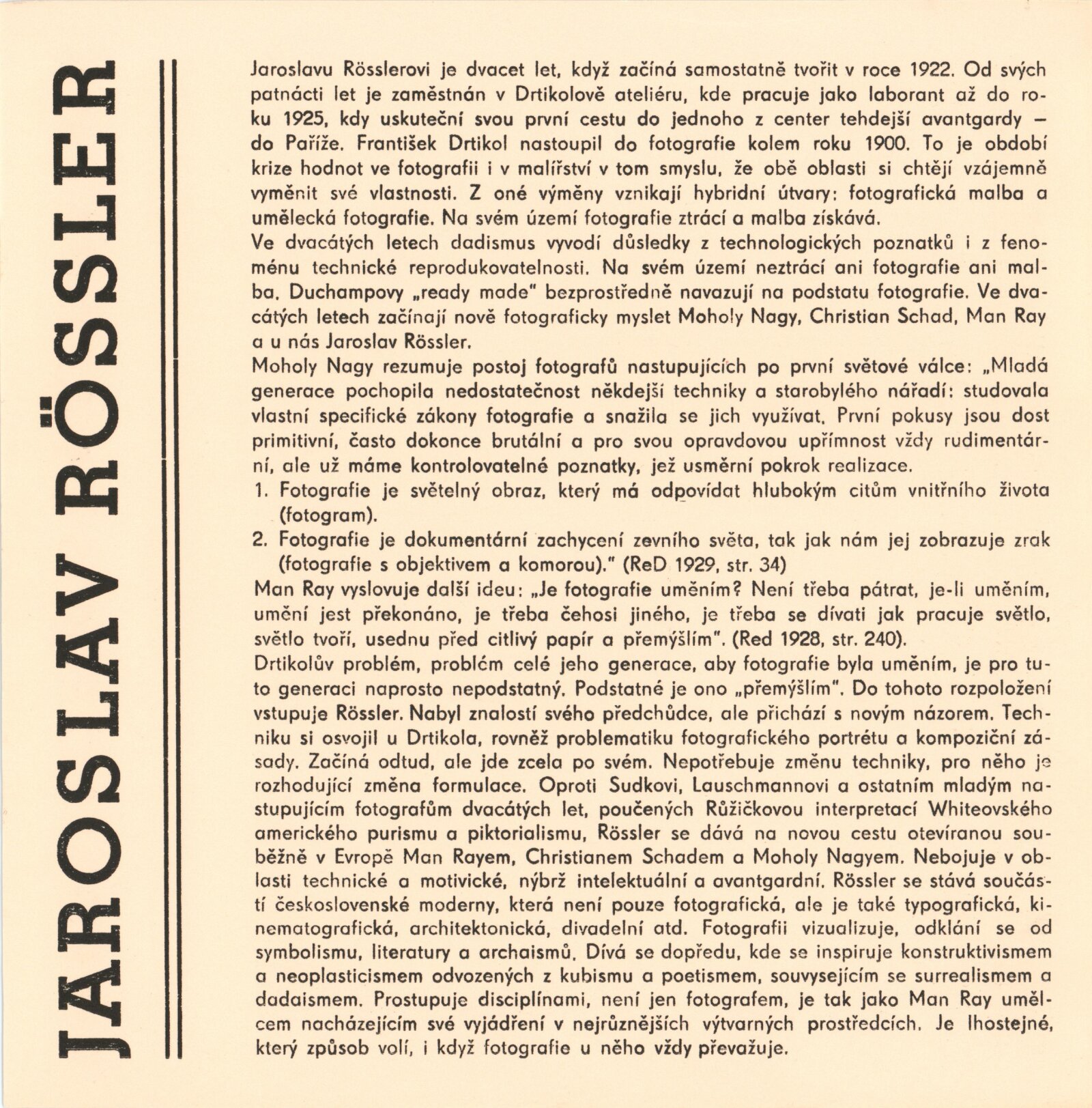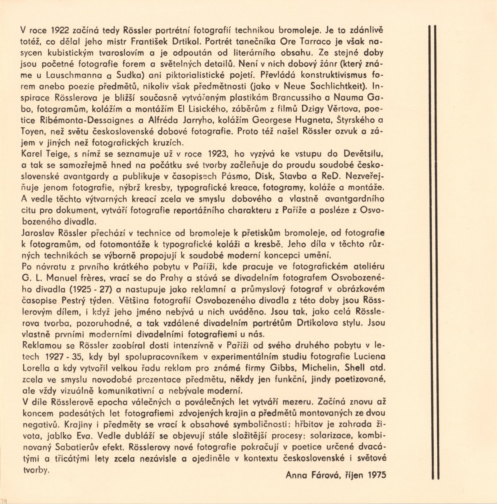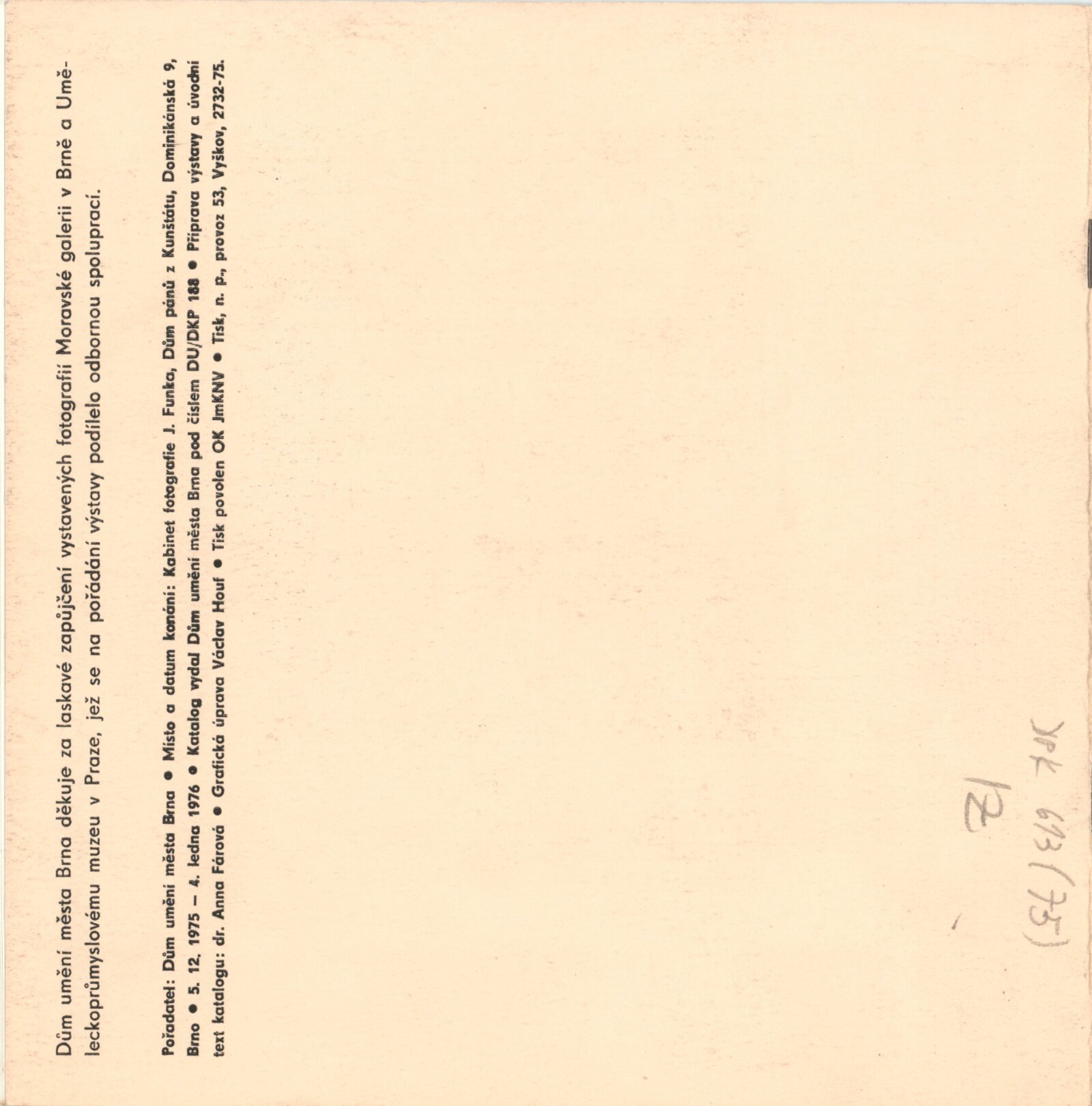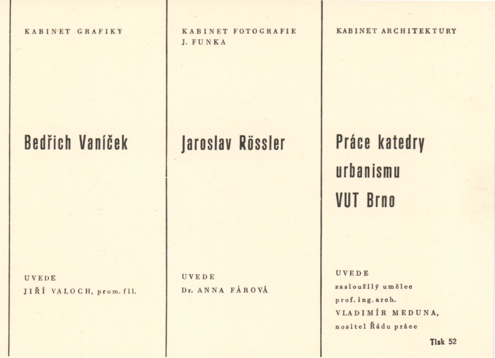 Jaroslav Rőssler: Dům umění / Dům pánů z Kunštátu, Kabinet fotografie Jaromíra Funka, 5. 12. 1975 – 4. 1. 1976 / Text: Anna Fárová. – Brno: DUmB, 1975. – skládačka 6 s., 8 s. obr. příl., DPK 613