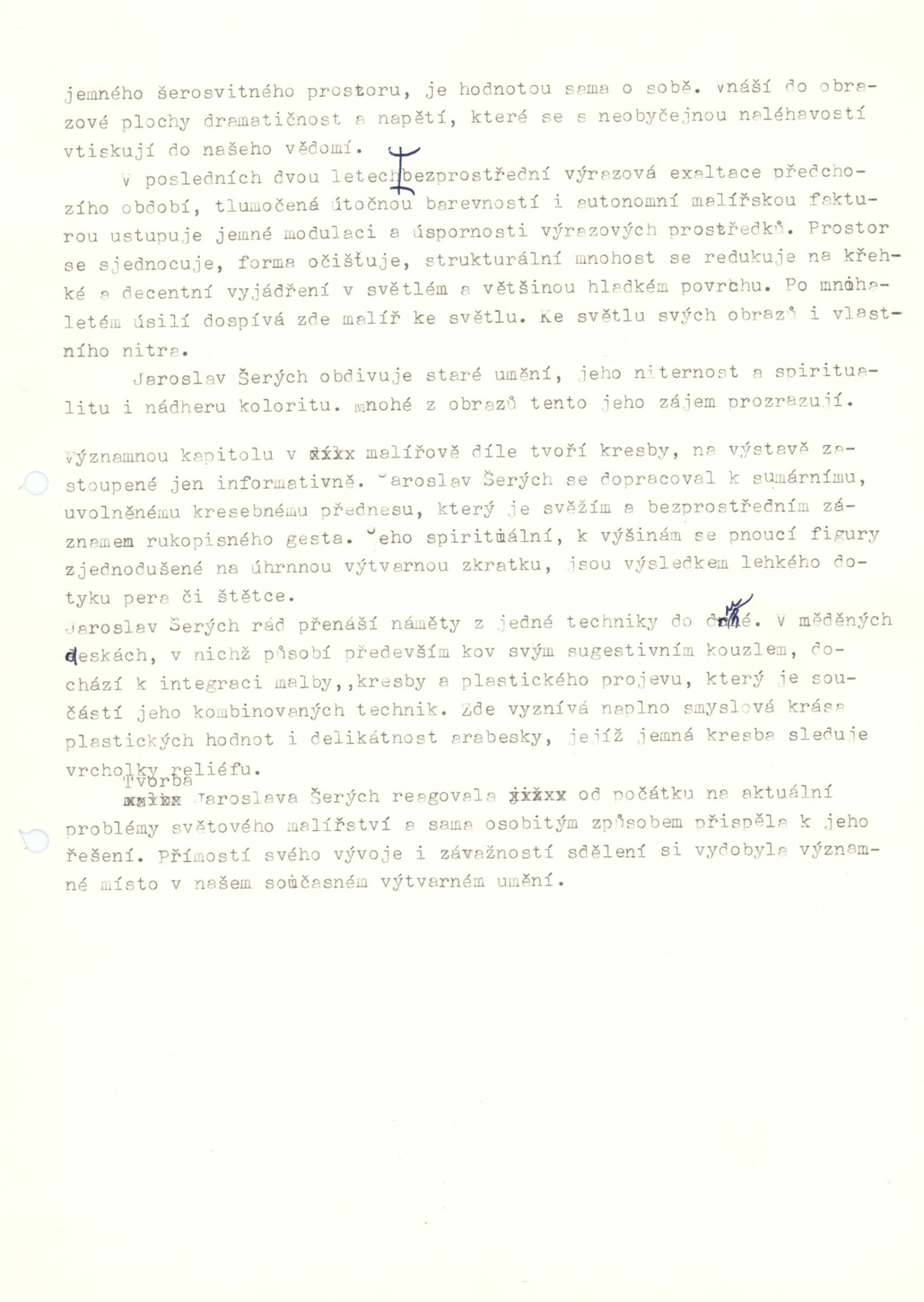 pozvánka, katalog a úvodní slovo, strojopis, fotografie výstavy a děl, seznam vystavených děl, provozní korespondence, potvrzení o převzetí, hospodářská smlouva, žádost o povolení výstavy, recenze v tisku, katalog k výstavě Jaroslava Šerýcha v Praze (1986)