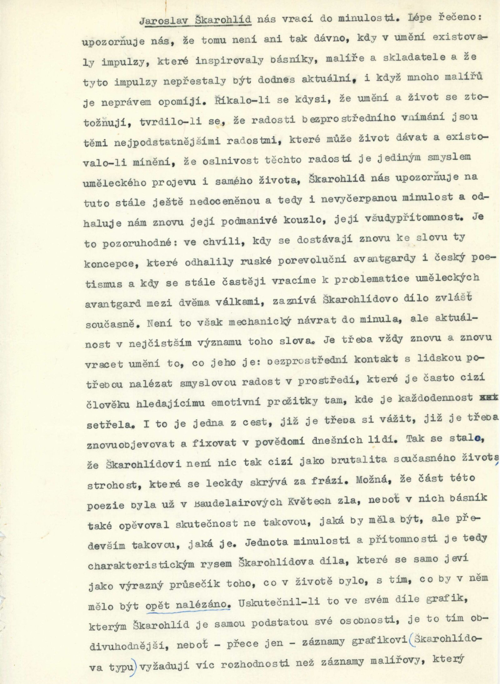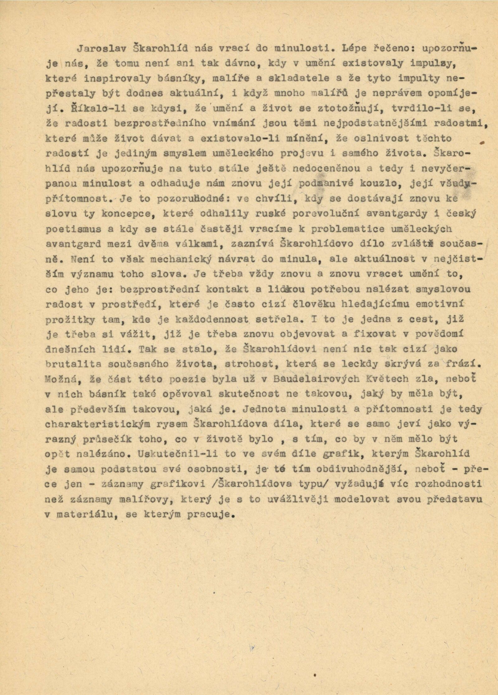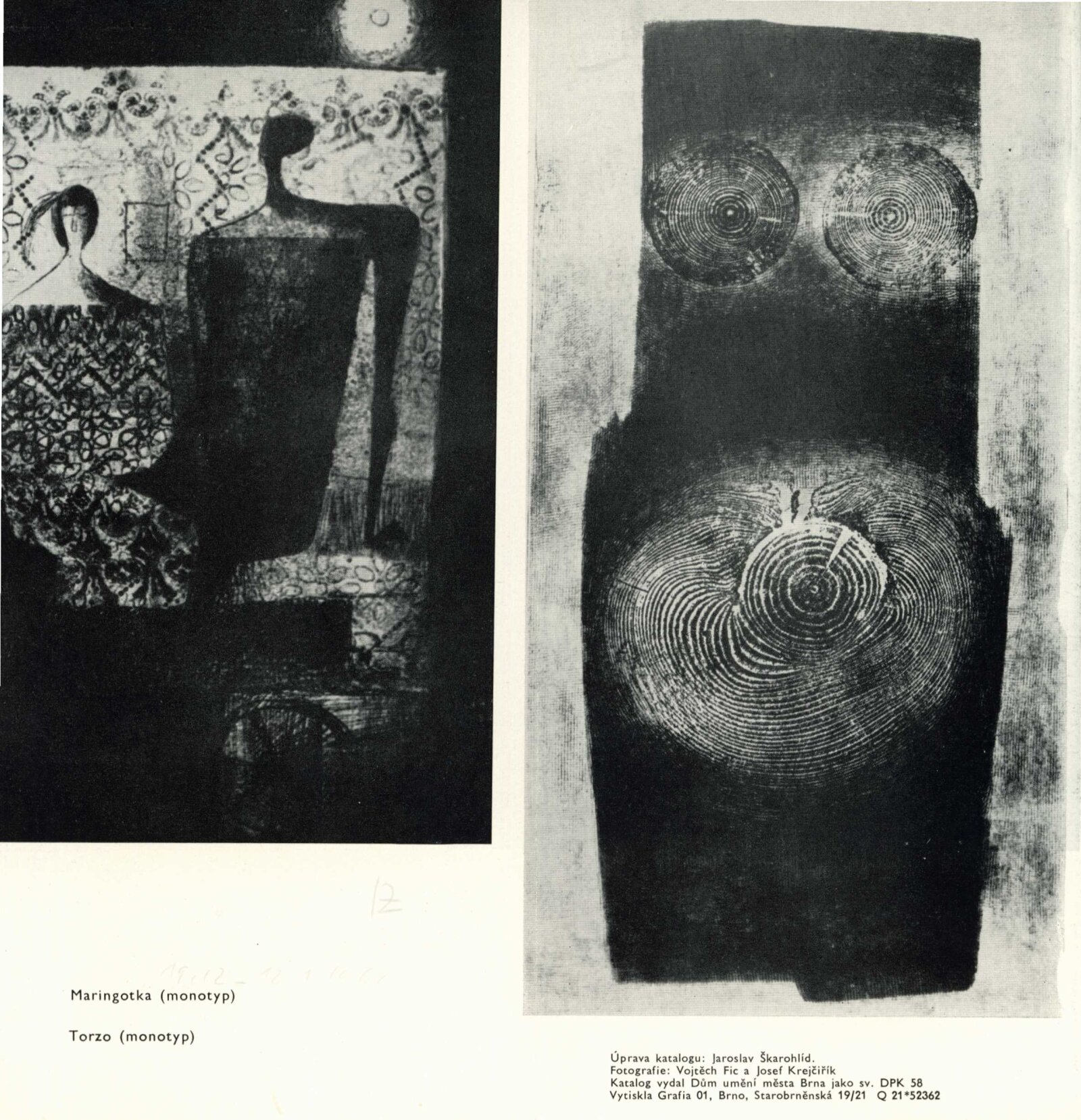 pozvánka, katalog, texty o díle Jaroslava Škarohlída a Josefa Krejčiříka, strojopis katalogu (Václav Zykmund), fotografie z vernisáže, smlouva s vystavovateli, žádost autorů o vyjádření výboru SČsVU o pořádání výstavy, recenze v tisku