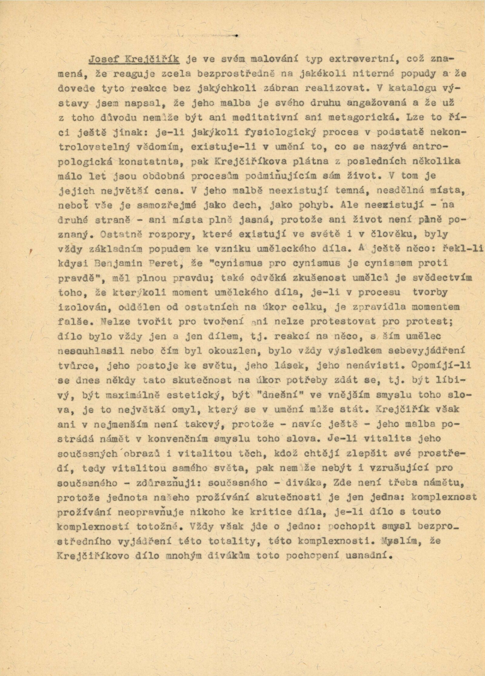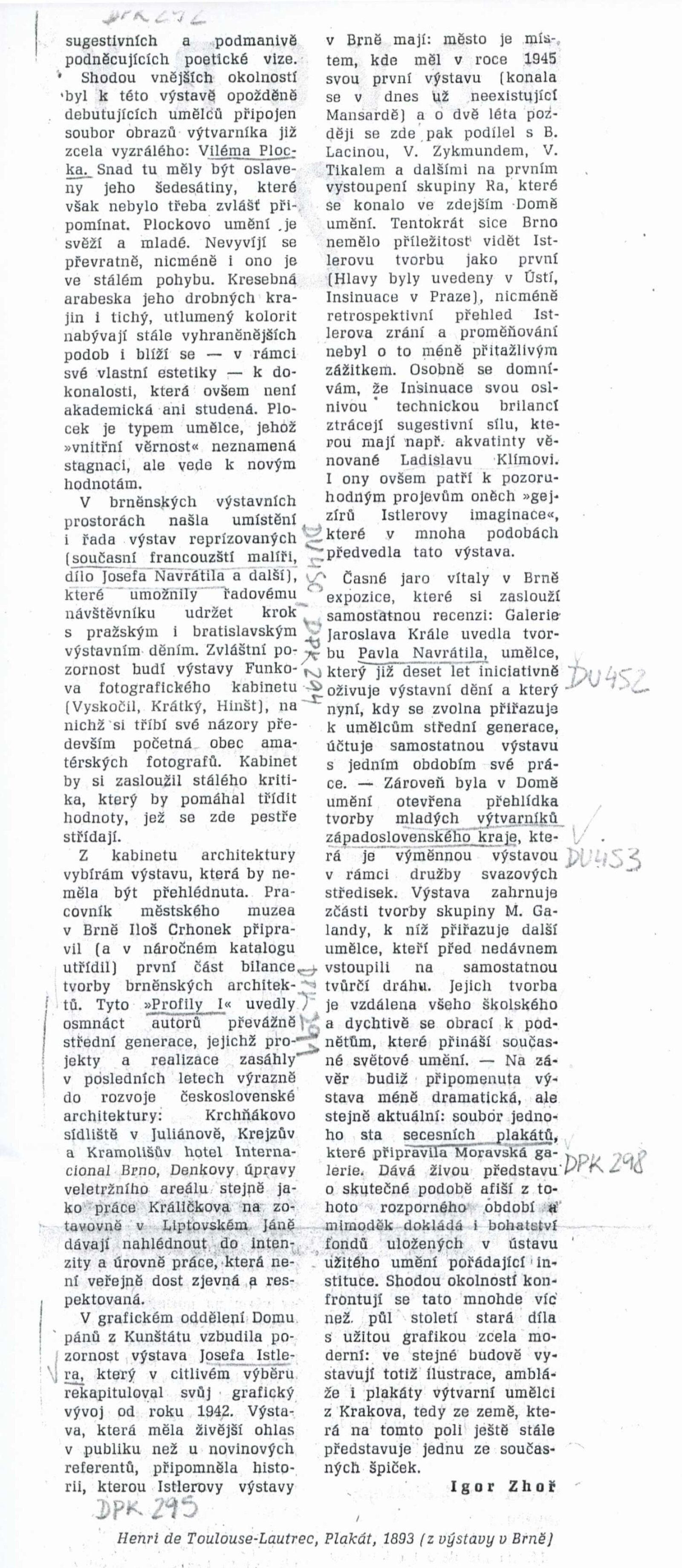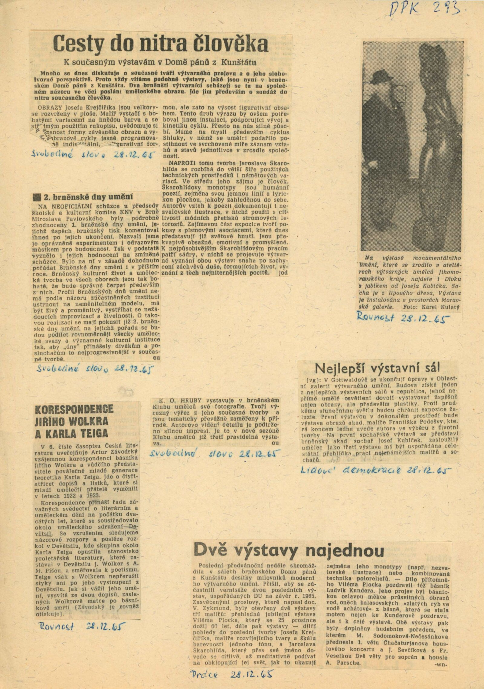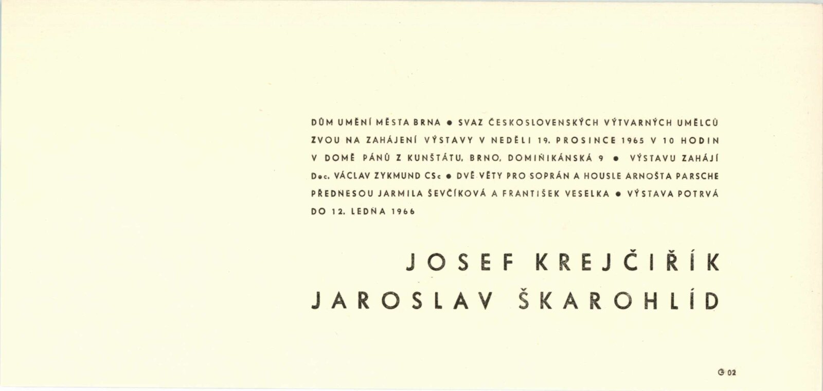 Jasroslav Škarohlíd. Josef Krejčiřík: Dům umění města Brna / Dům pánů z Kunštátu, 19. 12. 1965 – 12. 1. 1966 / Text: Václav Zykmund. – Brno: DUmB, 1965. – skládačka, 14 s., obr., DPK 293. – MZK; MG; MMB
