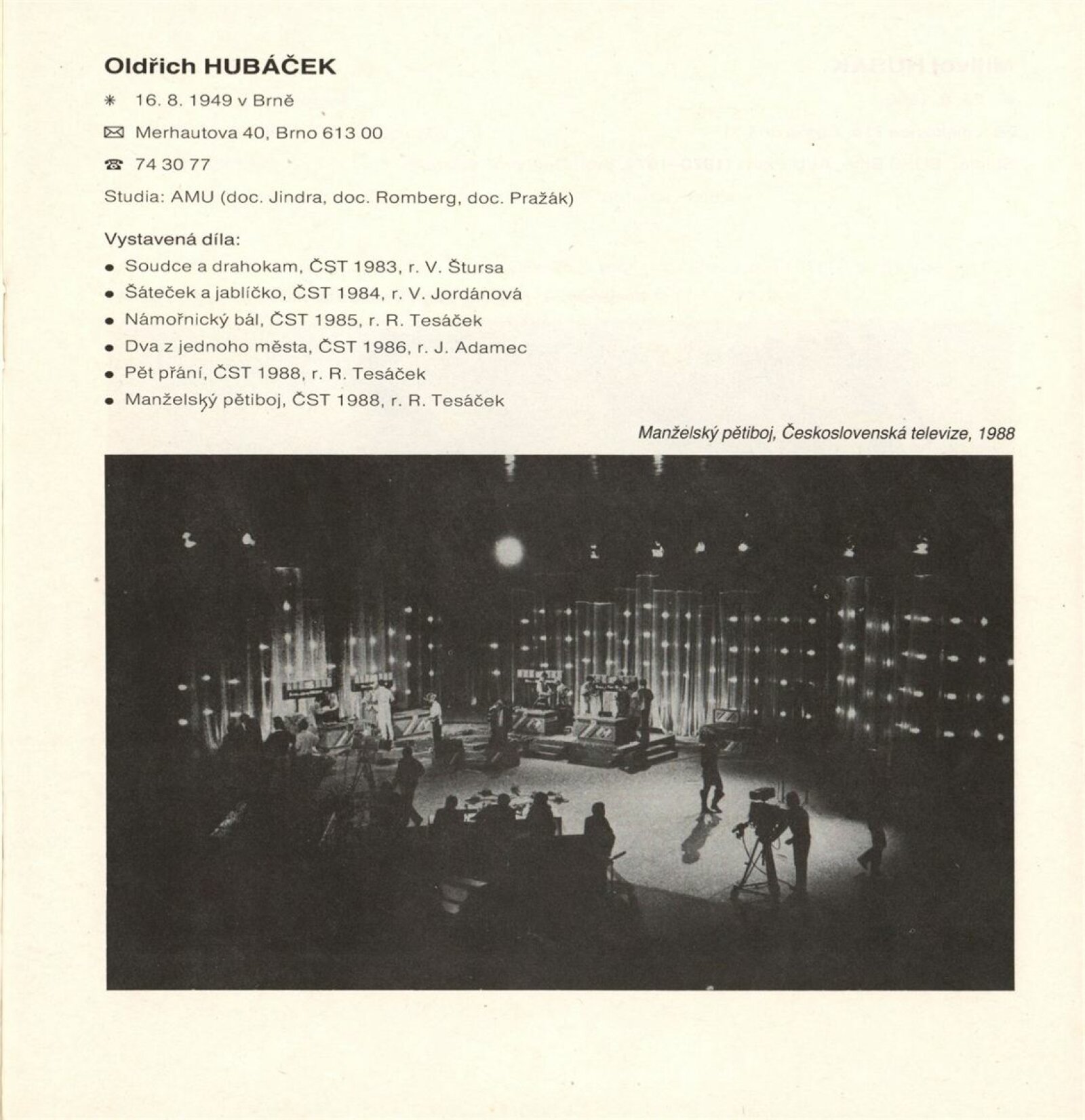 Vladimír Ambroz, Oldřich Hubáček, Milivoj Husák, Zdeněk Hybler, Emil Konečný, Jan Konečný, Naděžda Kubinská-Hanáková, Alice Lašková, Jaroslav Milfajt, Eva Milichovská, Boris Mysliveček, Jarmila Opletalová, Jiří Pitr, Ilda Pitrová, Jana Preková, Tomáš Ruller, Vladimír Smrčka, Josef Adolf Šálek, Blanka Šperková, Vojtěch Štolfa, Inez Tuschnerová, Alois Vobejda, Milan Zezula, Karel Zmrzlý, Dušan Ždímal