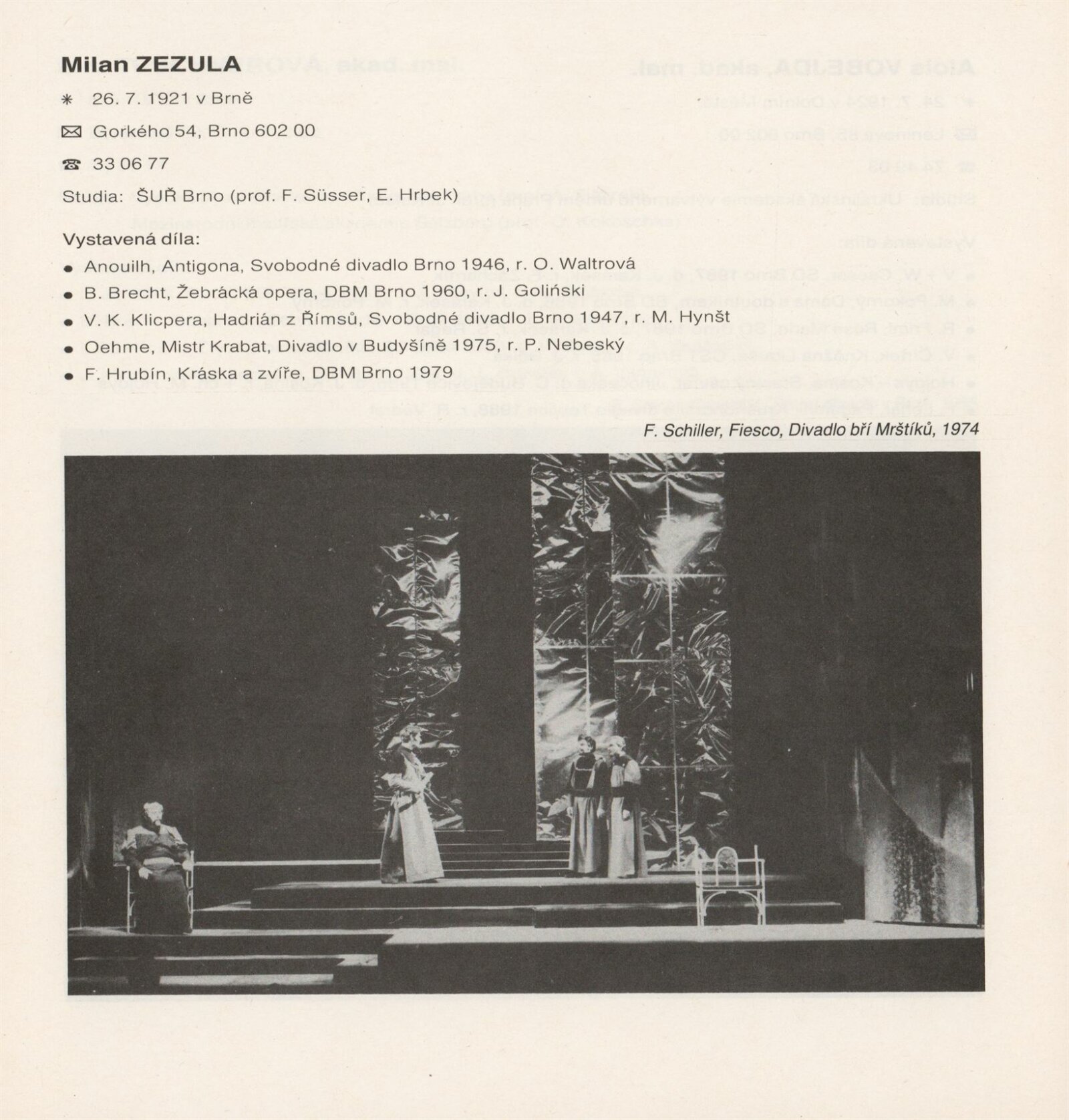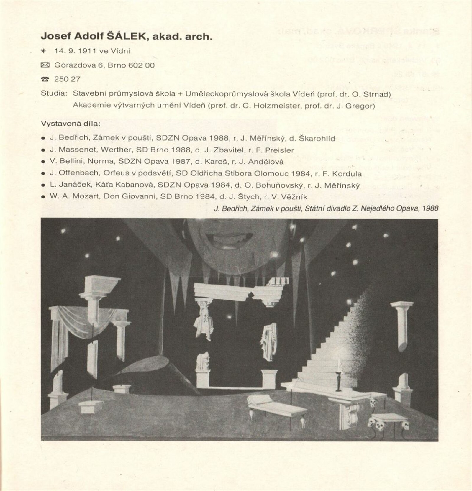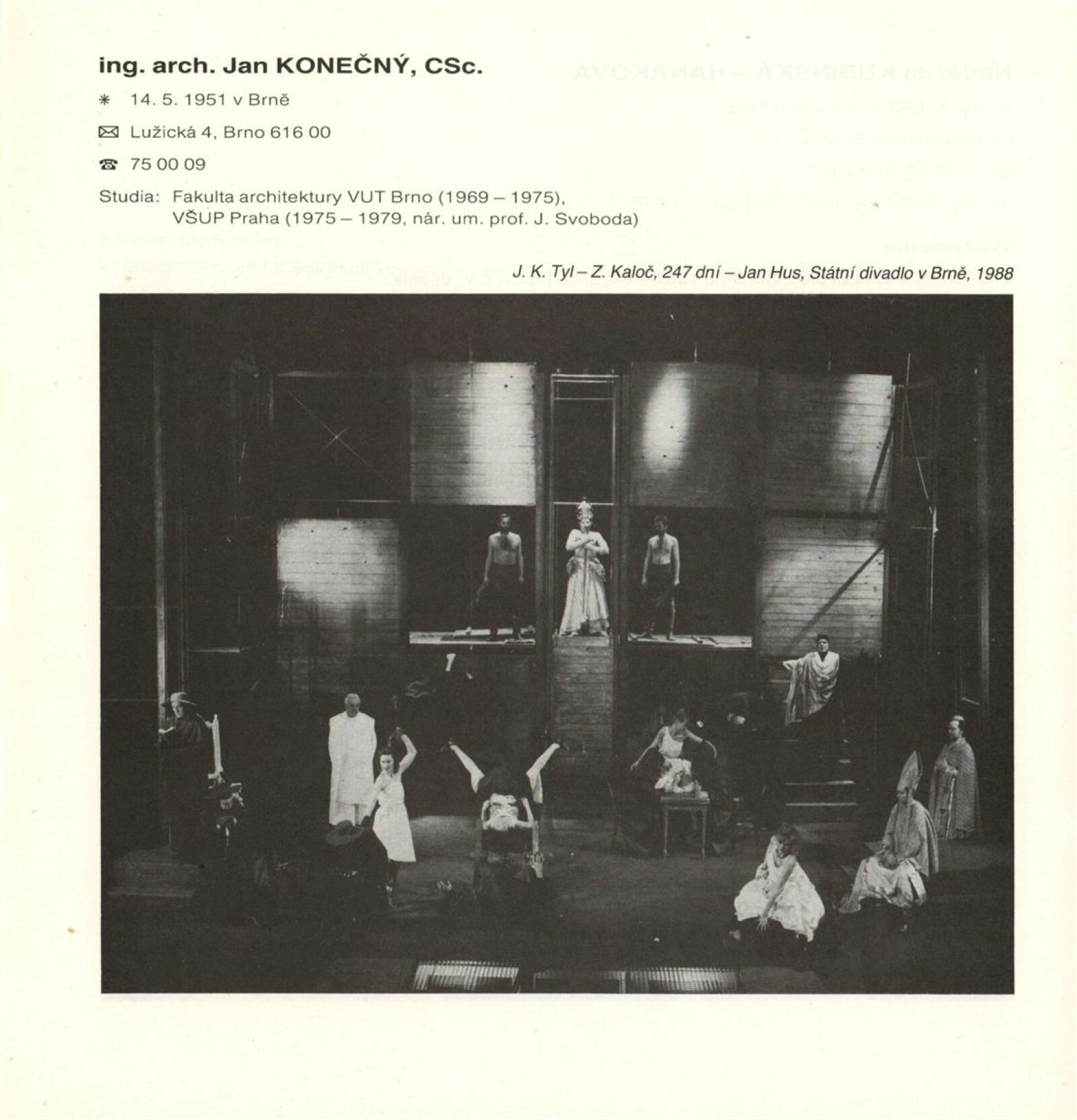 Jihomoravská scénografie ´89. Výstava členů a kandidátů SČVU a profesionálních výtvarníků Jihomoravského kraje: Dům umění města Brna, Galerie Jaroslava Krále, hala, 21. 6. – 20. 8. 1989 / Texty: Vojtěch Štolfa, Jiřina Telcová, Zuzana Ledererová. – Brno: SČVU, 1989. – [34] s., obr., DU 870. – MG