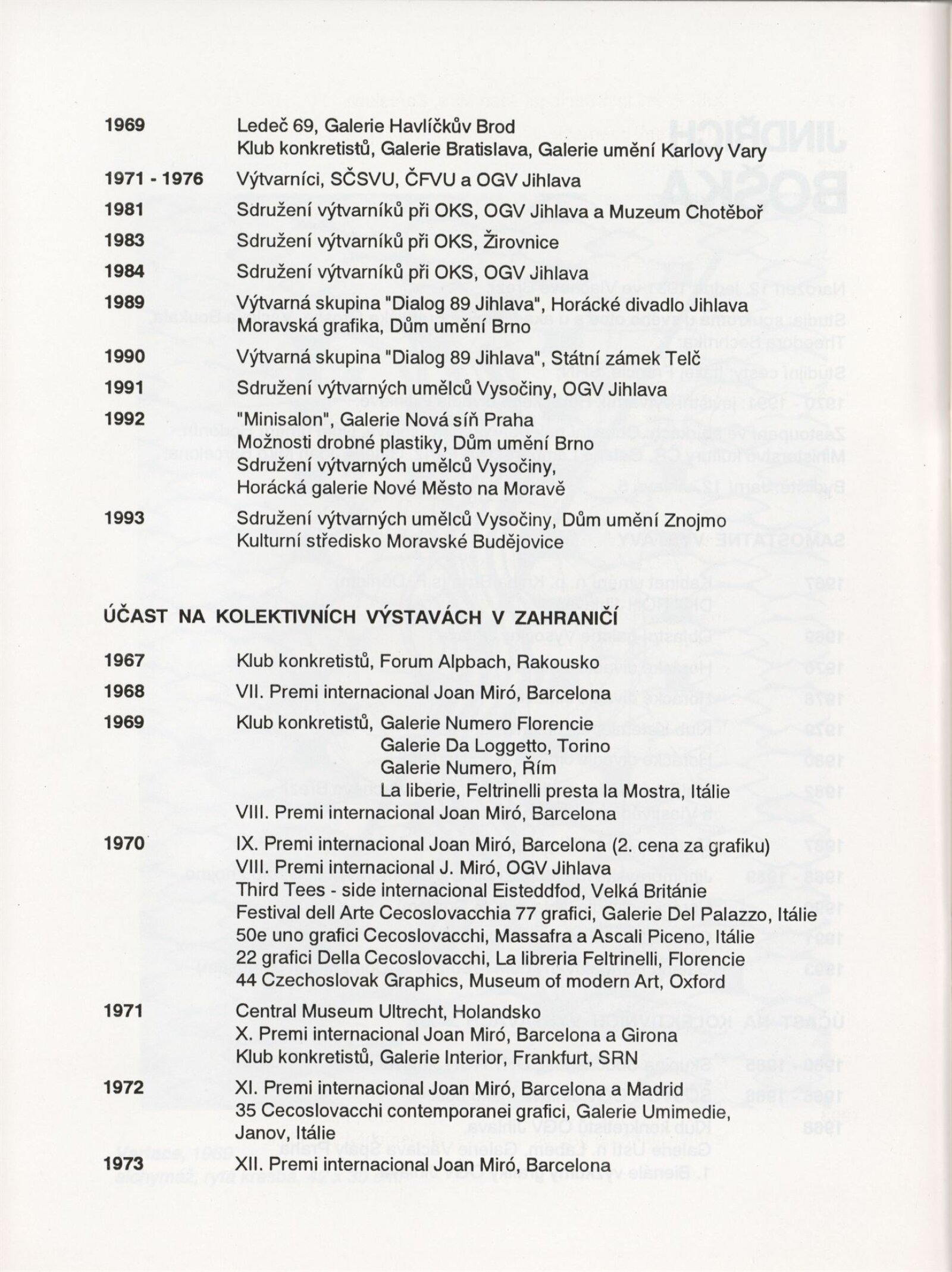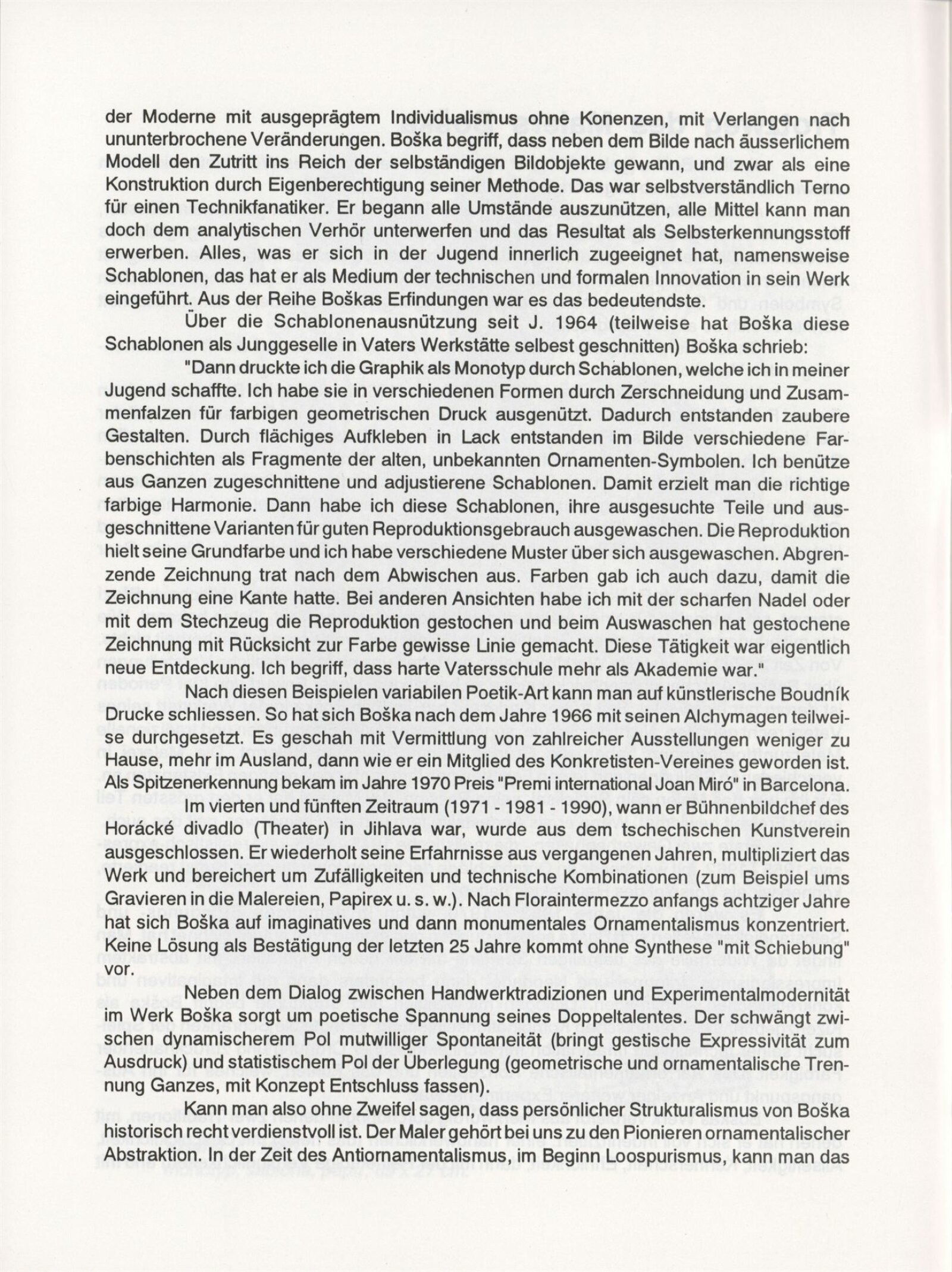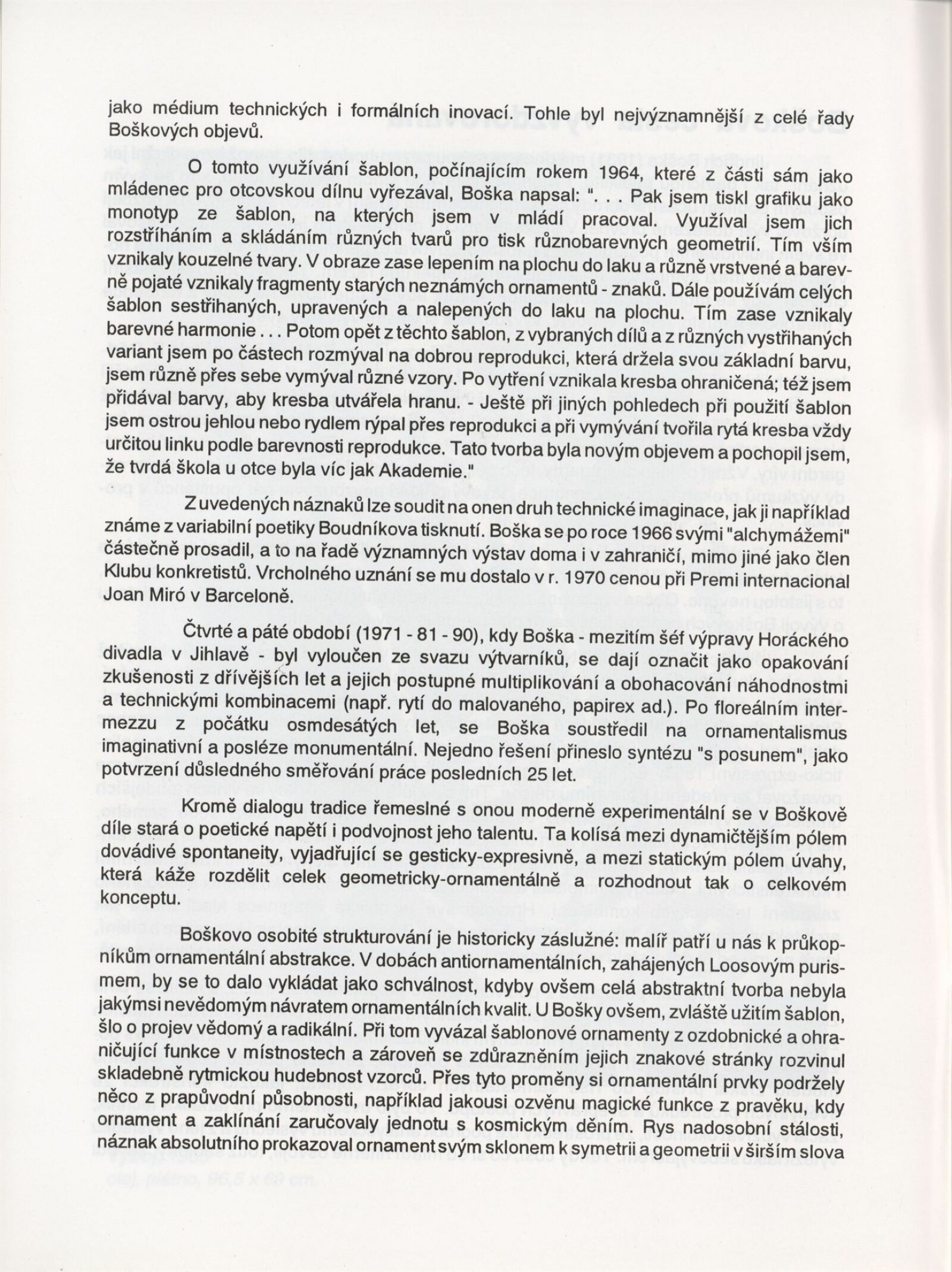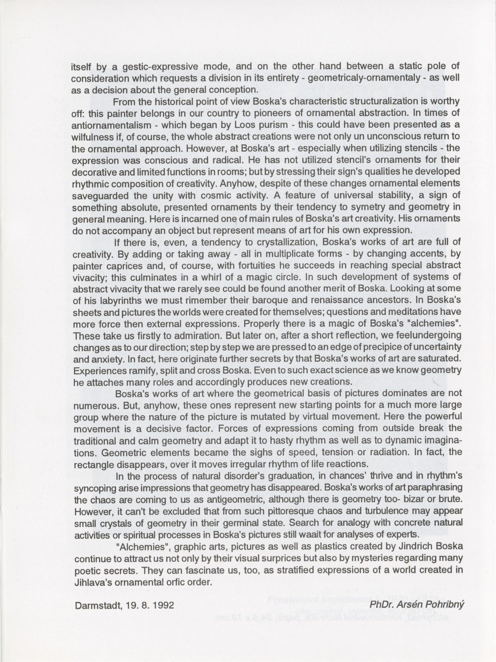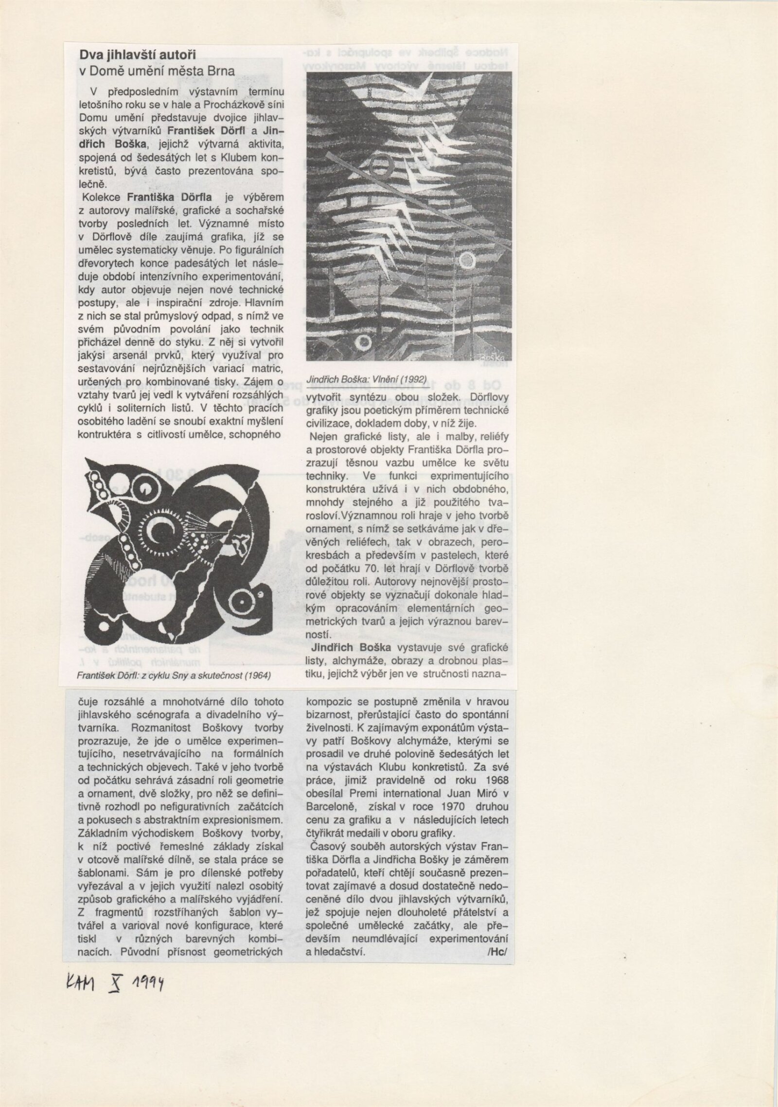 Jindřich Boška. Průřez tvorbou: ... Dům umění města Brna, Procházkova síň, ... 27. 10. – 27. 11. 1994 / Text Arsén Pohribný. - Jihlava: Oblastní galerie Vysočiny, - [38] s., obr. Životní data, výstavy DU 980; MZK