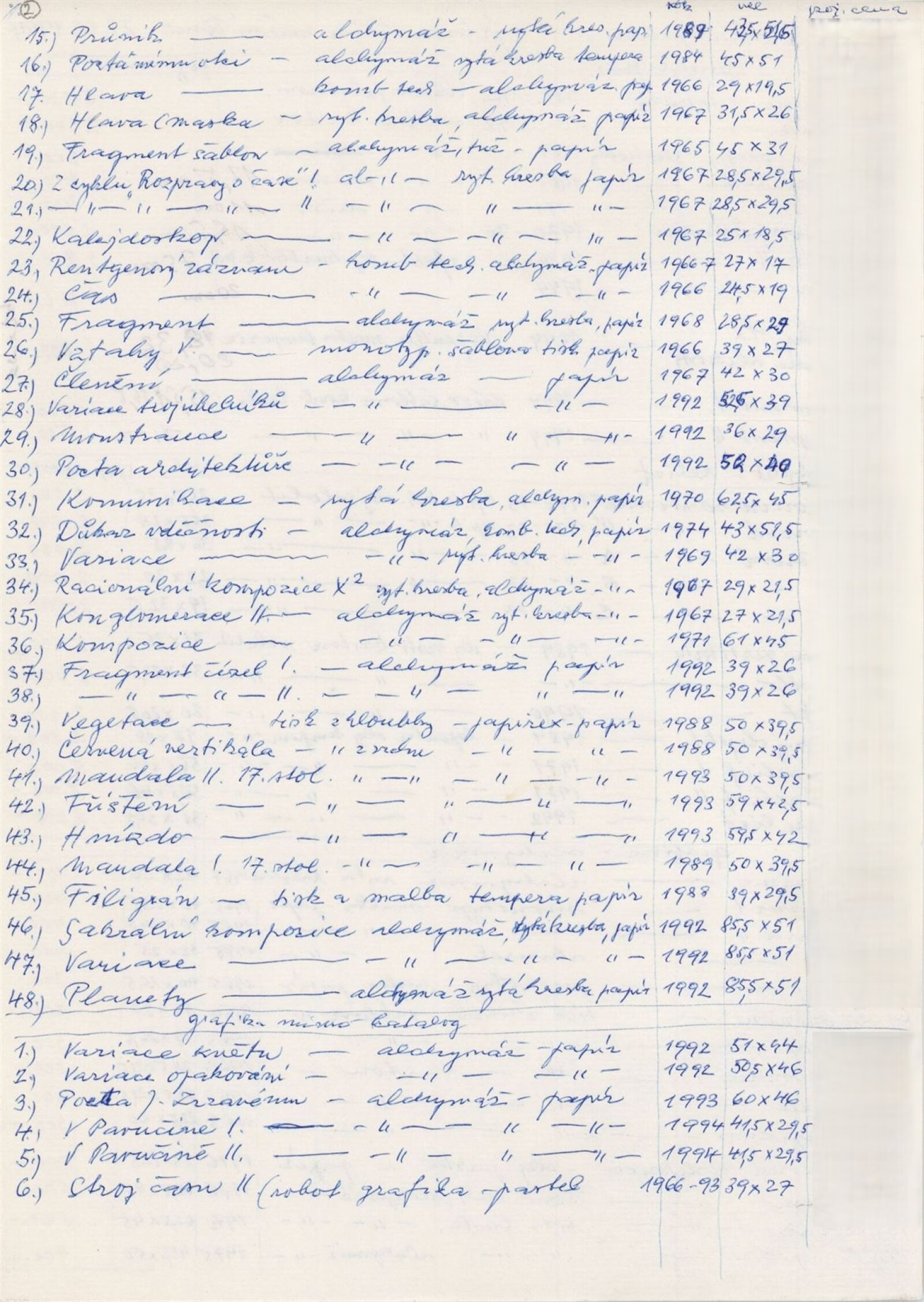 pozvánka, katalog, strojopis pozvánky, fotografie díla, seznam vystavených děl, recenze v tisku