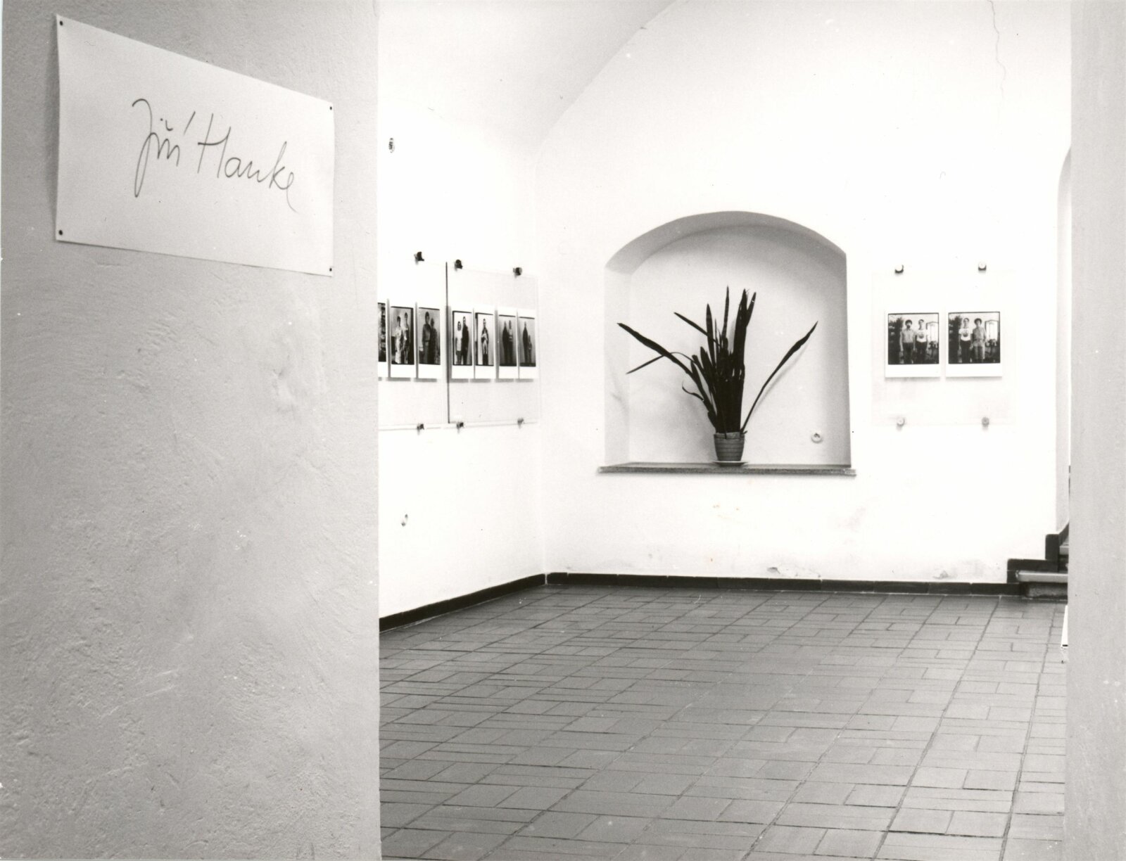 pozvánka, katalog, podklady pro katalog, fotografie výstavy, fotografie vernisáže a fotografie pro katalog, maketa katalogu, provozní korespondence, žádost a potvrzení o konání výstavy, recenze v tisku, pozvánka (Jiří Hanke, Pohledy z okna mého bytu, Výstava v hale spořitelny, 1983), katalogy (J. H., Lidé pod průhonem, Okresní muzeum Kladno-Zámek, 1985; J.H., Pařížské fragmenty, Okresní muzeum Kladno-Zámek, 1982)