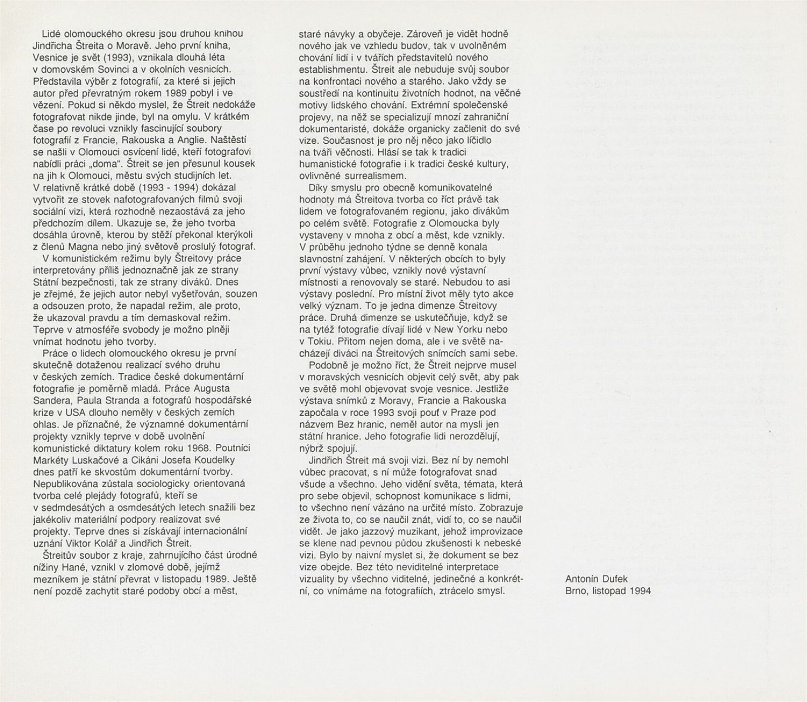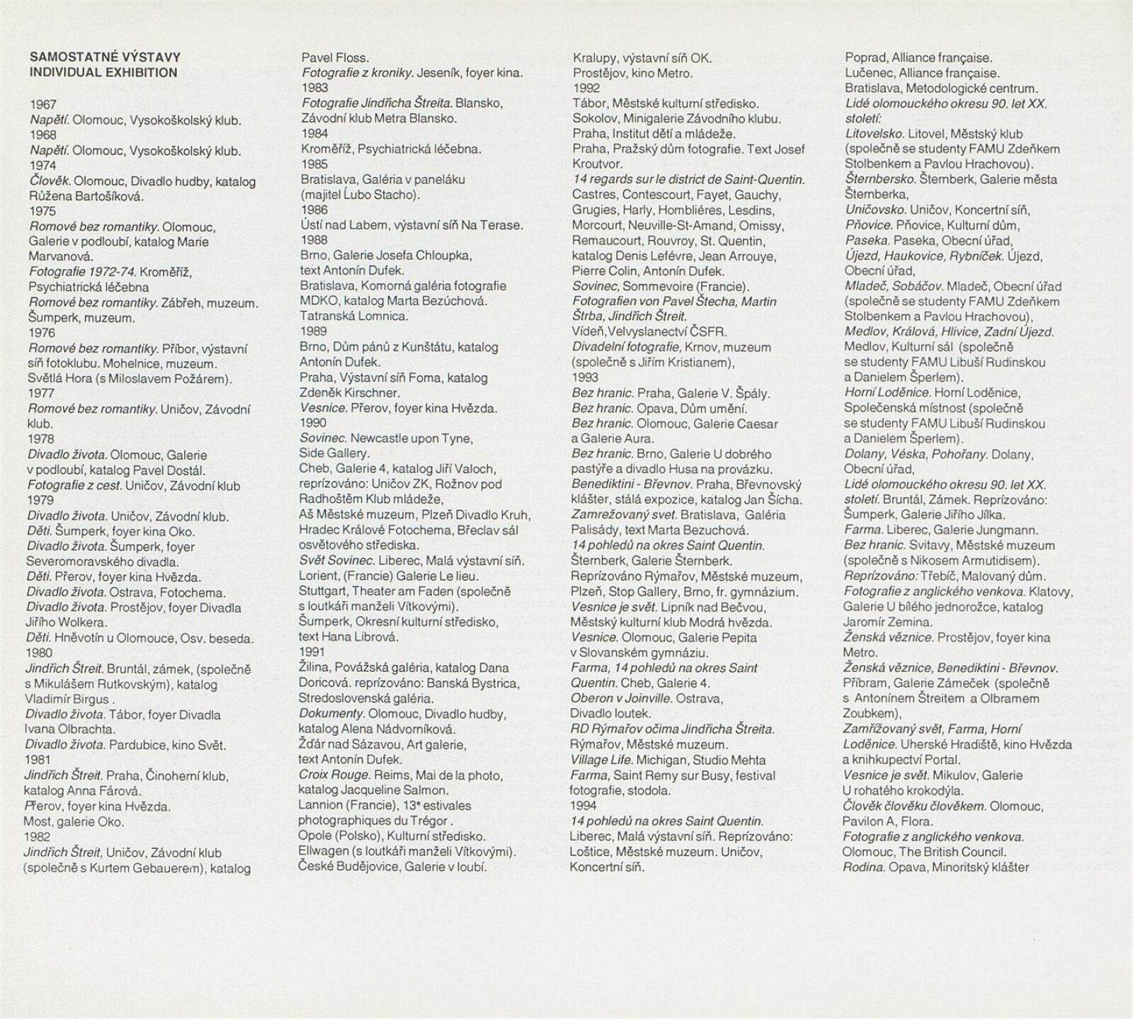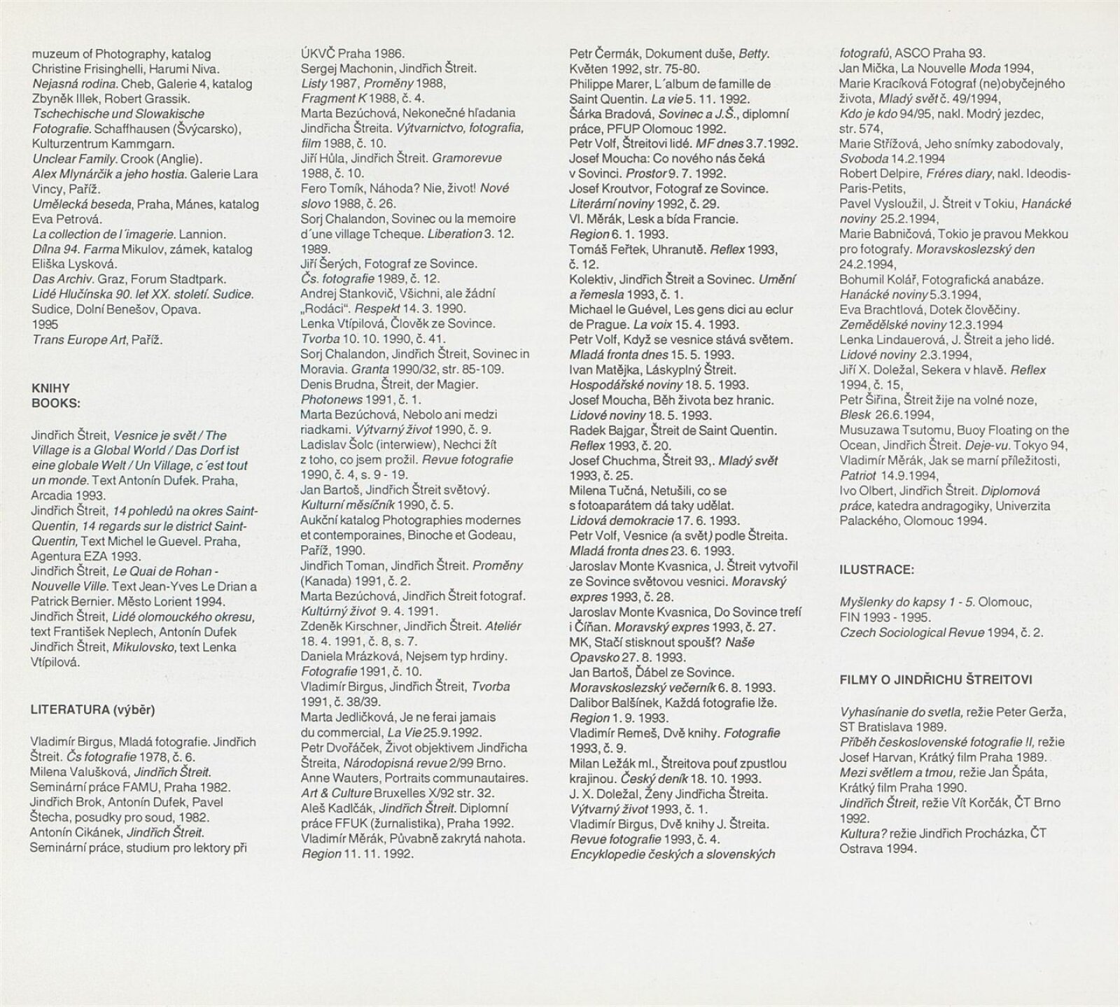 Jindřich Štreit. Lidé olomouckého okresu: ... Brno, Dům umění, Procházkova síň, 23. 5. – 18. 6. 1995 ... / Texty František Neplech, Antonín Dufek. - Olomouc: Okresní úřad, - [216] s., obr. Portrét, životopis, výstavy, realizované projekty, zastoupení ve sbírkách, bibliografie DU 996; MZK