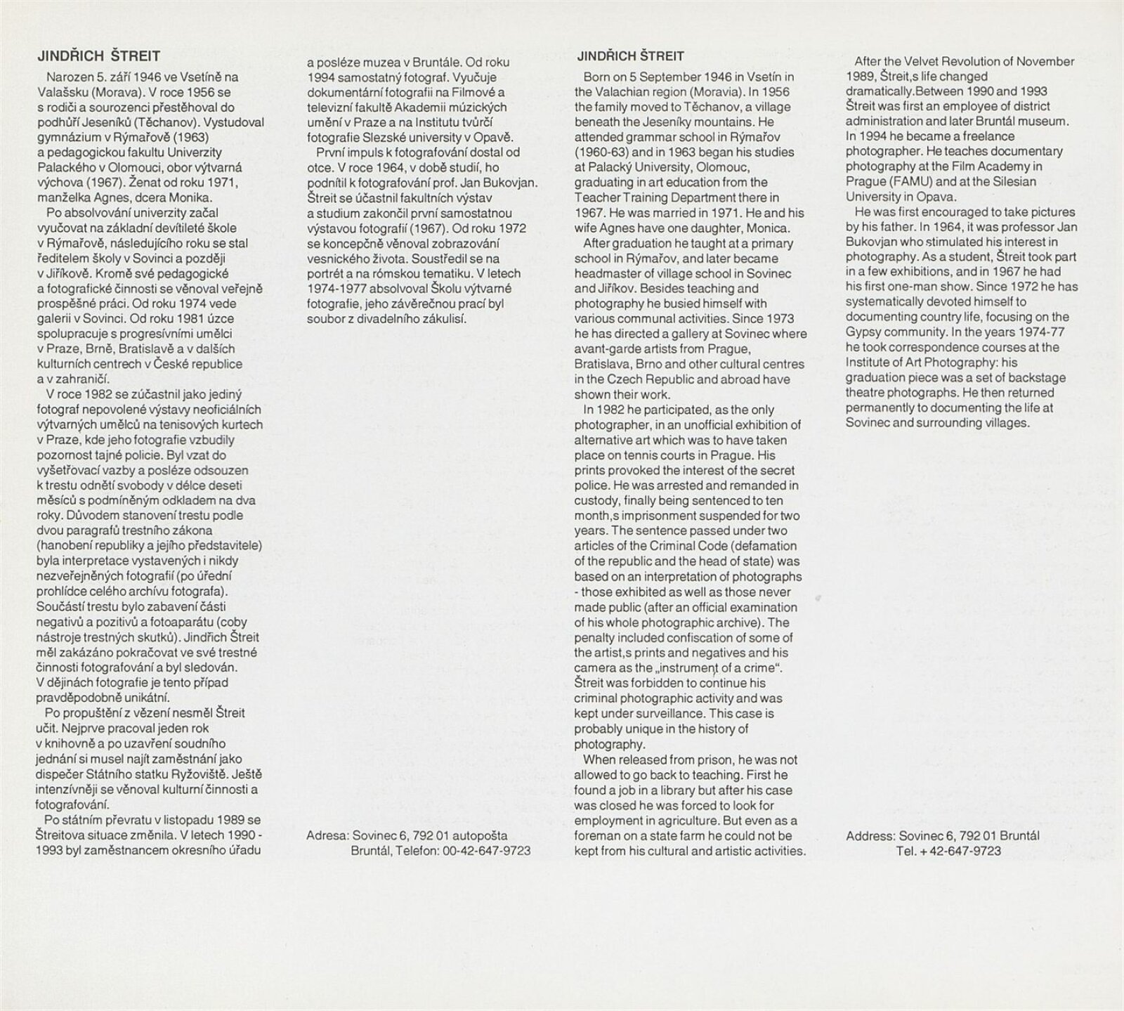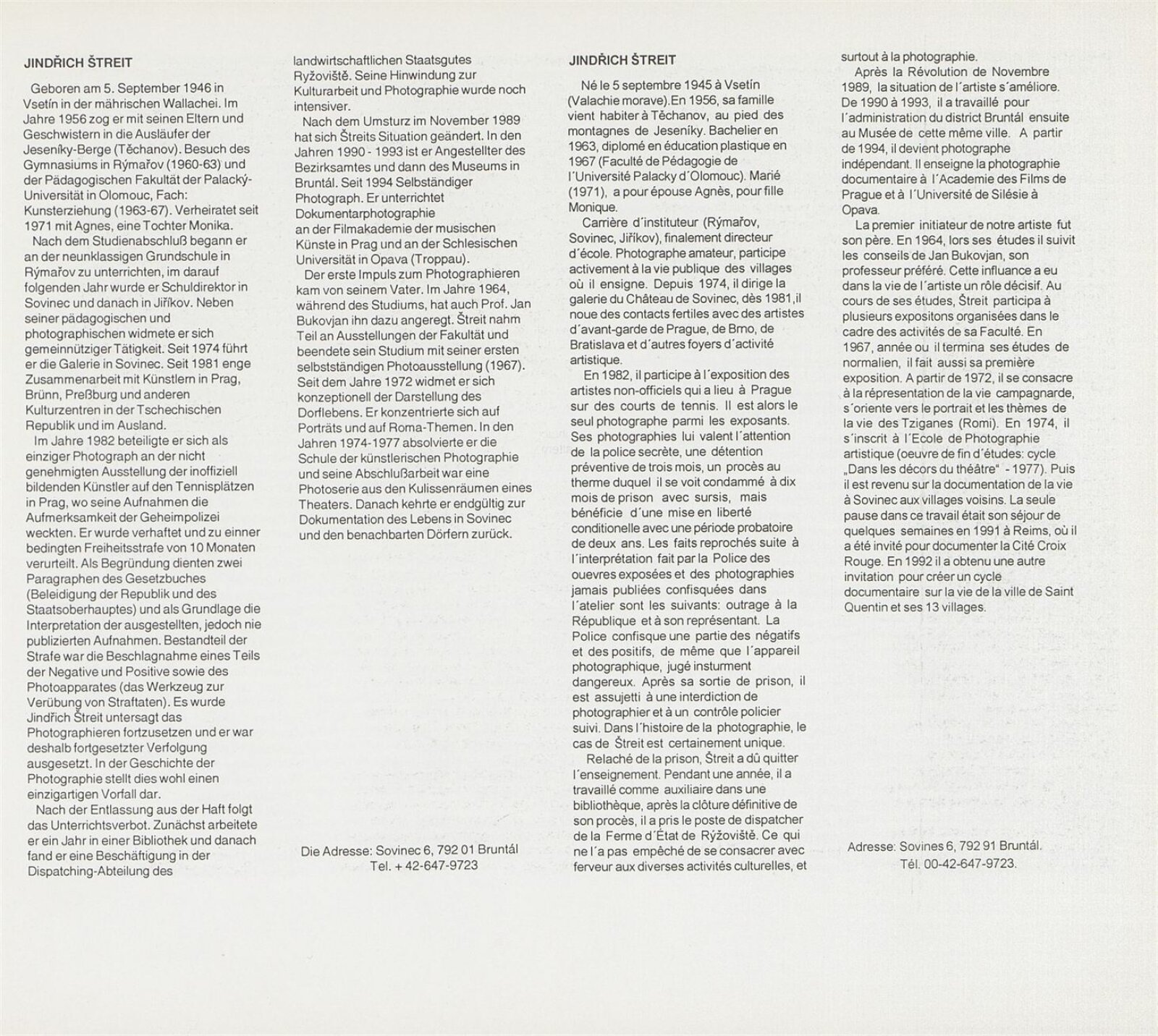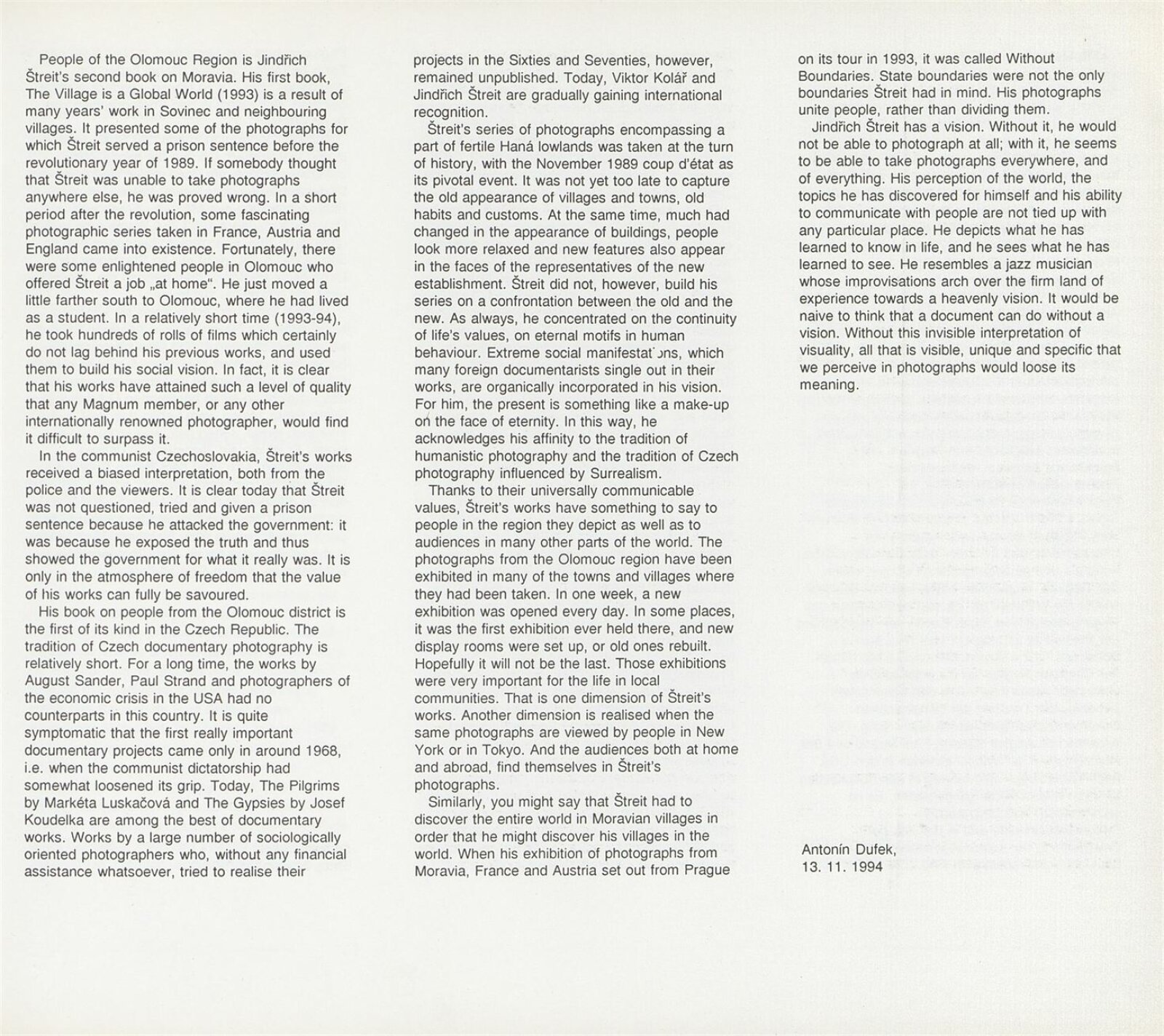 Jindřich Štreit. Lidé olomouckého okresu: ... Brno, Dům umění, Procházkova síň, 23. 5. – 18. 6. 1995 ... / Texty František Neplech, Antonín Dufek. - Olomouc: Okresní úřad, - [216] s., obr. Portrét, životopis, výstavy, realizované projekty, zastoupení ve sbírkách, bibliografie DU 996; MZK
