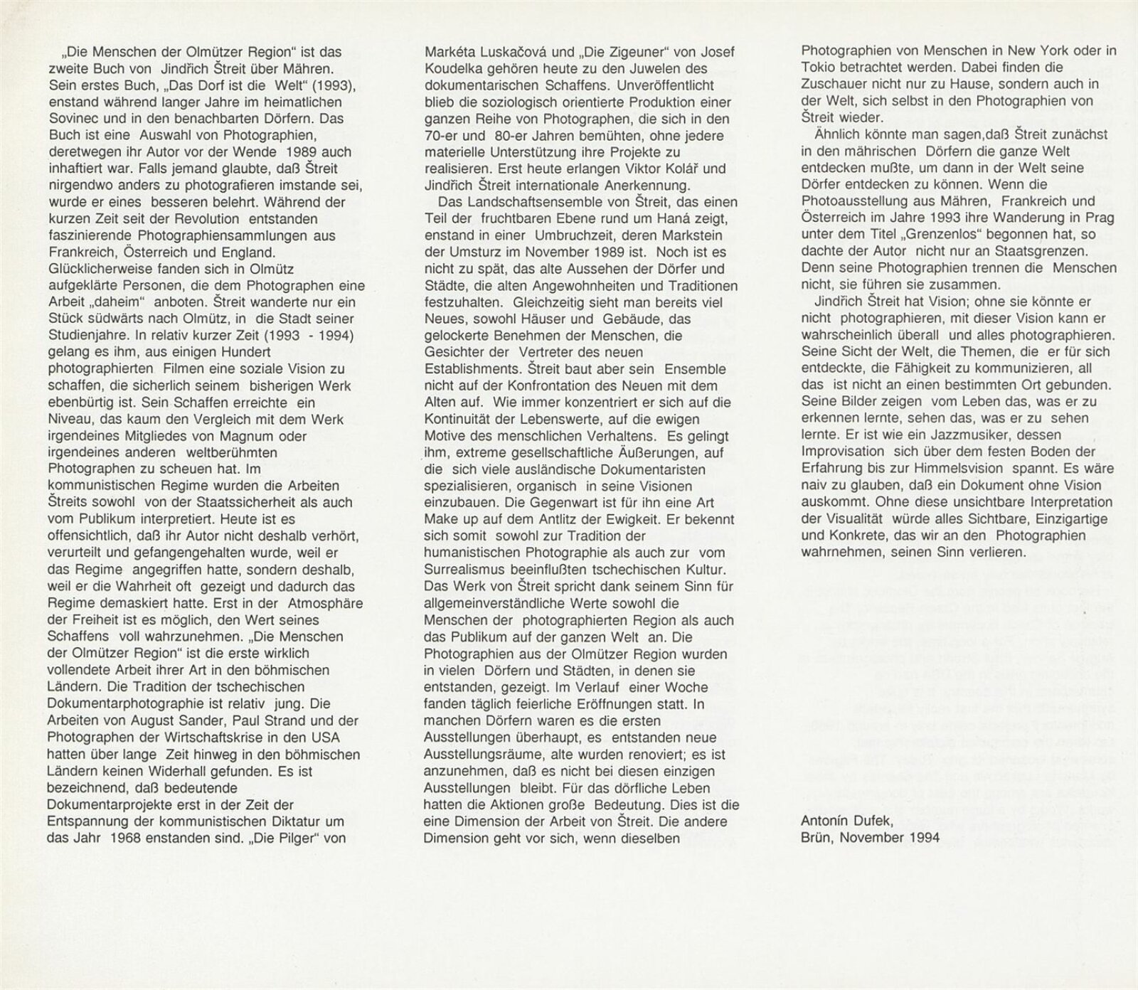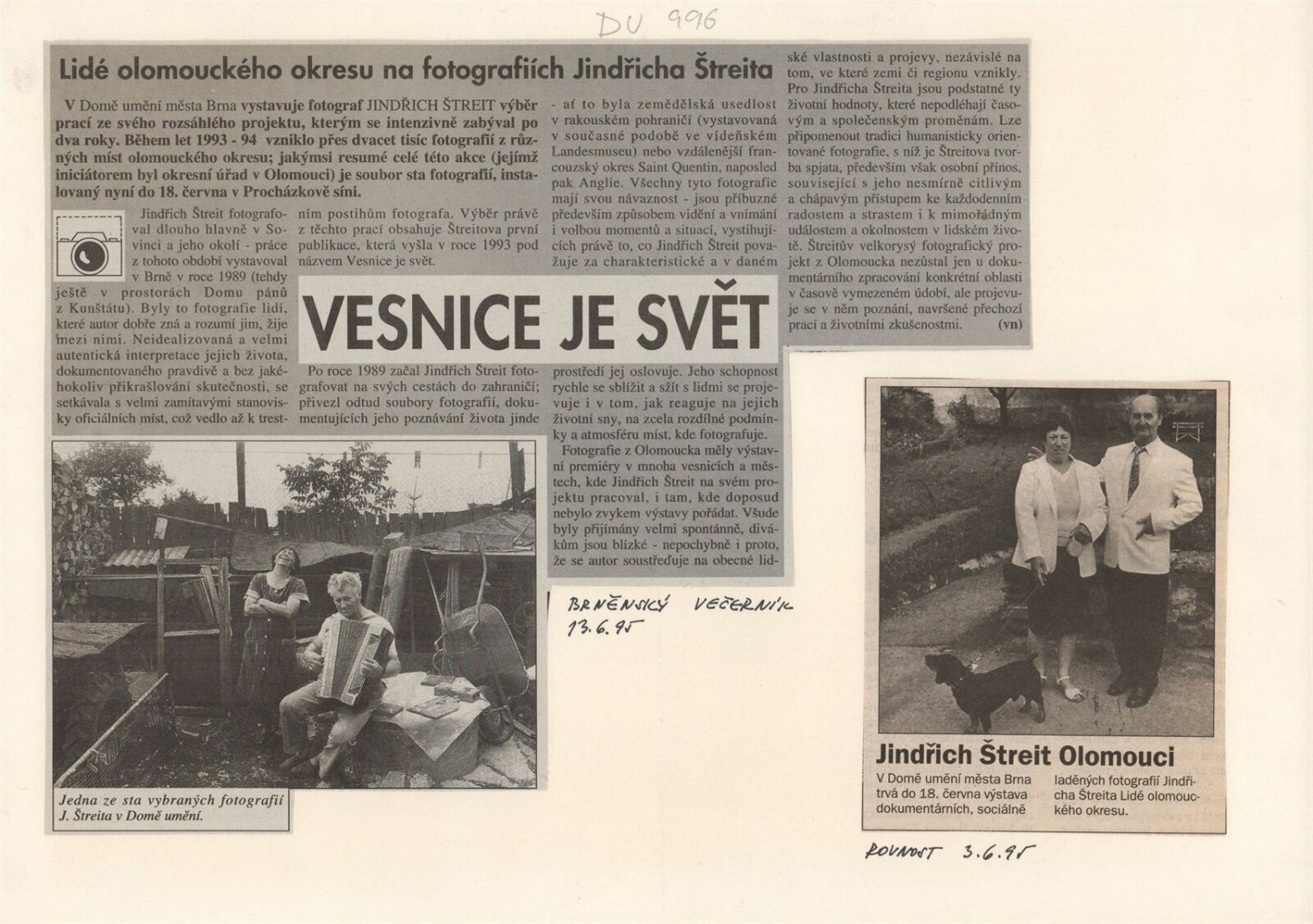 pozvánka (Uherské Hradiště), nátisky fotografií z publikace, korespondence, potvrzení o převzetí, recenze v tisku, leták k výstavě ve Wertingen (1995)