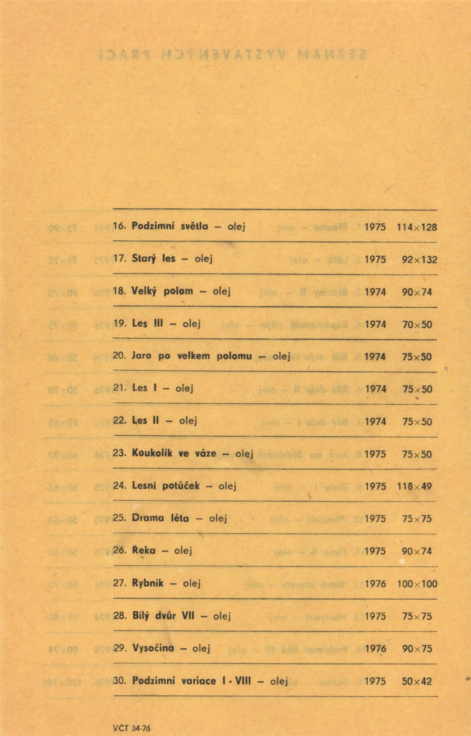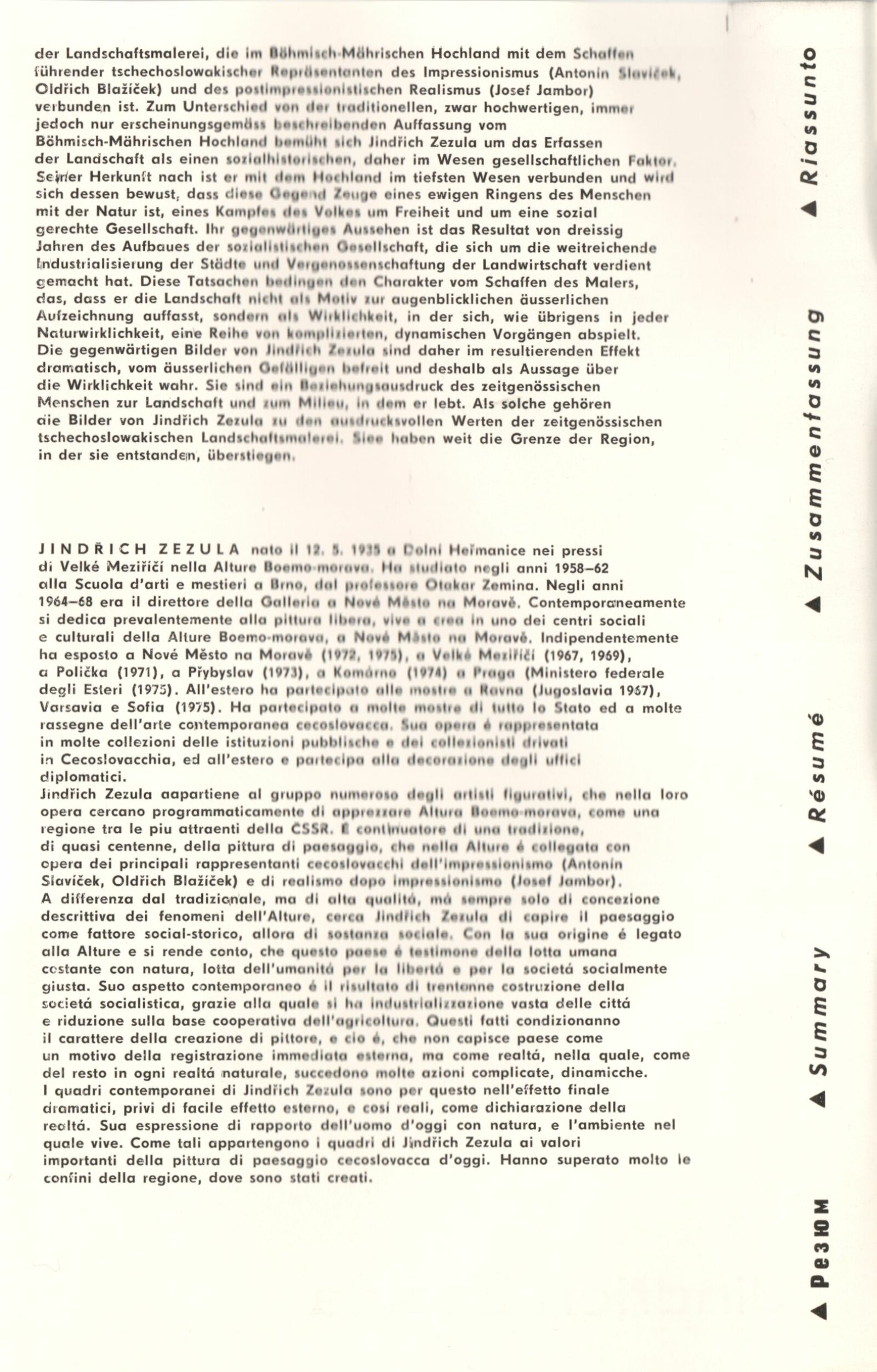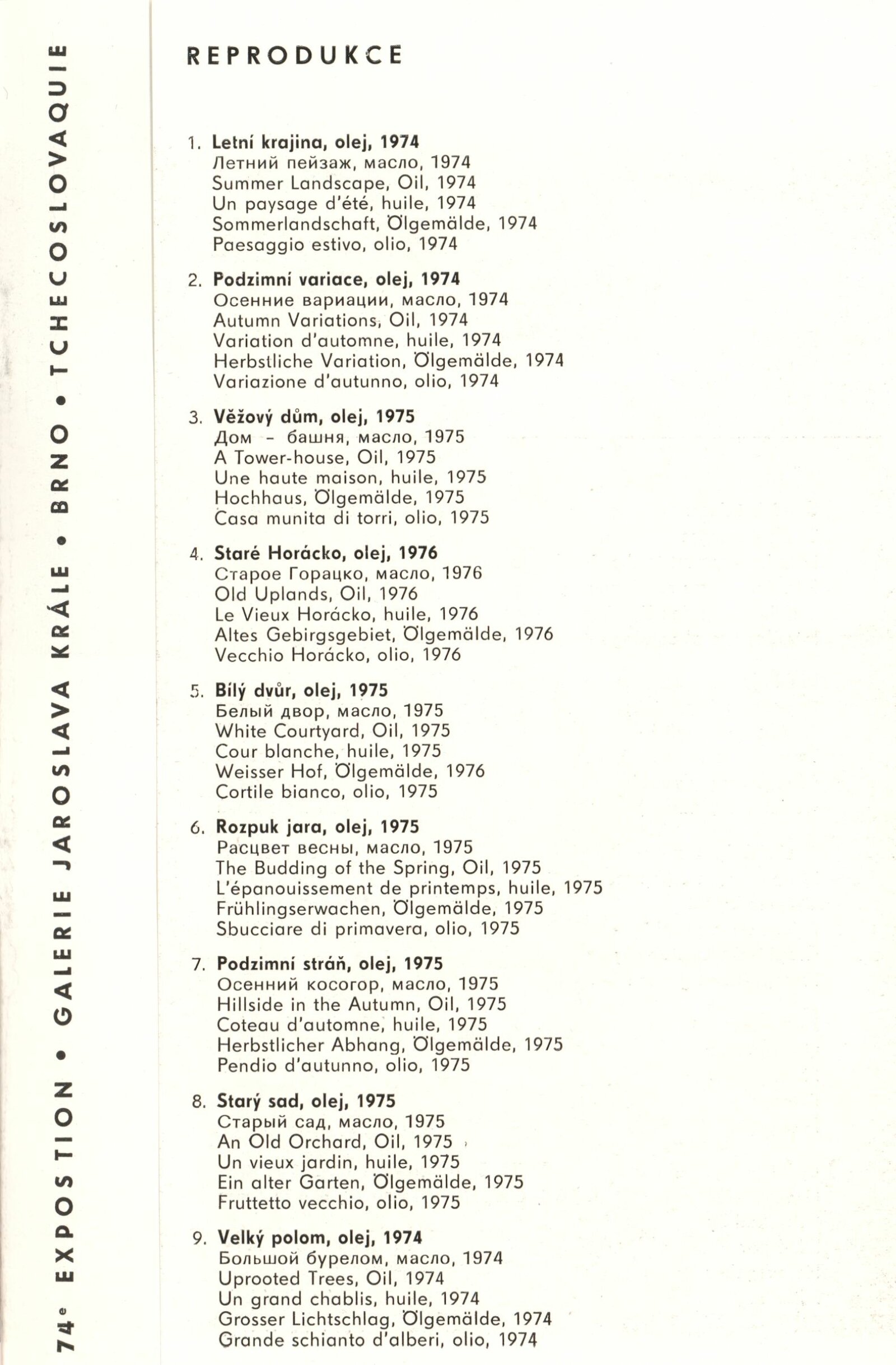 Jindřich Zezula. Obrazy: Dům umění, 74. výstava v Galerii Jaroslava Krále, 31. 8. – 26. 9. 1976 / Text: Zdeněk Čubrda. – Brno: ČFVU, 1976. – 10 s., obr., seznam vystavených prací 2 s., portrét, životopis, výstavy, DU 644. – MZK; MG; MMB