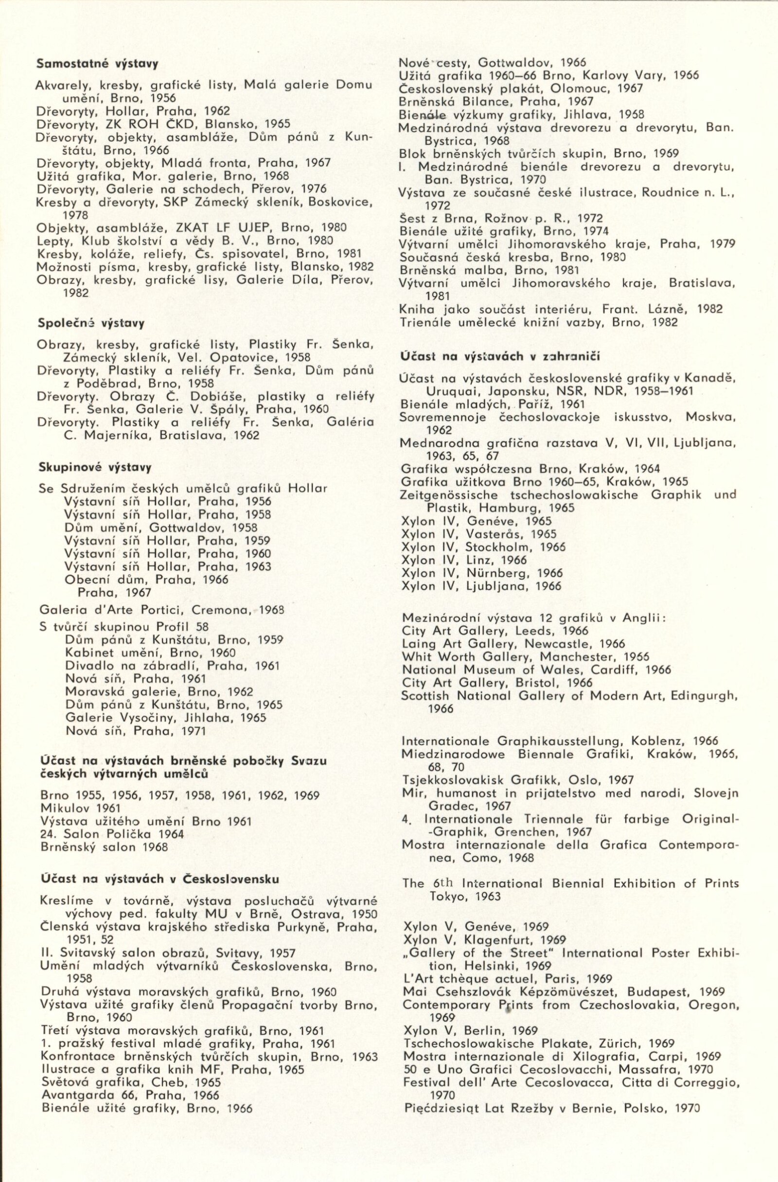 pozvánka, katalog, poznámky, recenze v tisku