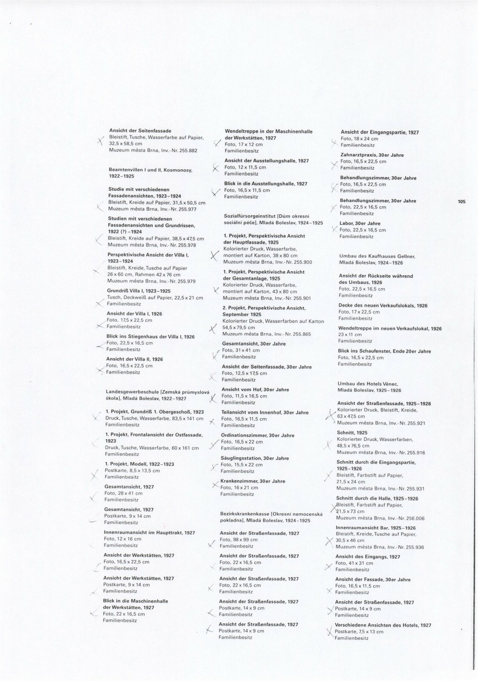 pozvánka, tisková zpráva, texty pro media, úvodní slovo S. Schwarzeneggerové na vernisáži, fotografie vernisáže, diapozitivy děl, texty J. Krohy, text a pozvánka z Architektur Zentrum Wien, seznam zapůjčených exponátů, korespondence o realizaci výstavy (Architektur Zentrum Wien, Dům umění Brno, Muzeum města Brna, České muzeum výtvarných umění, České centrum Vídeň a další instituce), smlouva o výpůjčce, kalkulace výstavy, recenze v tisku, poznámky