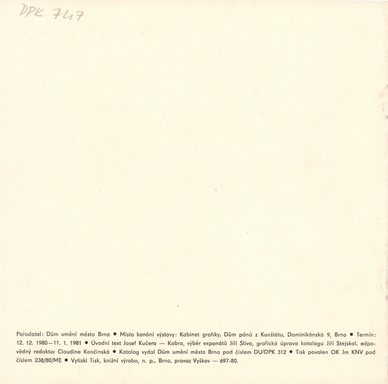 pozvánka společná pro DPK 747 a 748, katalog, strojopis, provozní korespondence, žádost o povolení výstavy, pojistný seznam, potvrzení o převzetí