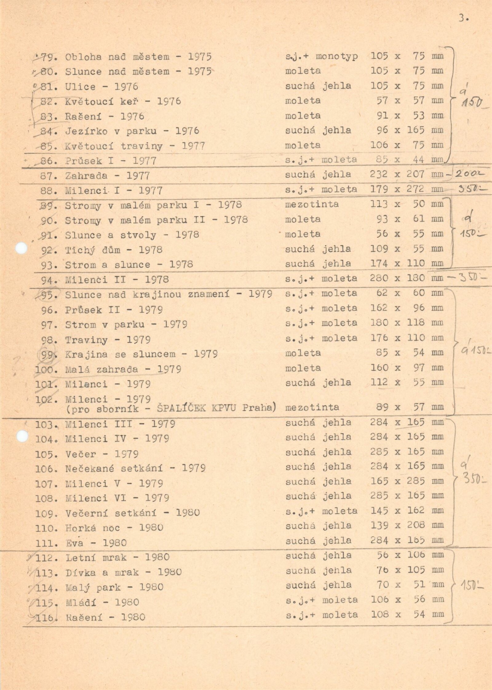 pozvánka, katalog, strojopis katalogu a pozvánky, seznam děl, provozní korespondence s Jiřím Vláčilem, žádost o povolení výstavy, recenze v tisku, katalog z výstavy v Adamově