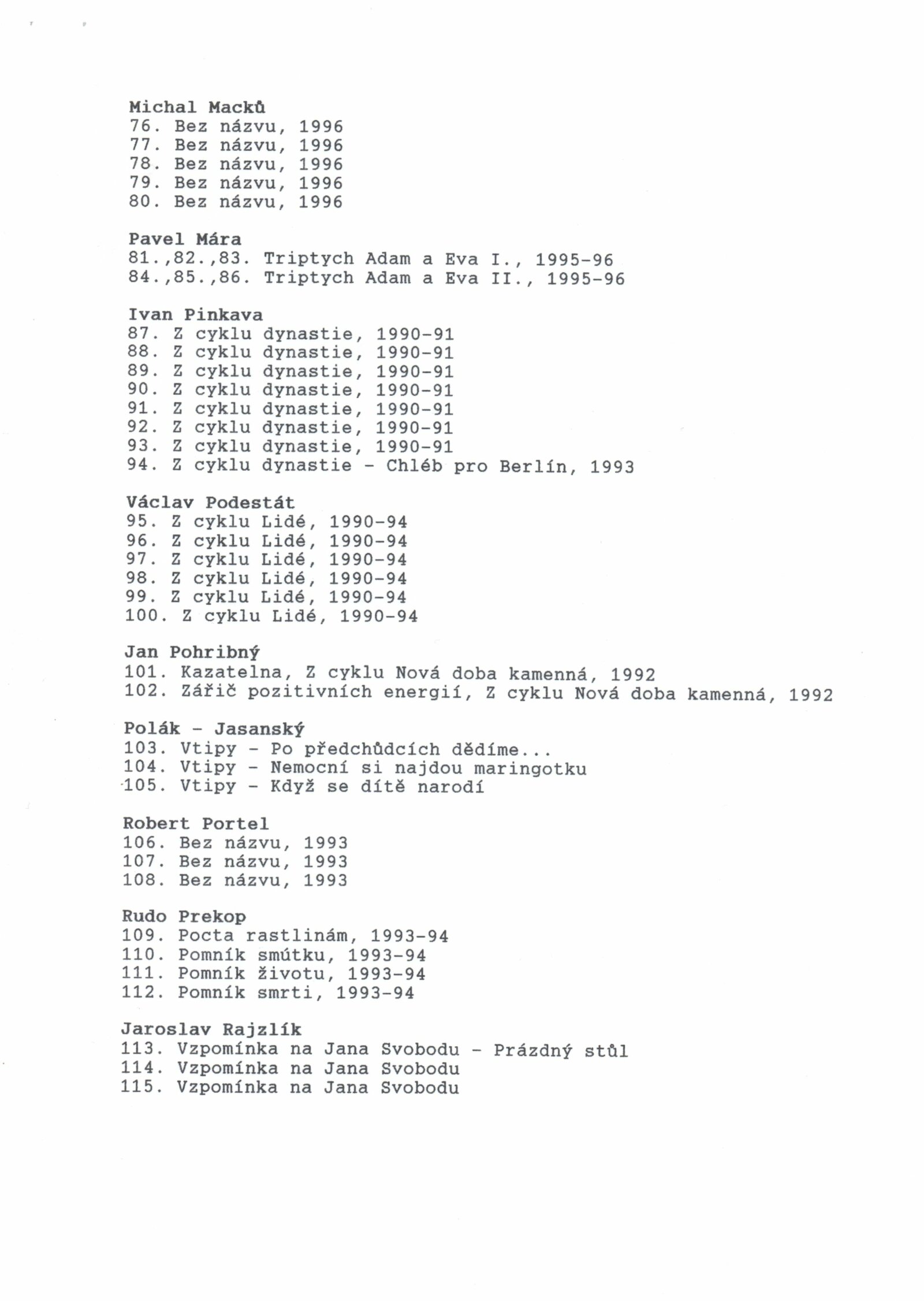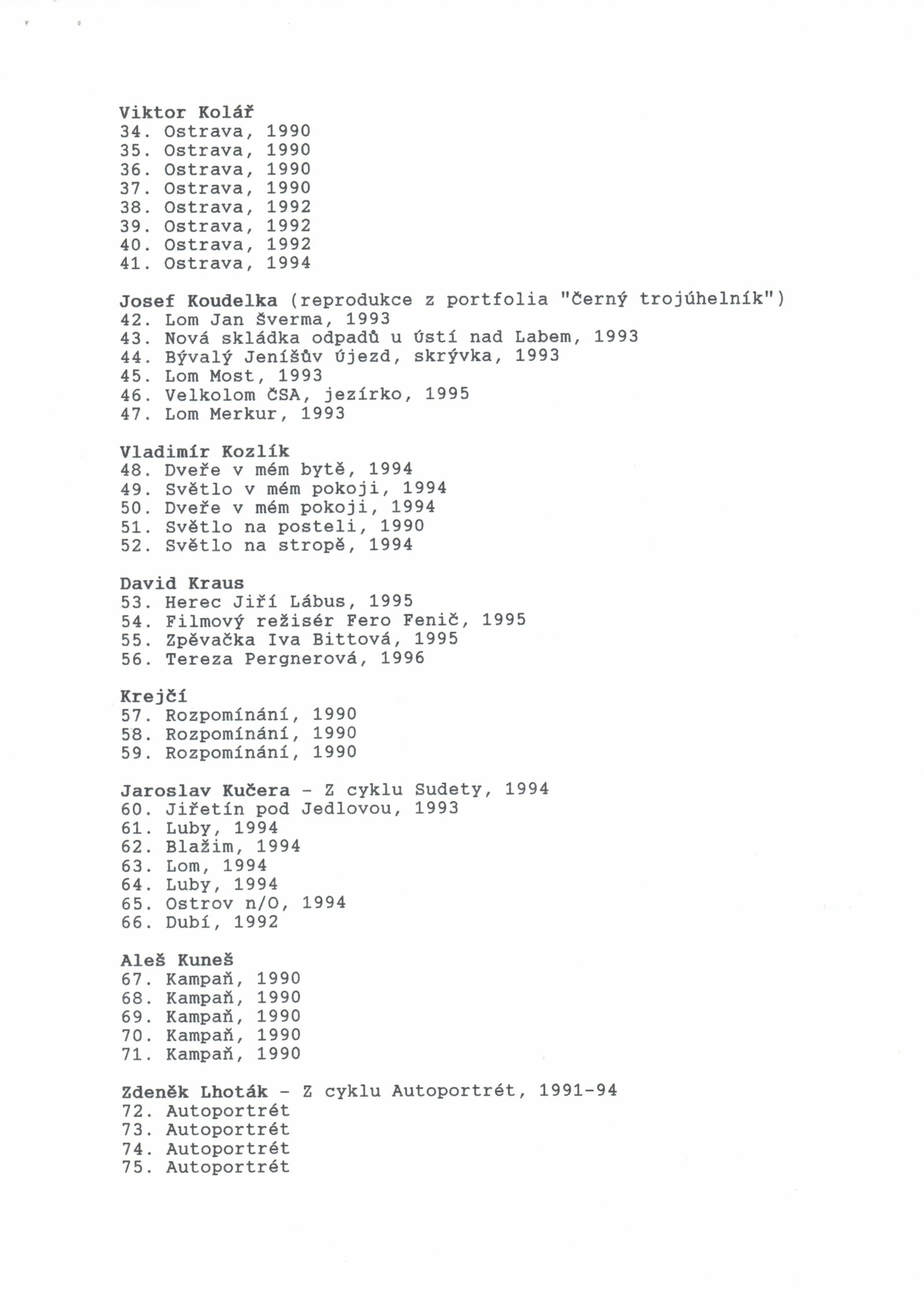 Pavel Baňka, Michaela Brachtlová, Veronika Bromová, Jiří David, Pavel Hečko, Bohdan Holomíček, Lukáš Jasanský, Václav Jirásek, Viktor Kolář, Josef Koudelka, Vladimír Kozlík, David Kraus, Petr Krejčí, Jaroslav Kučera, Aleš Kuneš, Zdeněk Lhoták, Michal Macků, Ivan Pinkava, Václav Podestát, Jan Pohribný, Martin Polák, Robert Portel, Rudo Prekop, Jaroslav Rajzík, Jan Saudek, Tono Stano, Zdeněk Stolbenko, Igor Šefr, Jindřich Štreit, Miro Švolík