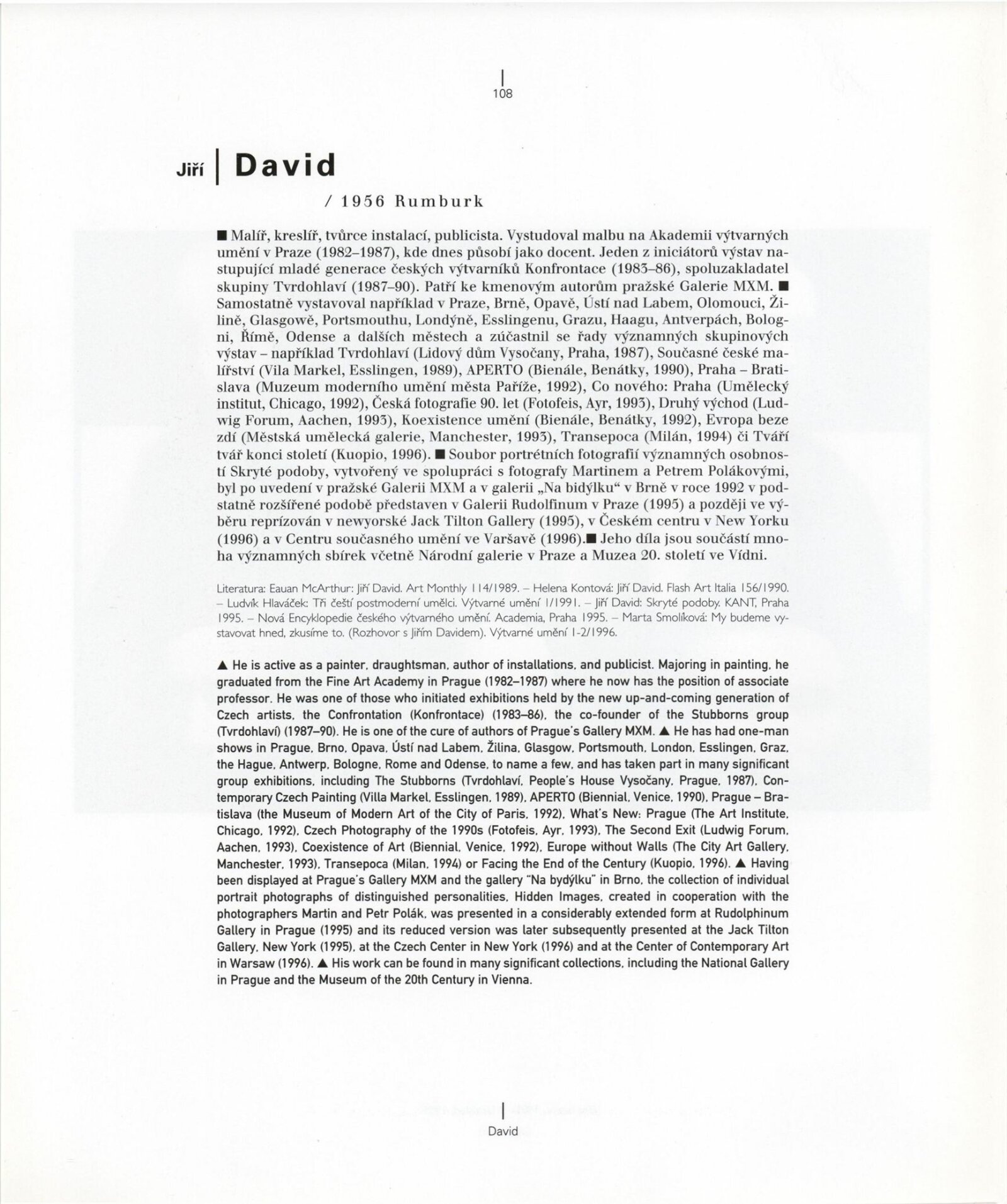 pozvánka, podklady pro pozvánku a katalog, fotografie instalace výstavy, předávací protokol - seznam děl, korespondence o realizaci výstavy, provozní korespondence, recenze v tisku, katalog (části)