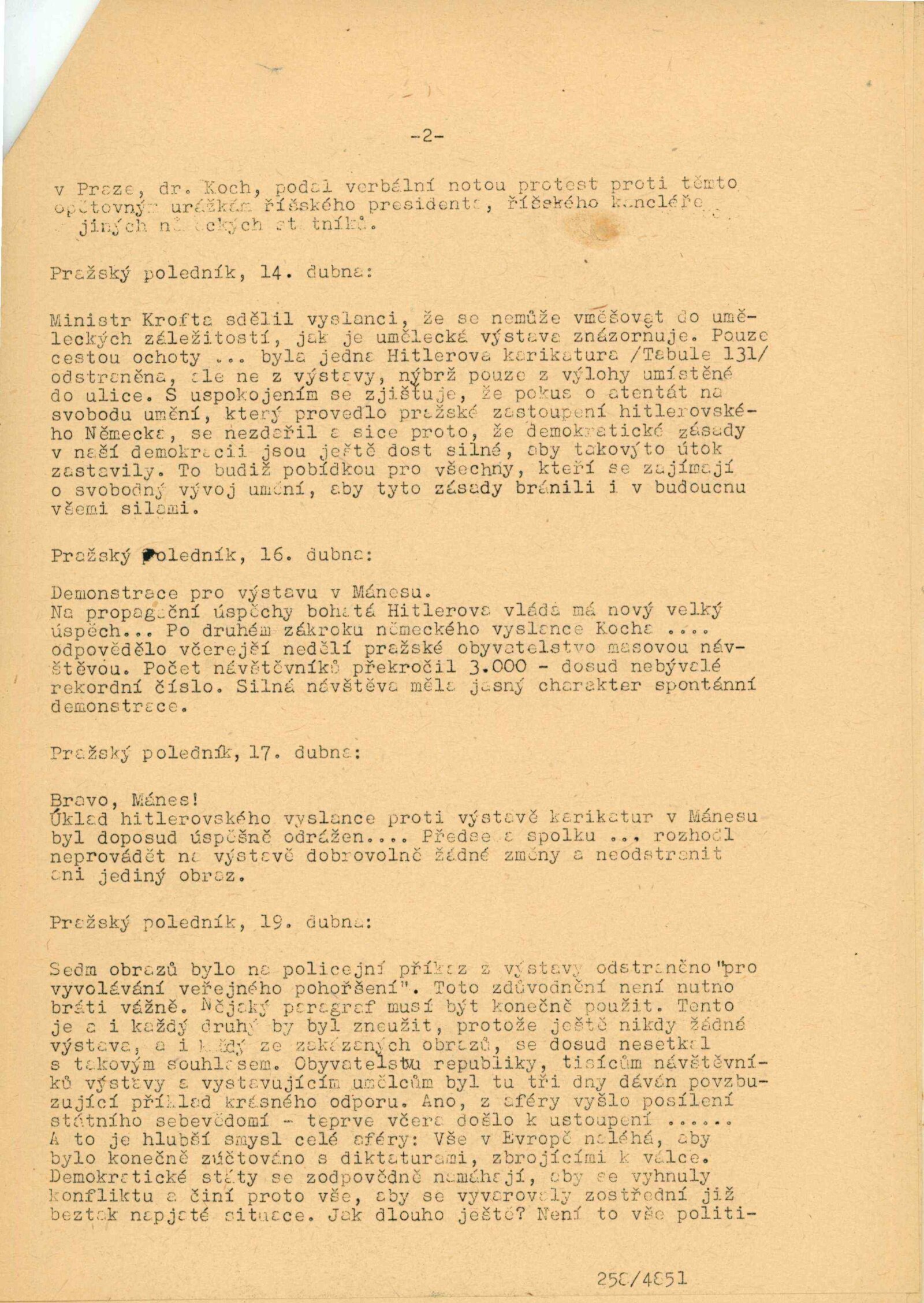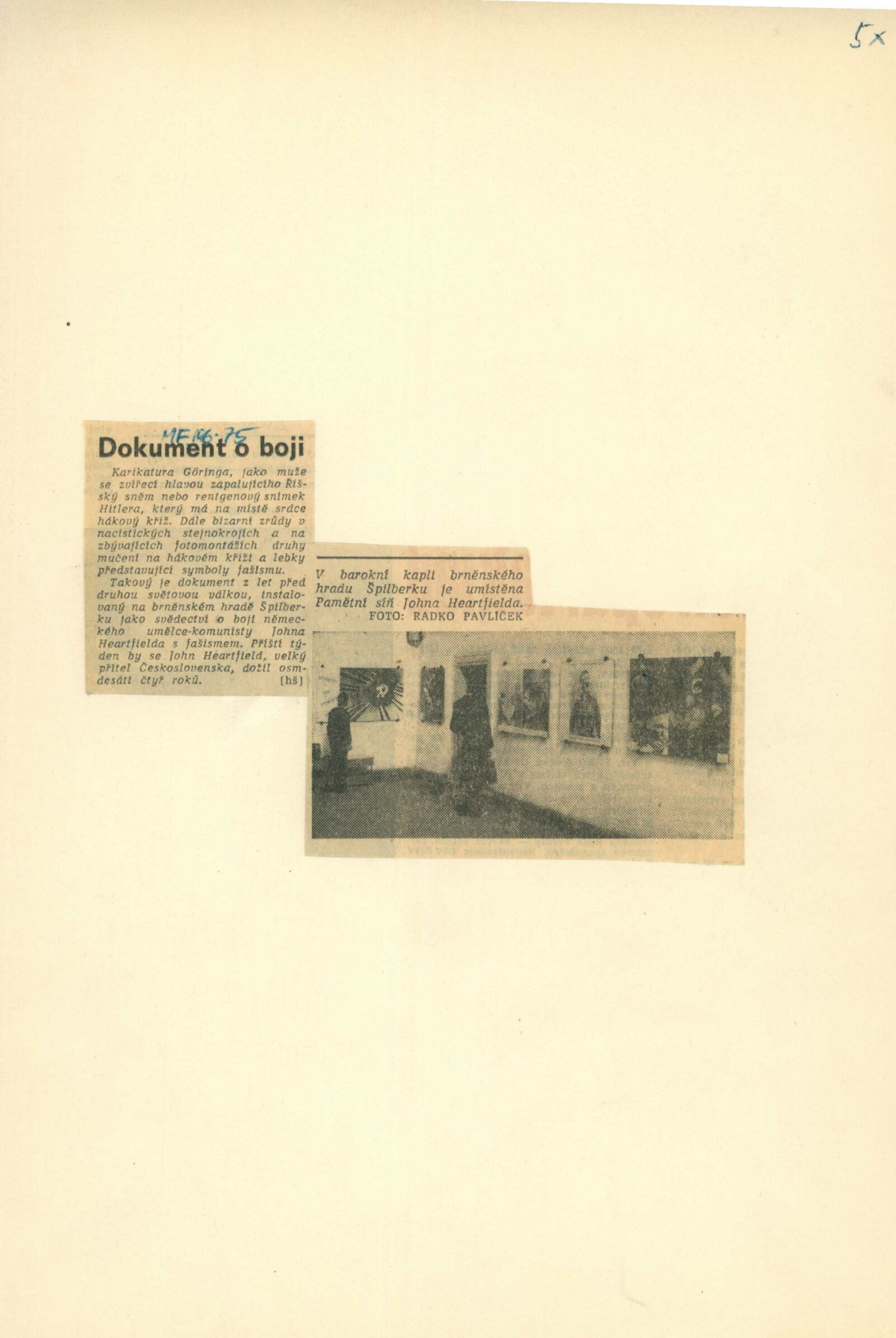 pozvánka, katalog, texty k výstavě, fotografie z vernisáže, korespondence (instituce, dopisy Antonín Pelc + Adolf Kroupa, John Heartfield, Adolf Hoffmeister, korespondence o likvidaci výstavy), recenze v tisku, pozvánka na výstavu v Košicích