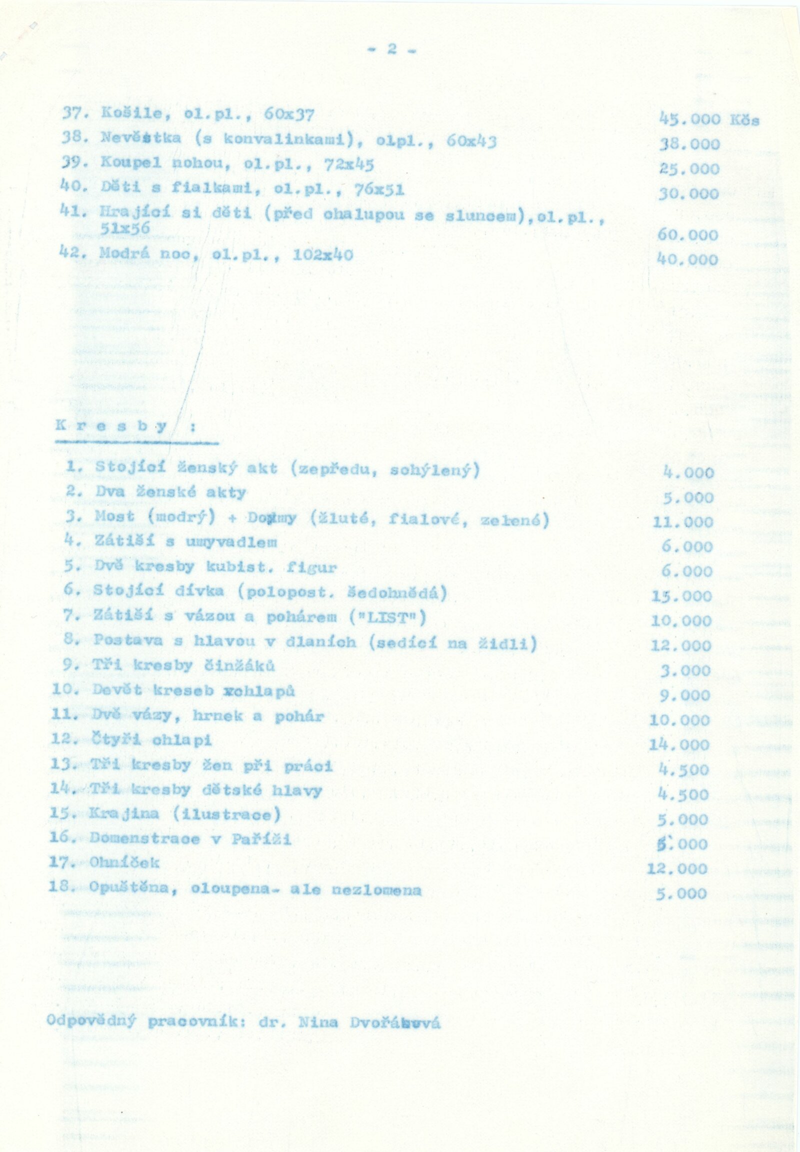 pozvánka, úvodní slovo Jaroslava Slavíka, seznamy vystavených děl, protokol o předání výstavy, adresy, provozní korespondence (Jaroslav Slavík, instituce, žádosti o výpůjčky), dohoda o uspořádání výstavy mezi DU a NG, smlouvy o výpůjčce a bezplatném užívání (instituce), reversy a souhlasy soukromých majitelů, recenze v tisku