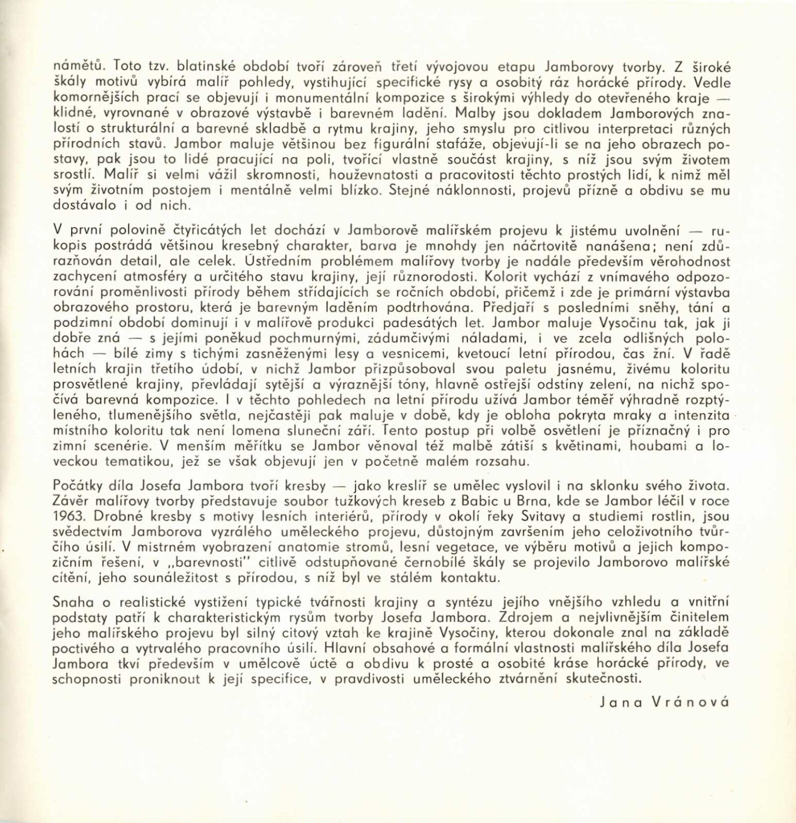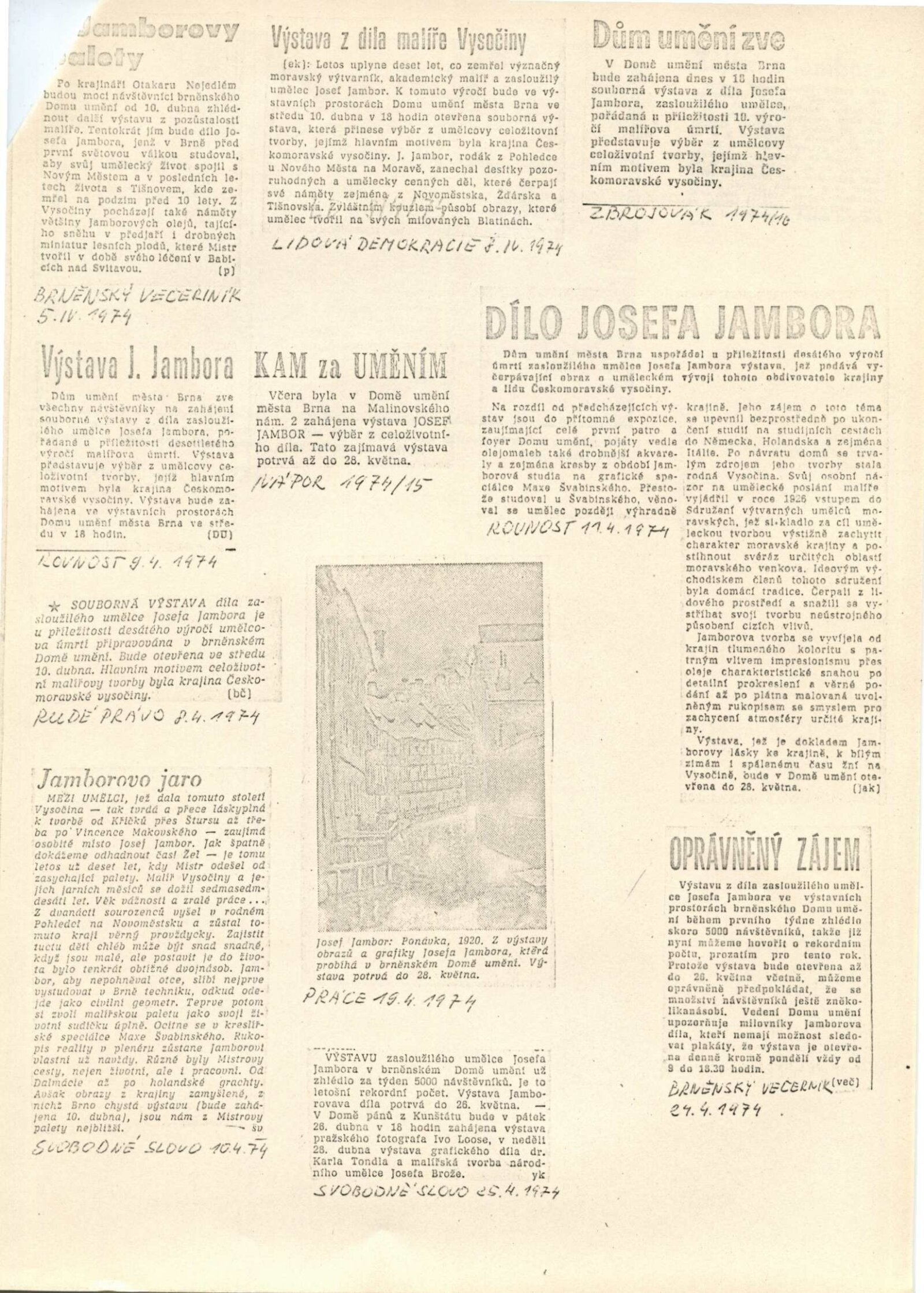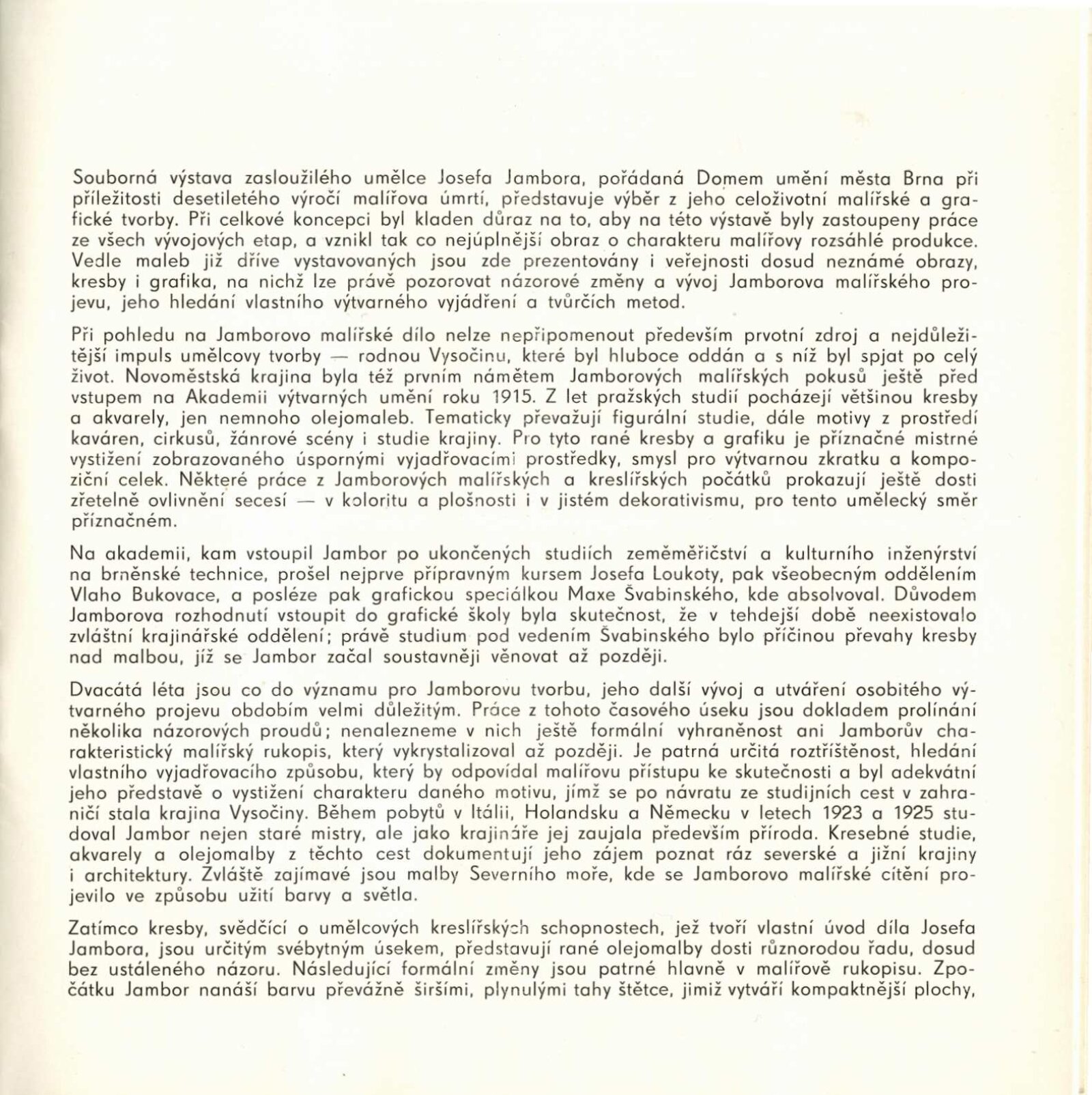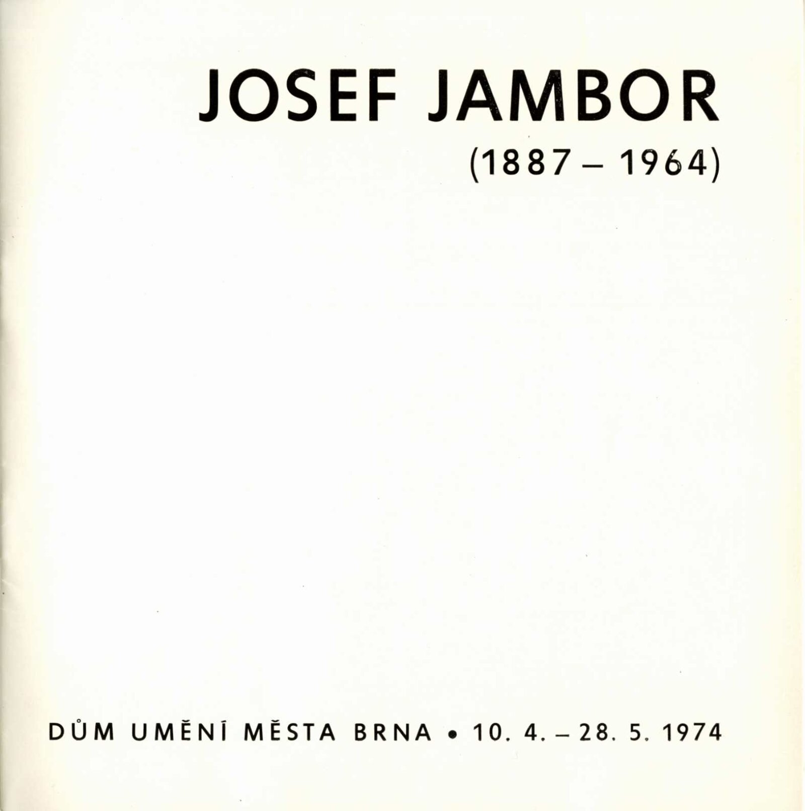 Josef Jambor (1887–1964): Dům umění města Brna, 10. 4. – 28. 5. 1974 / Texty: Jana Vránová, Mirko Rosenbaum. – Brno: DUmB, 1974. – 28 s., obr., seznam vystavených prací 8 s., životní data, výstavy, DU 607. – MZK; MG; MMB