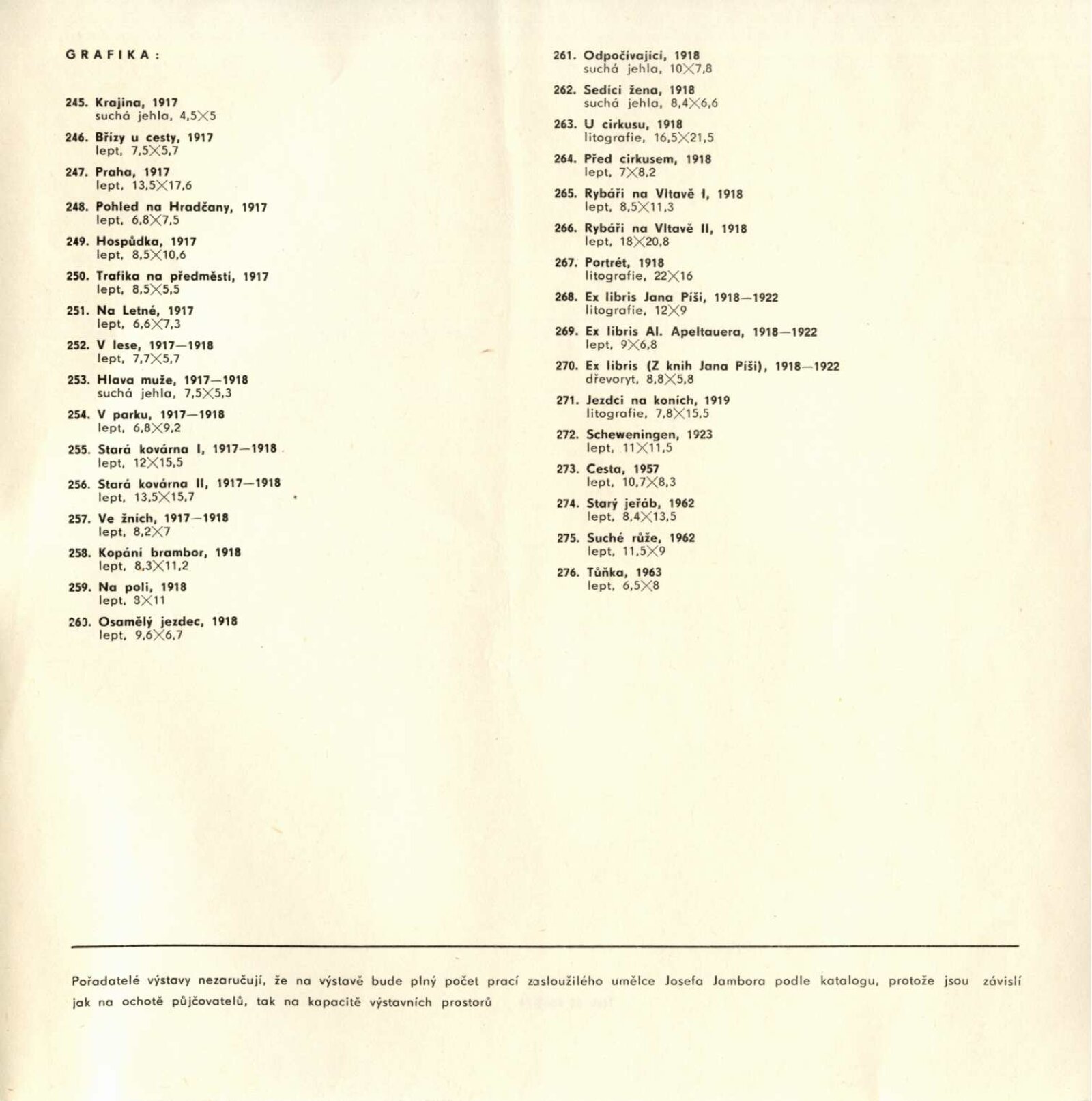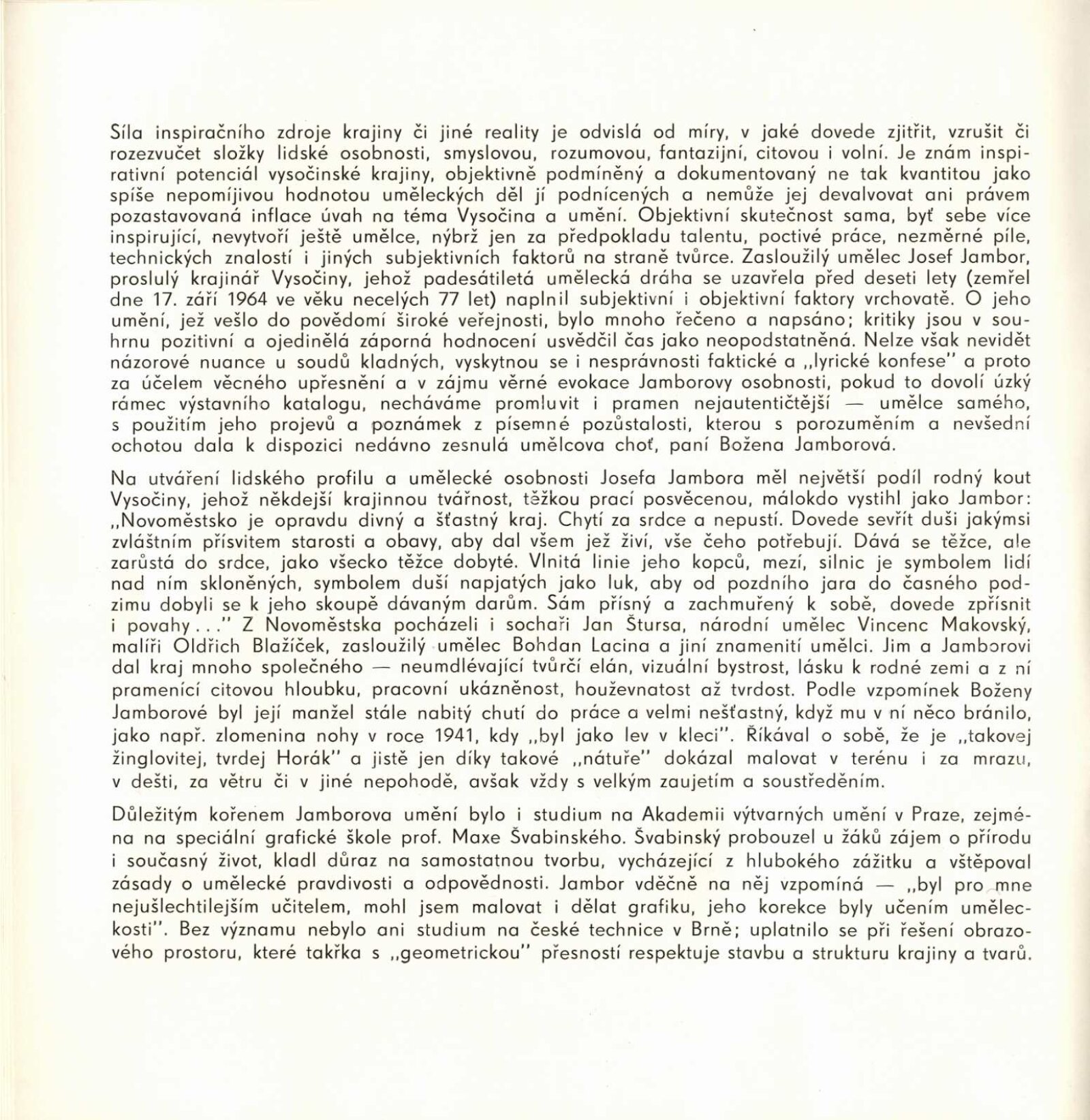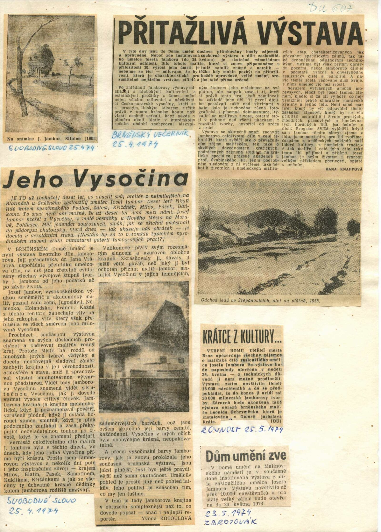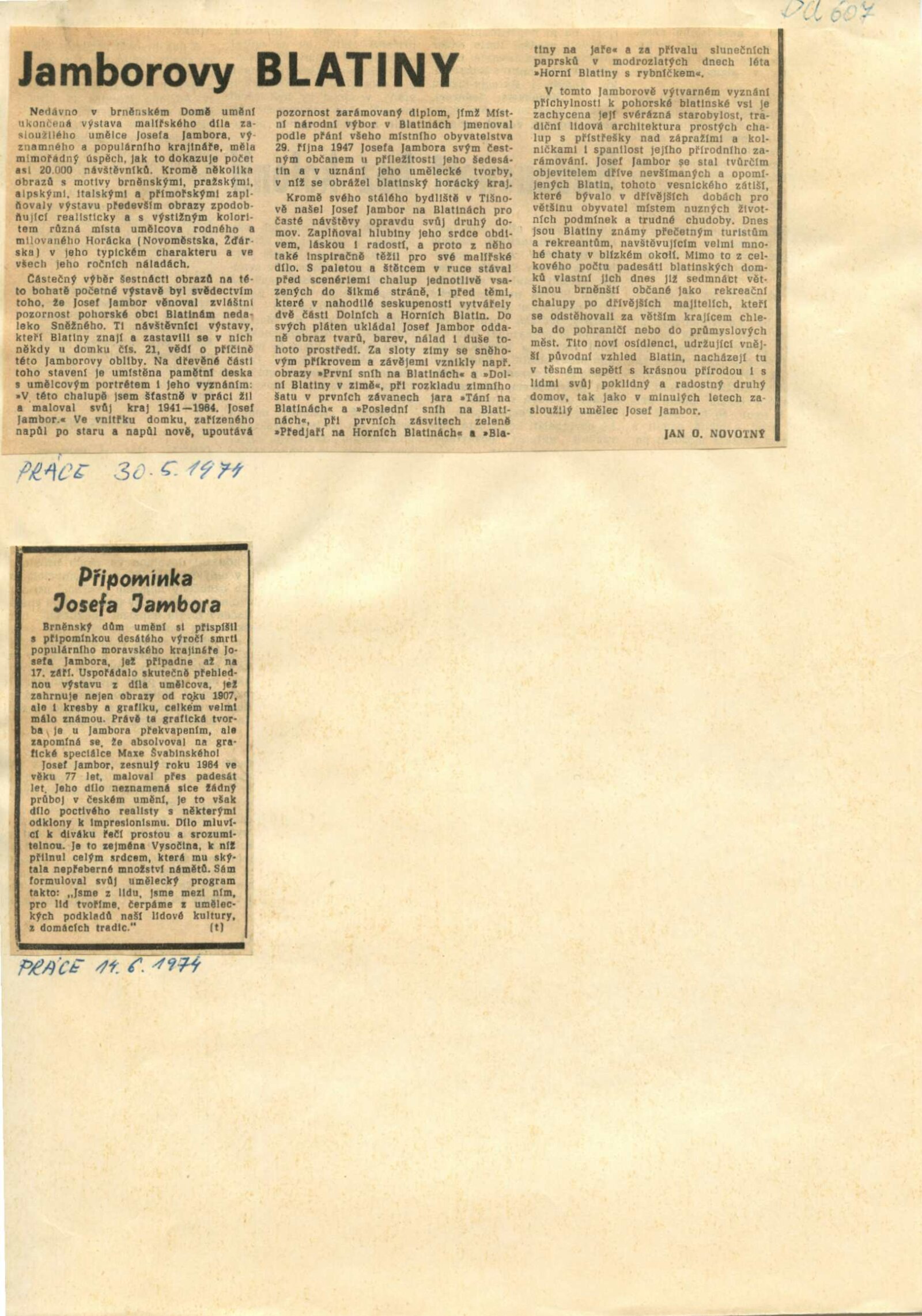 Josef Jambor (1887–1964): Dům umění města Brna, 10. 4. – 28. 5. 1974 / Texty: Jana Vránová, Mirko Rosenbaum. – Brno: DUmB, 1974. – 28 s., obr., seznam vystavených prací 8 s., životní data, výstavy, DU 607. – MZK; MG; MMB