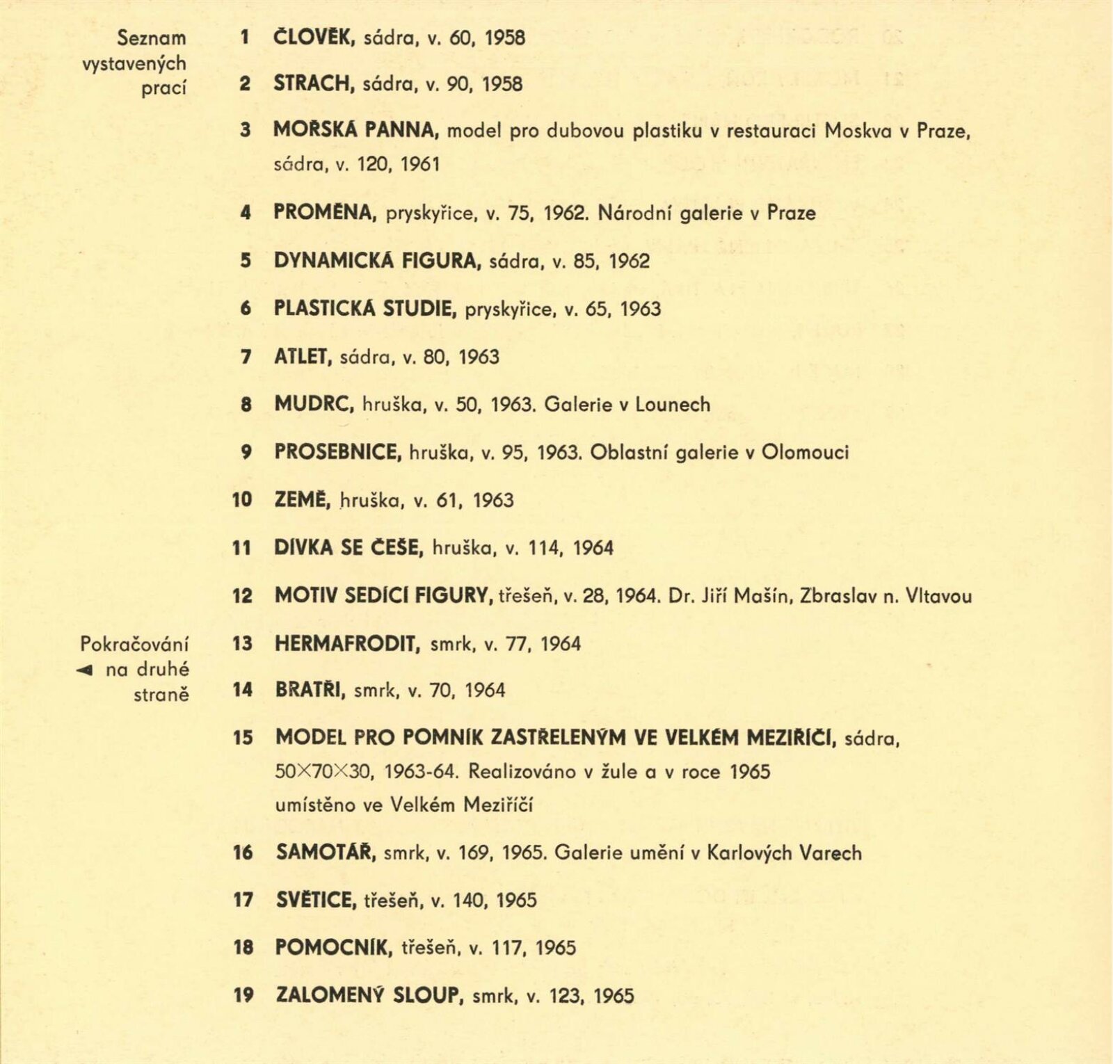 pozvánka, katalog (spol. s OGV Jihlava), seznam vystavených děl, korespondence (provozní korespondence), smlouva, recenze v tisku