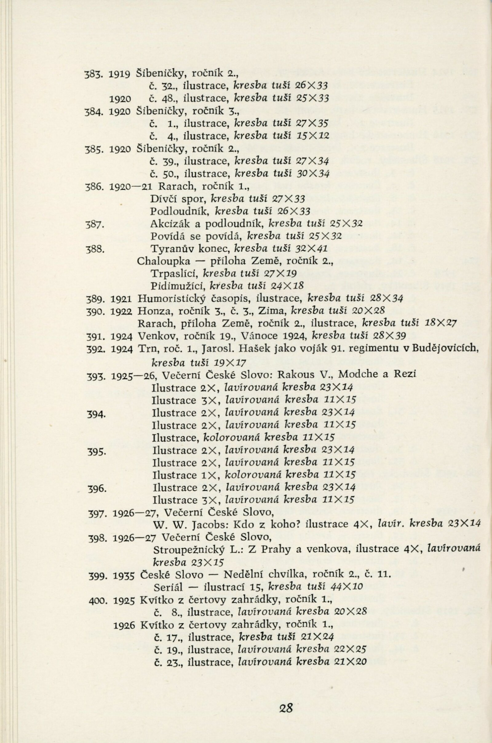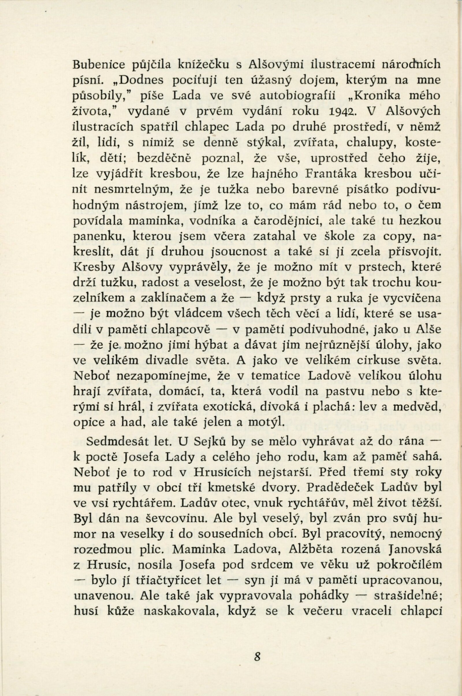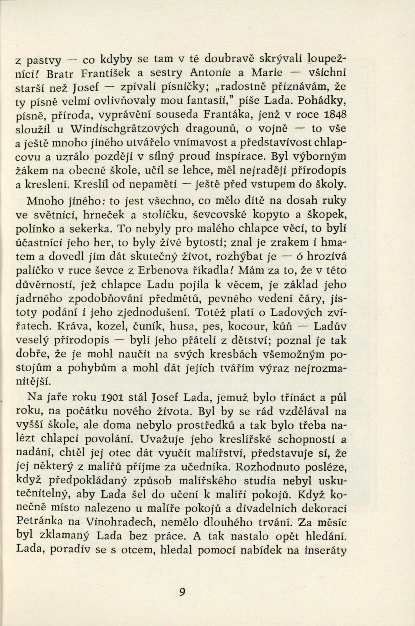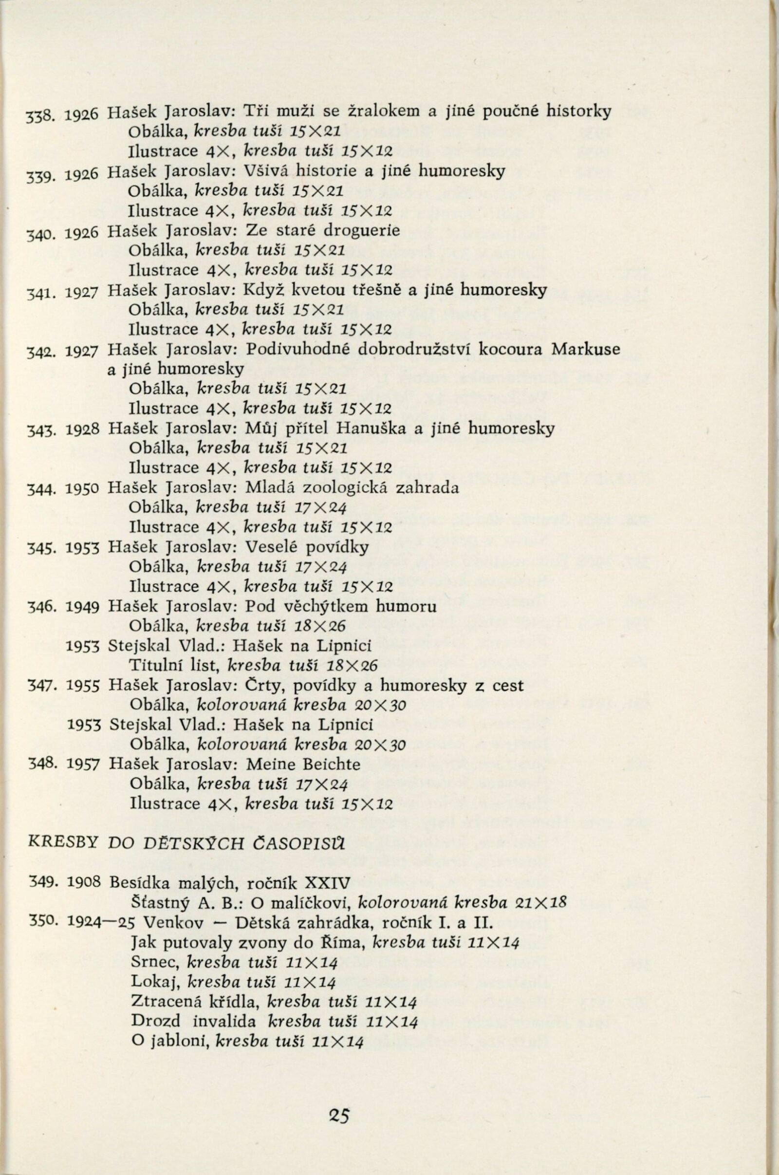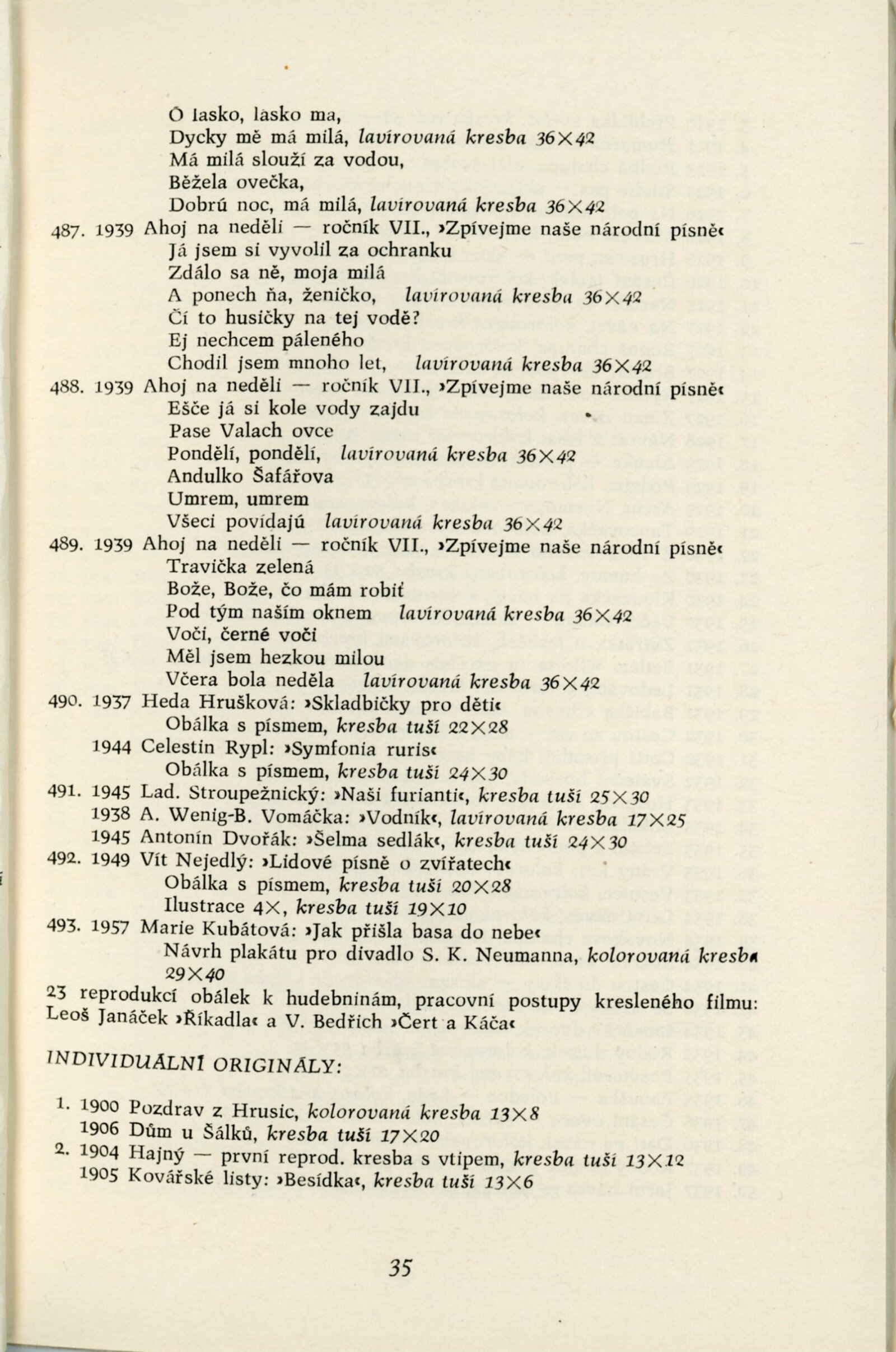 Josef Lada: Dům umění v Brně / Dům pánů z Poděbrad, 13. 4. – 18. 5. 1958 / Převzatý katalog. Národní umělec Josef Lada. Souborná výstava k jeho sedmdesátým narozeninám: Slovanský ostrov, Praha, prosinec 1957 – únor 1958 / Text: Jaromír Pečírka. – Praha: SČSVU, 1958. – 40 s., 32 s. obr. přil. 2 s. jednobar. obr. přil., báseň Ladislav Stehlík, DPK 3. – MG