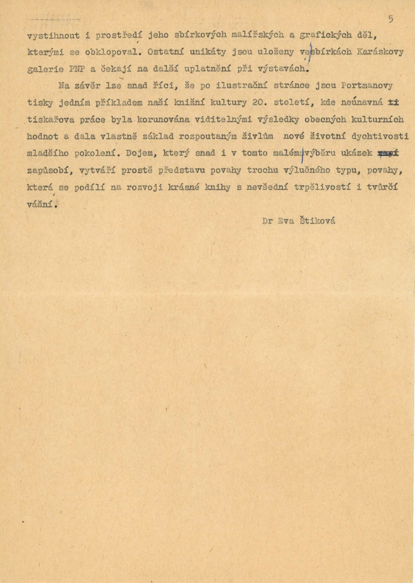 pozvánka, strojopis textu k výstavě (E. Štiková), seznam děl