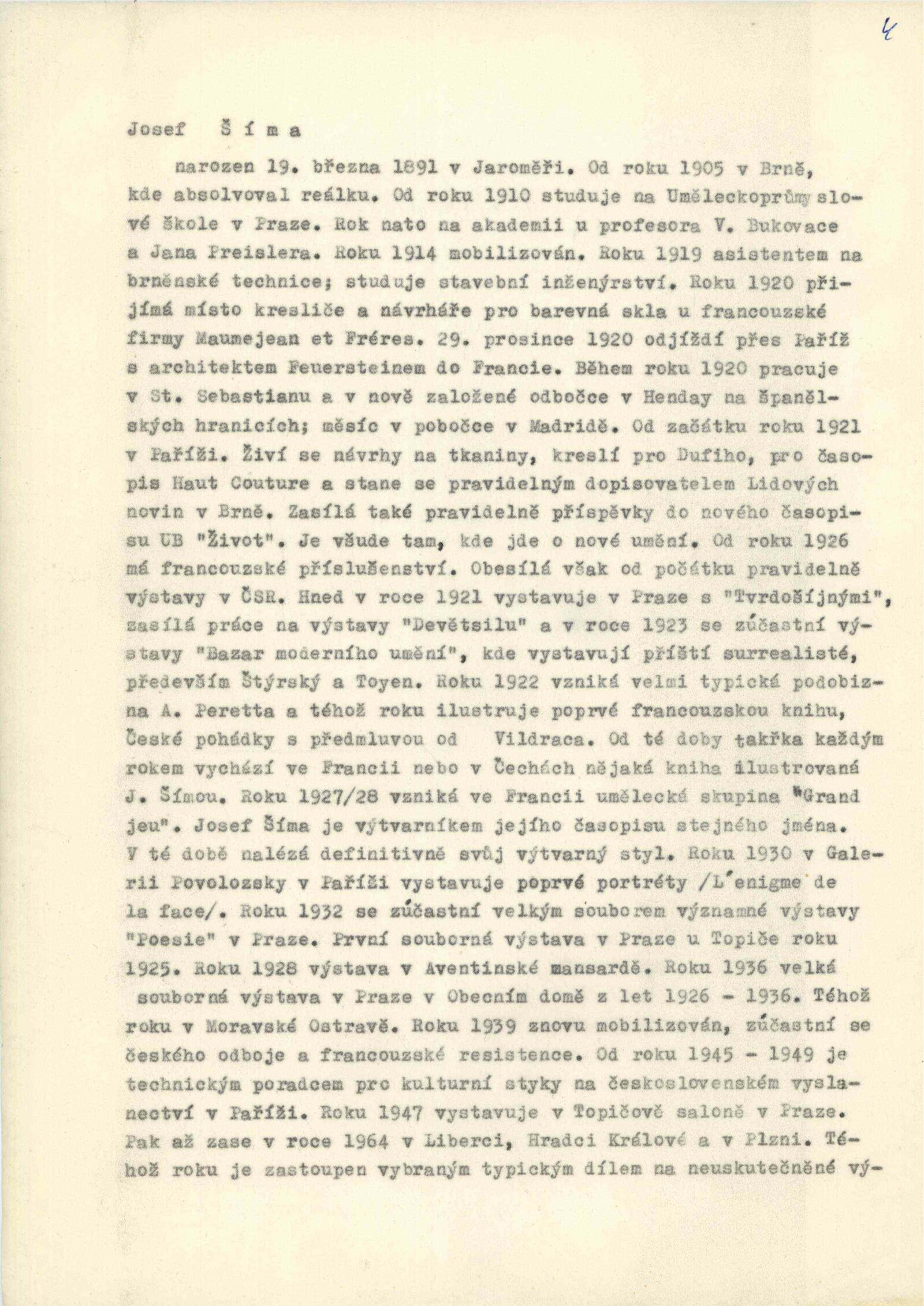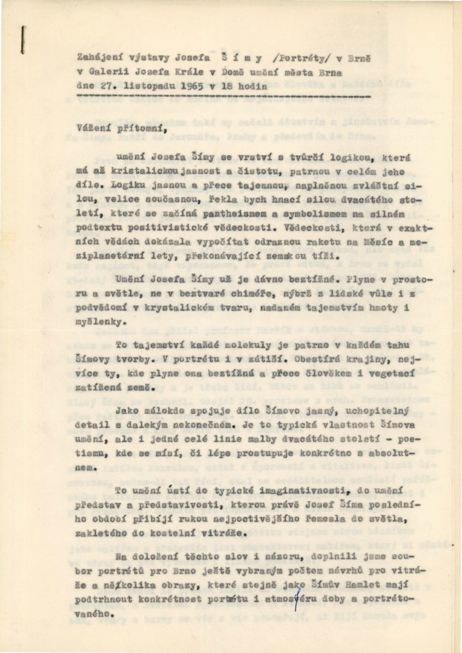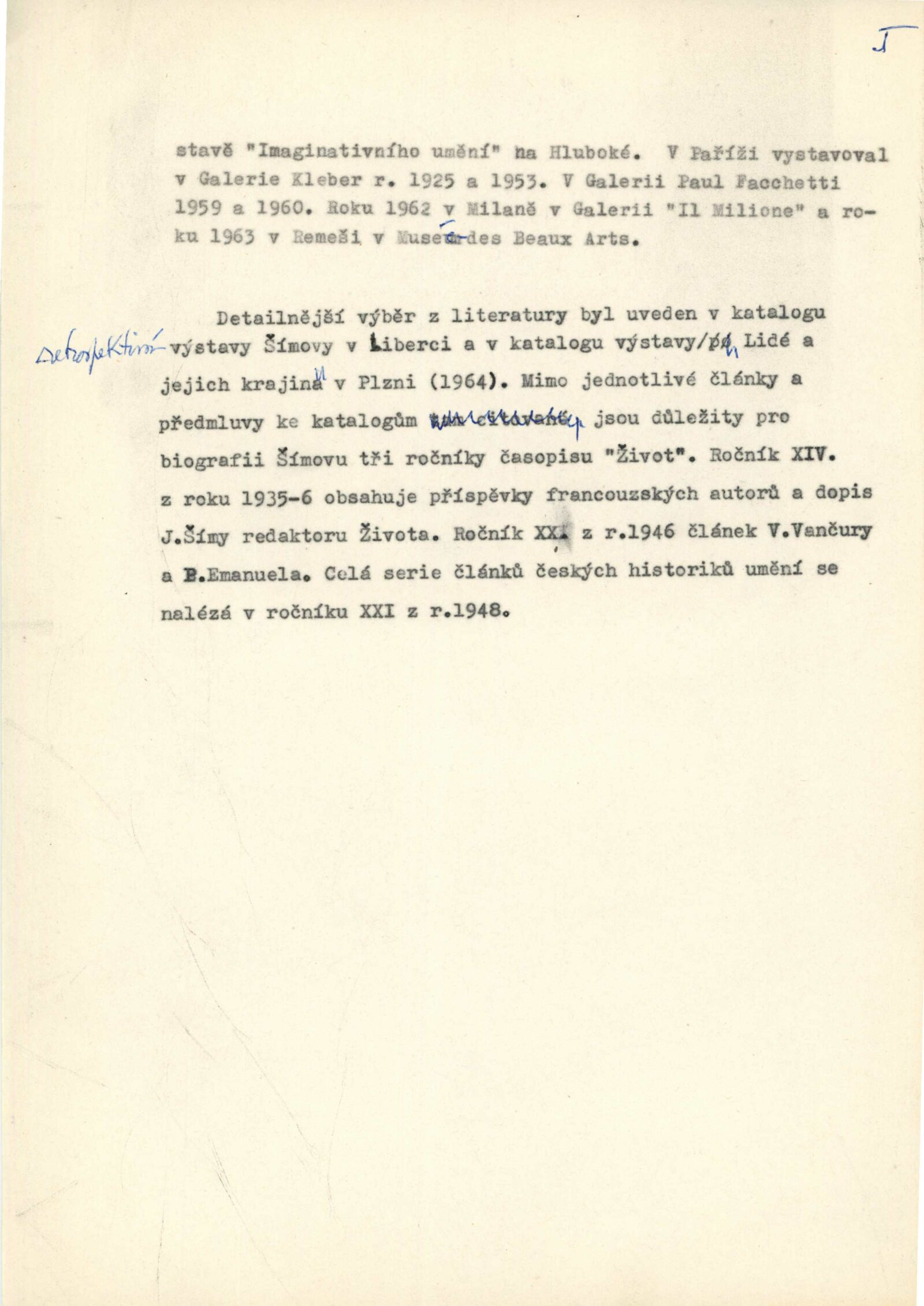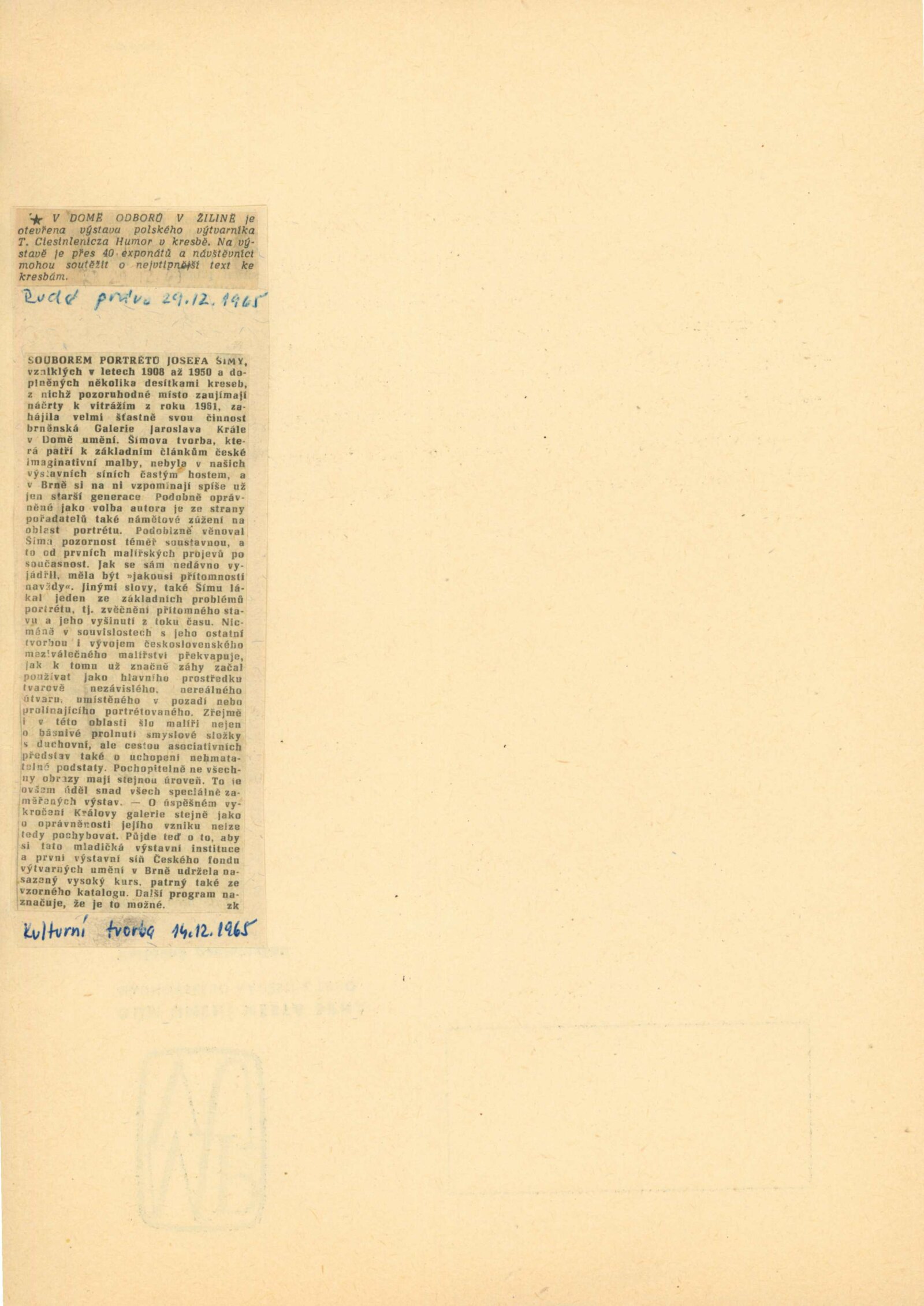 Josef Šíma. Portréty: Dům umění, Galerie Jaroslava Krále, 27. 11. 1965 – 3. 1. 1966 / Text: Anna Fárová. – Brno: ČFVU, 1965. – 18 s., obr., životopis, DU 448. – MZK; MG; MMB