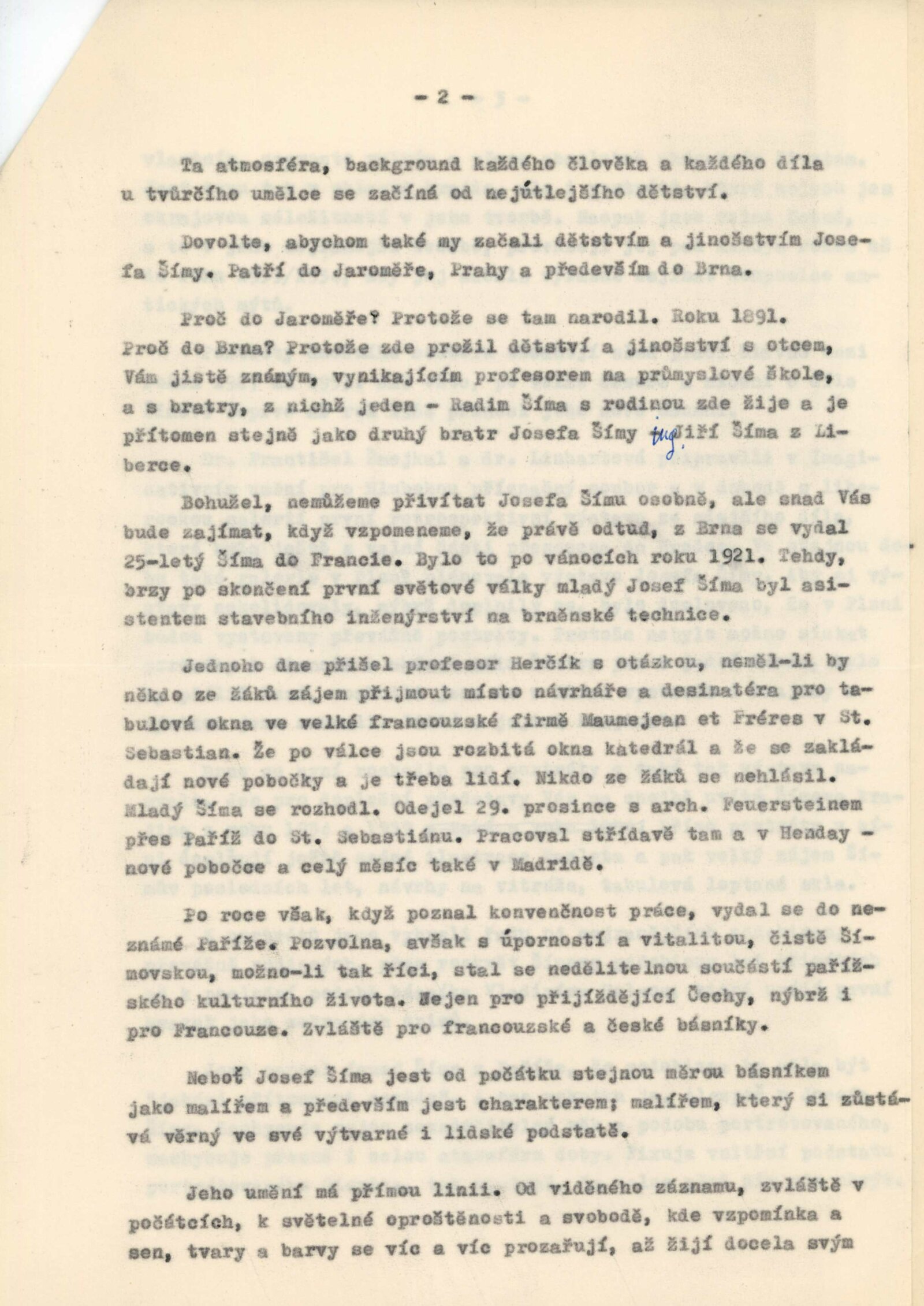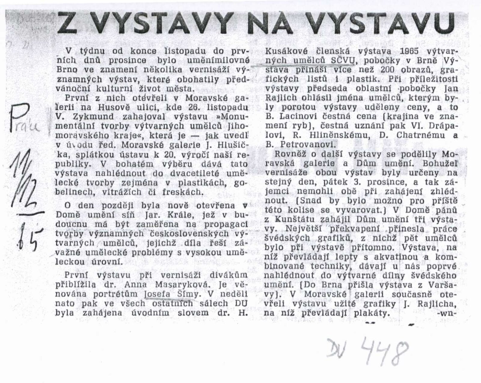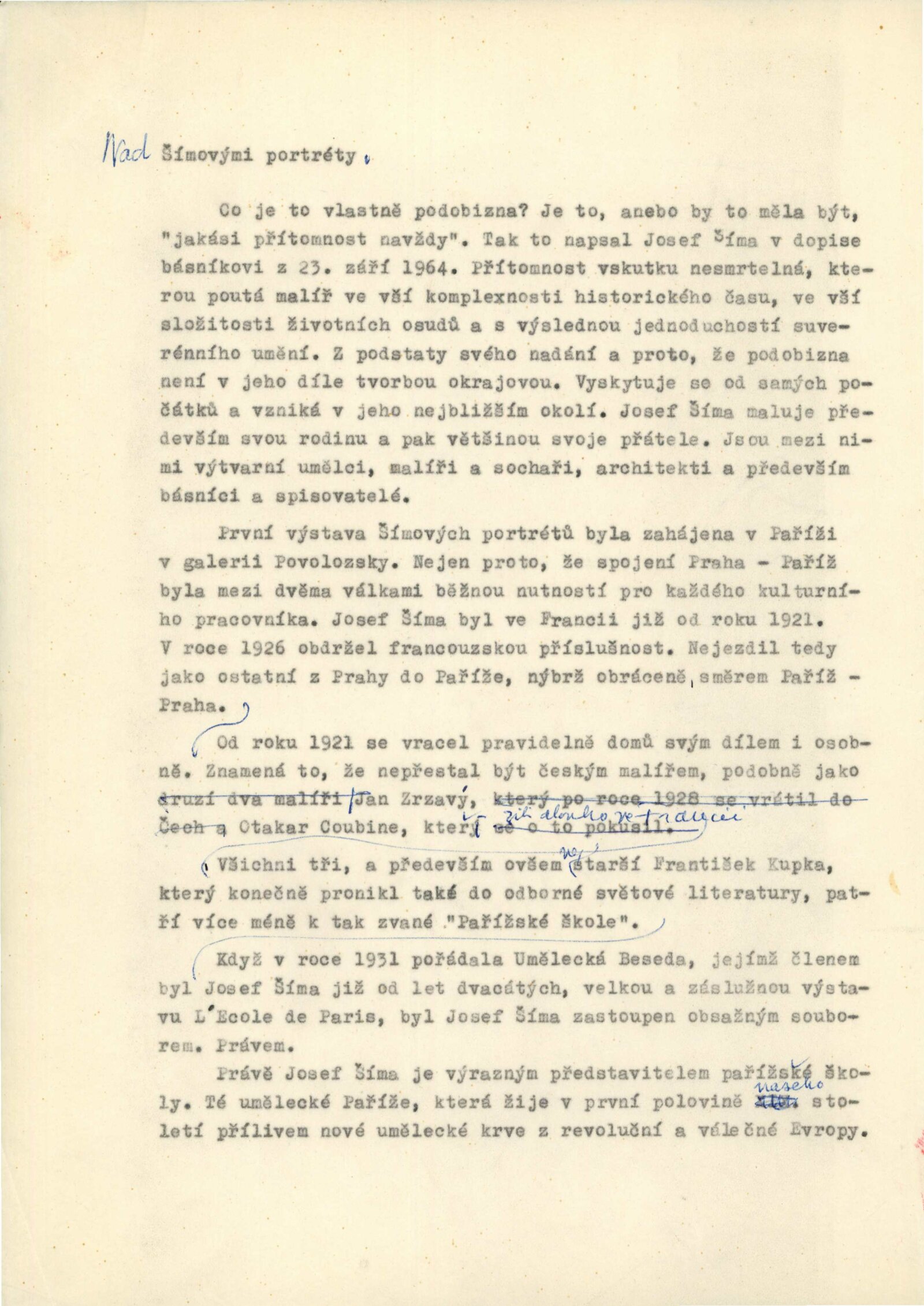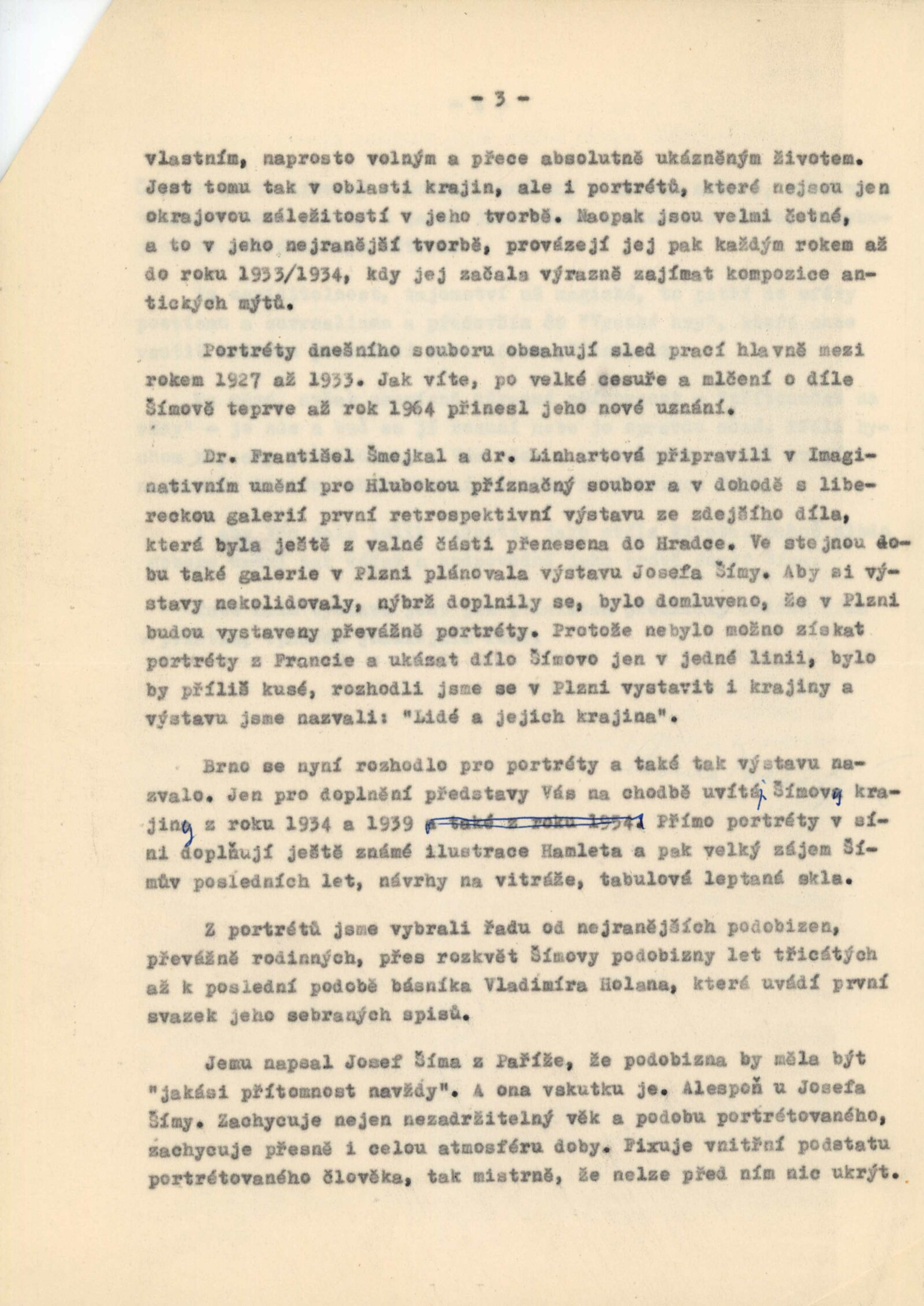 Josef Šíma. Portréty: Dům umění, Galerie Jaroslava Krále, 27. 11. 1965 – 3. 1. 1966 / Text: Anna Fárová. – Brno: ČFVU, 1965. – 18 s., obr., životopis, DU 448. – MZK; MG; MMB