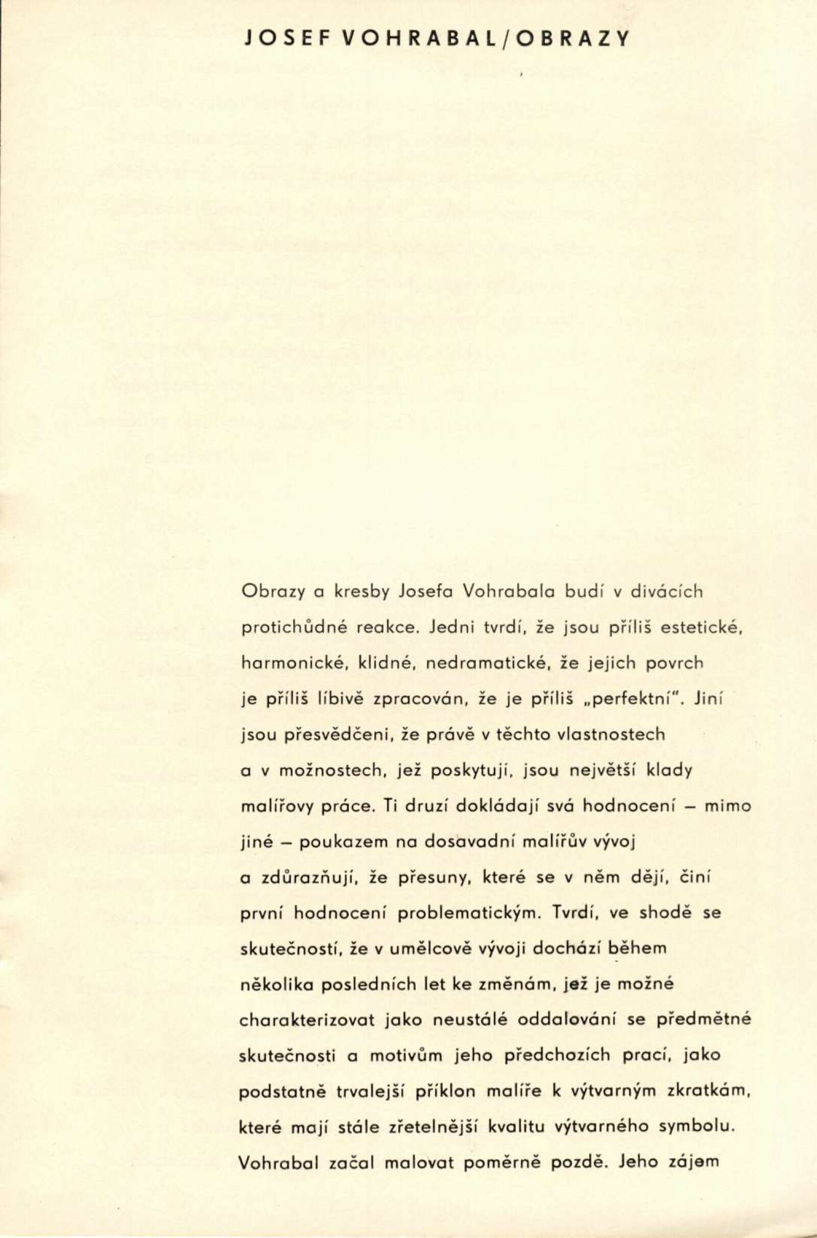 Josef Vohrabal. Obrazy: Dům umění, 37. výstava v Galerii Jaroslava Krále, Kabinet umění n. p. Kniha, 1. 2. – 5. 3. 1971 / Text: Václav Zykmund. – Brno: ČFVU, 1971. – 10 s., obr., portrét, životní data, výstavy, DU 558. – MZK; MG; MMB