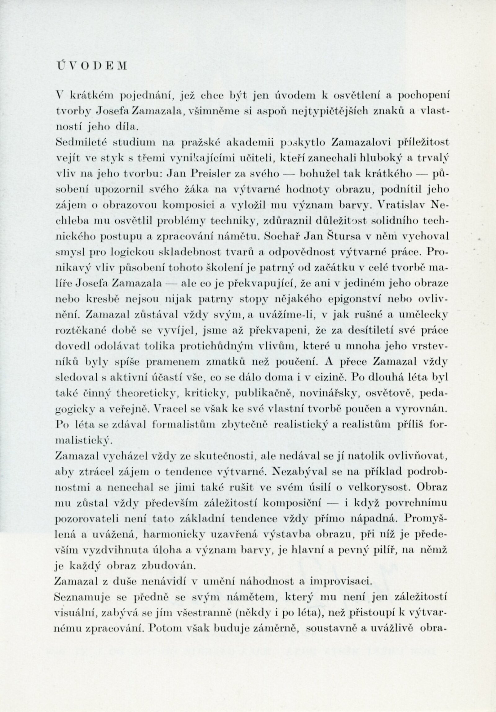 Josef Zamazal. Práce z posledních let: Dům umění, Malá galerie, 7. 10. – 1. 11. 1956 / Text: Jarmila Petříková. – Brno: DUmB, 1956. – skládačka, 6 s., obr., životopis, DU 265. – MG