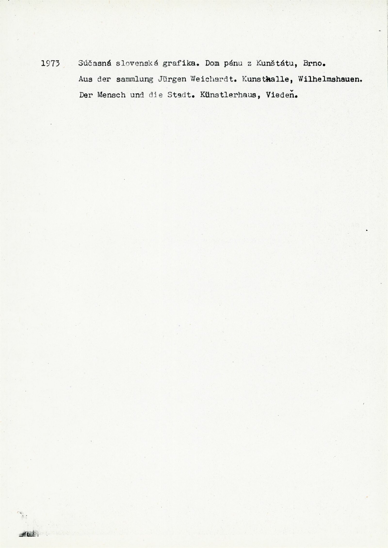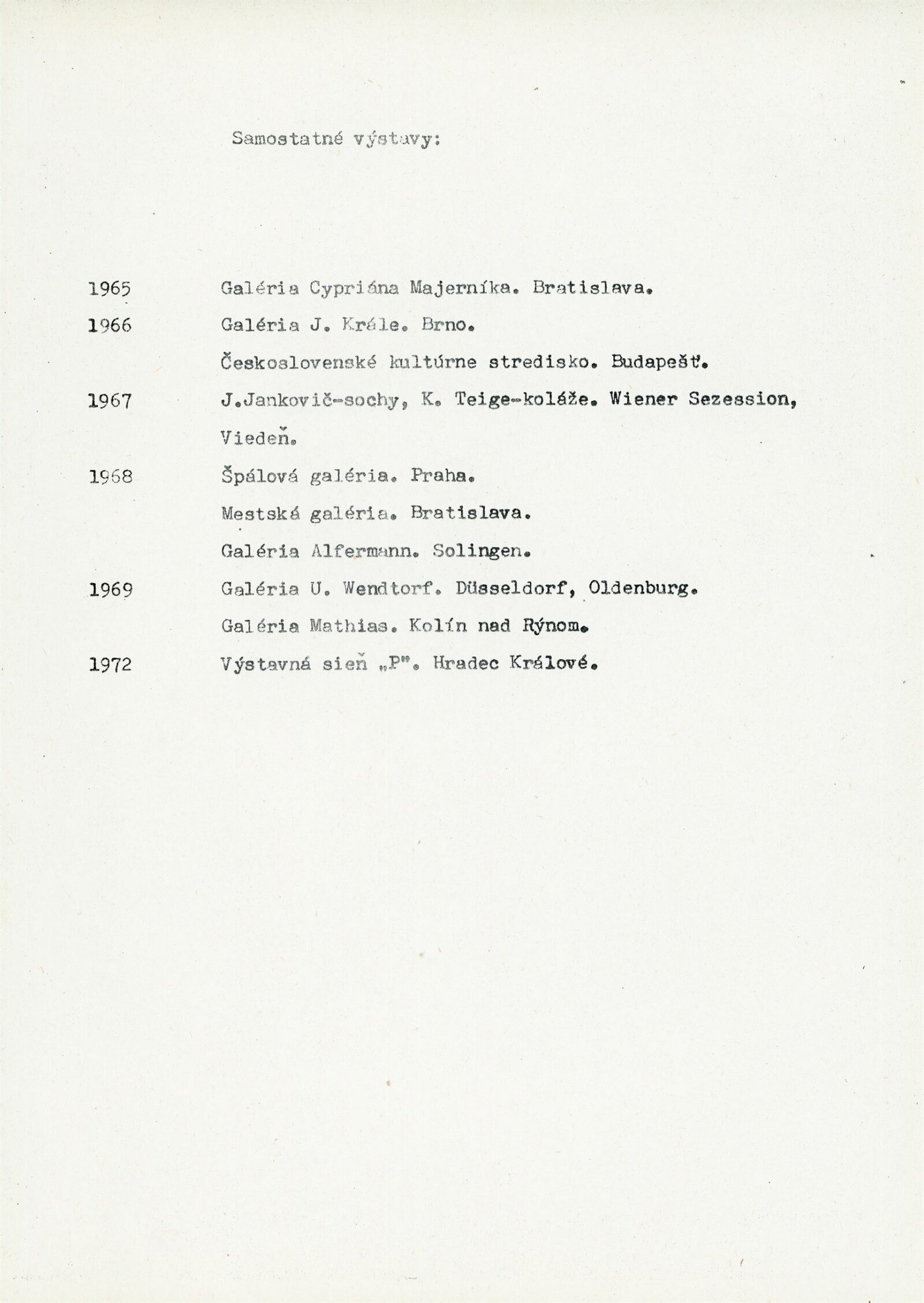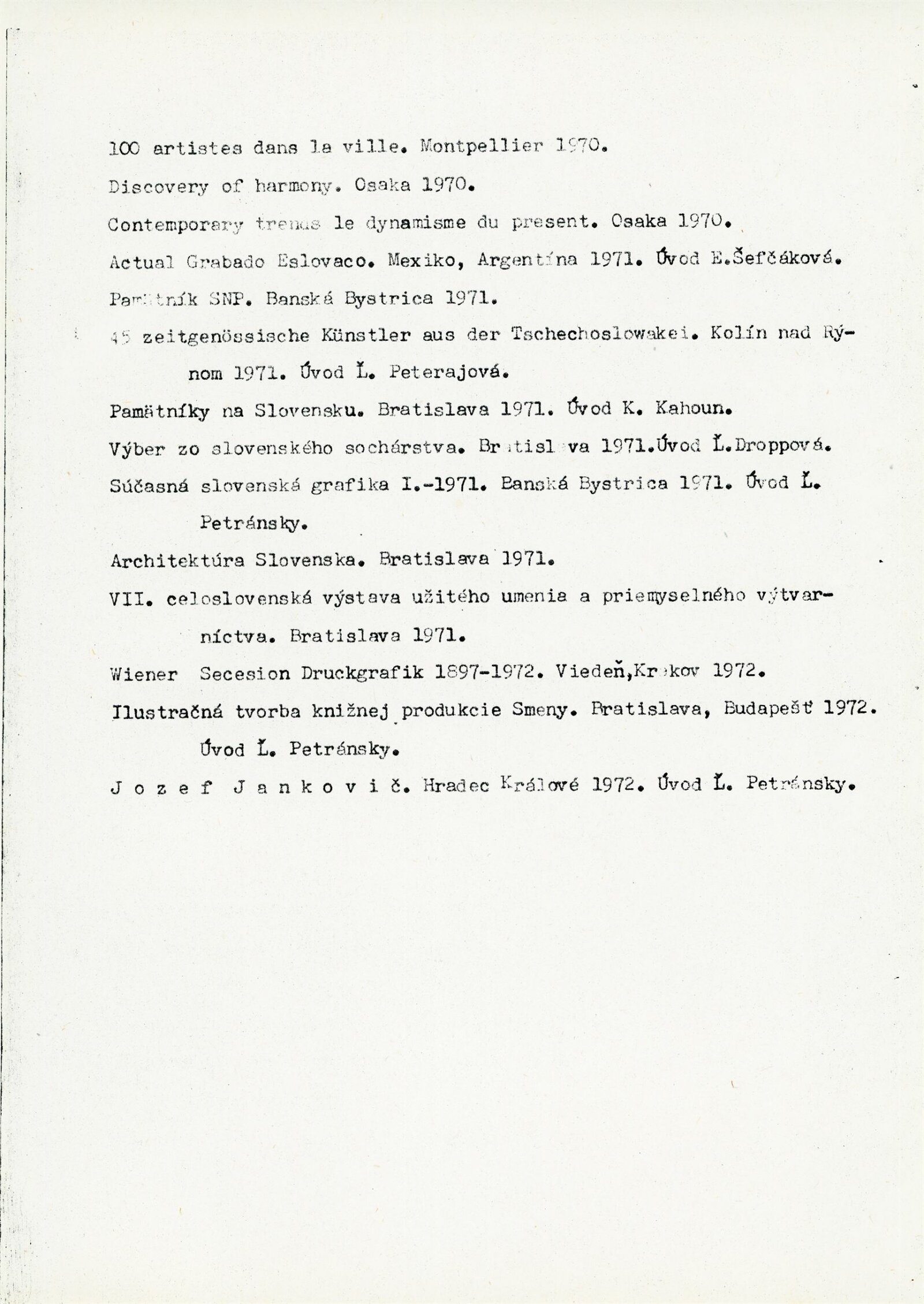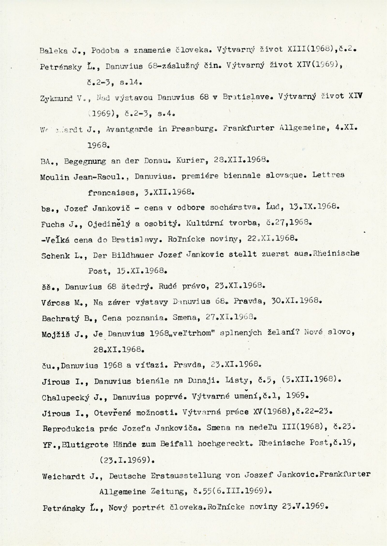Jozef Jankovič. Kresby: Dům umění / Dům pánů z Kunštátu, 135. výstava Kabinetu grafiky, 8. 6. – 8. 7. 1973 / Texty: Jiří Valoch, Ľudo Petránsky. – B. m. n., 1973. – 26 l., 23 l. bar. obr. příl., životní data, výstavy, bibliografie, DPK 542. – MZK; MG