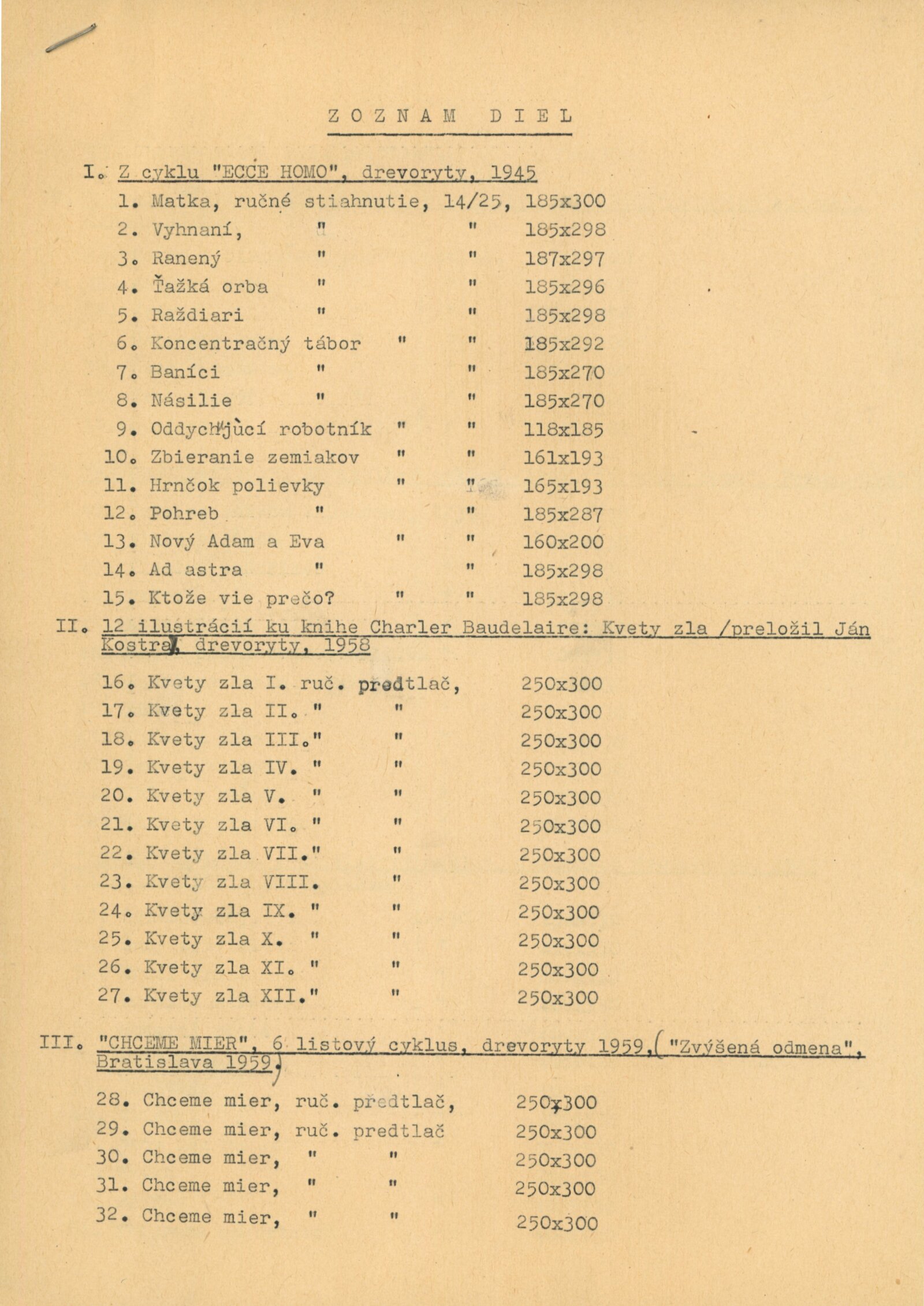 společná pozvánka DPK 224–226, karta k výstavě, katalog, strojopis textu k výstavě, podmínky pro uspořádání výstavy, seznam vystavených děl, fotografie děl, korespondence (příprava výstavy – Julius Szabó s DU), recenze v tisku