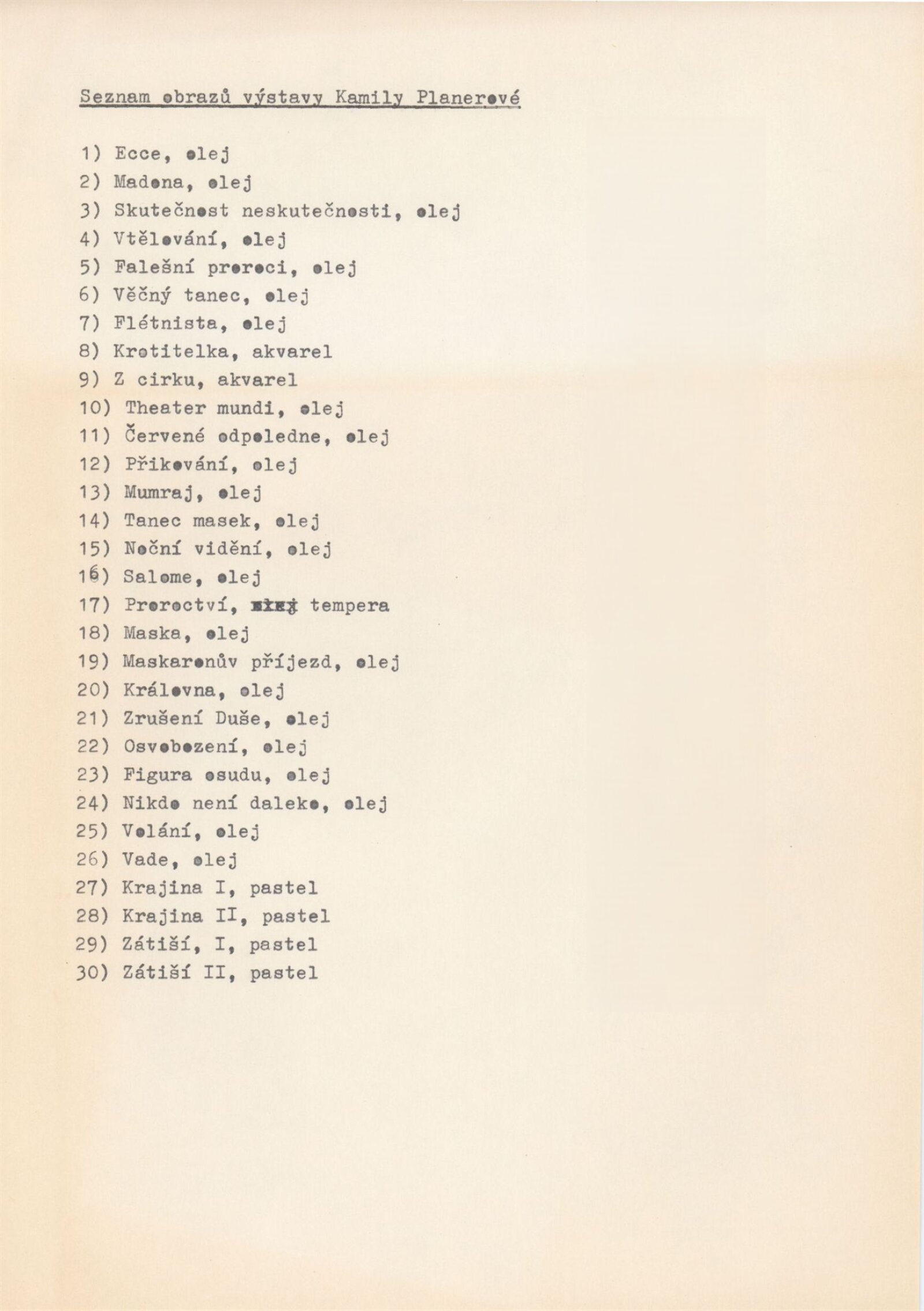 pozvánka, katalog, strojopis a podklady pro katalog, seznam vystavených děl, provozní korespondence, žádost autorky o výstavu