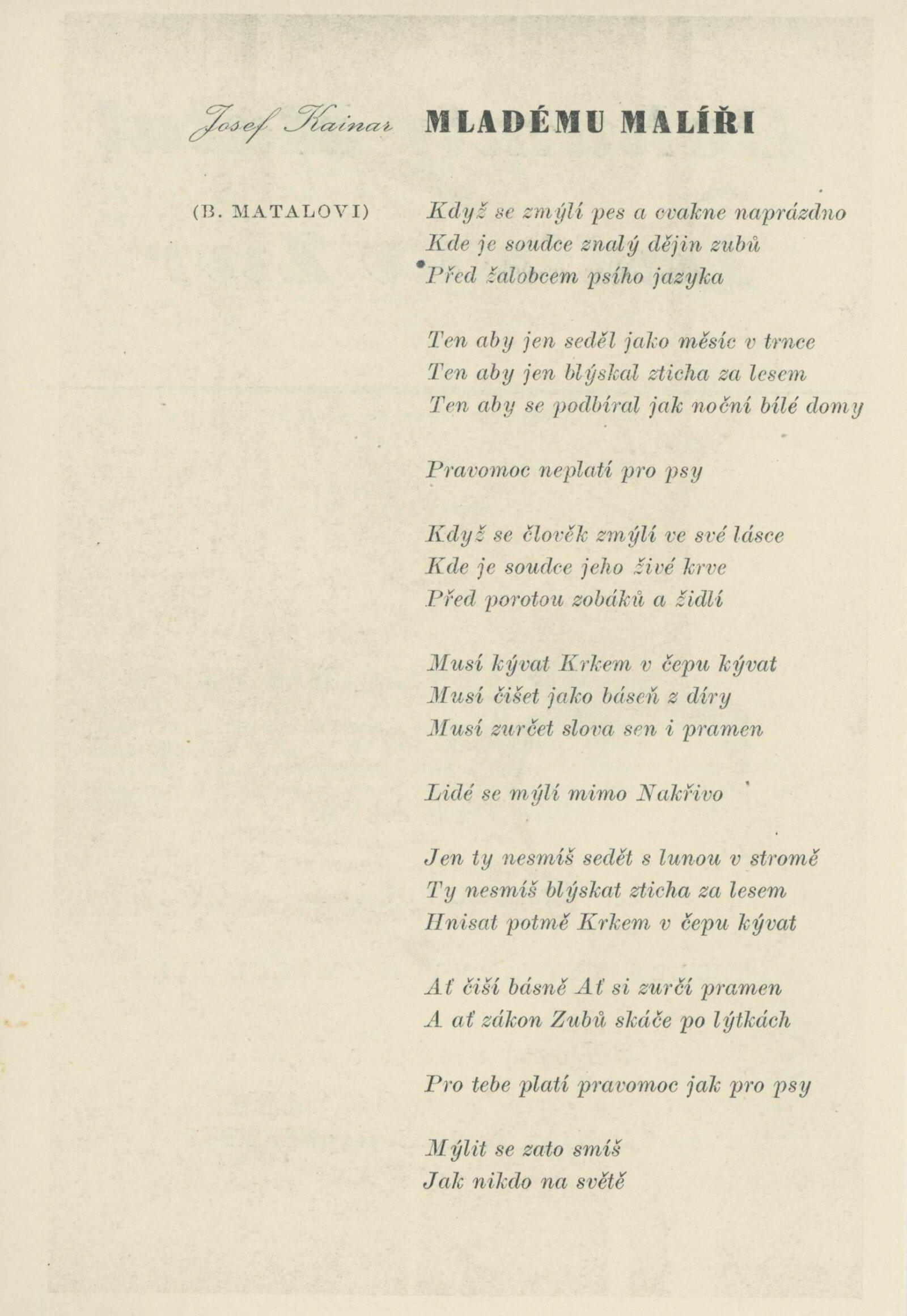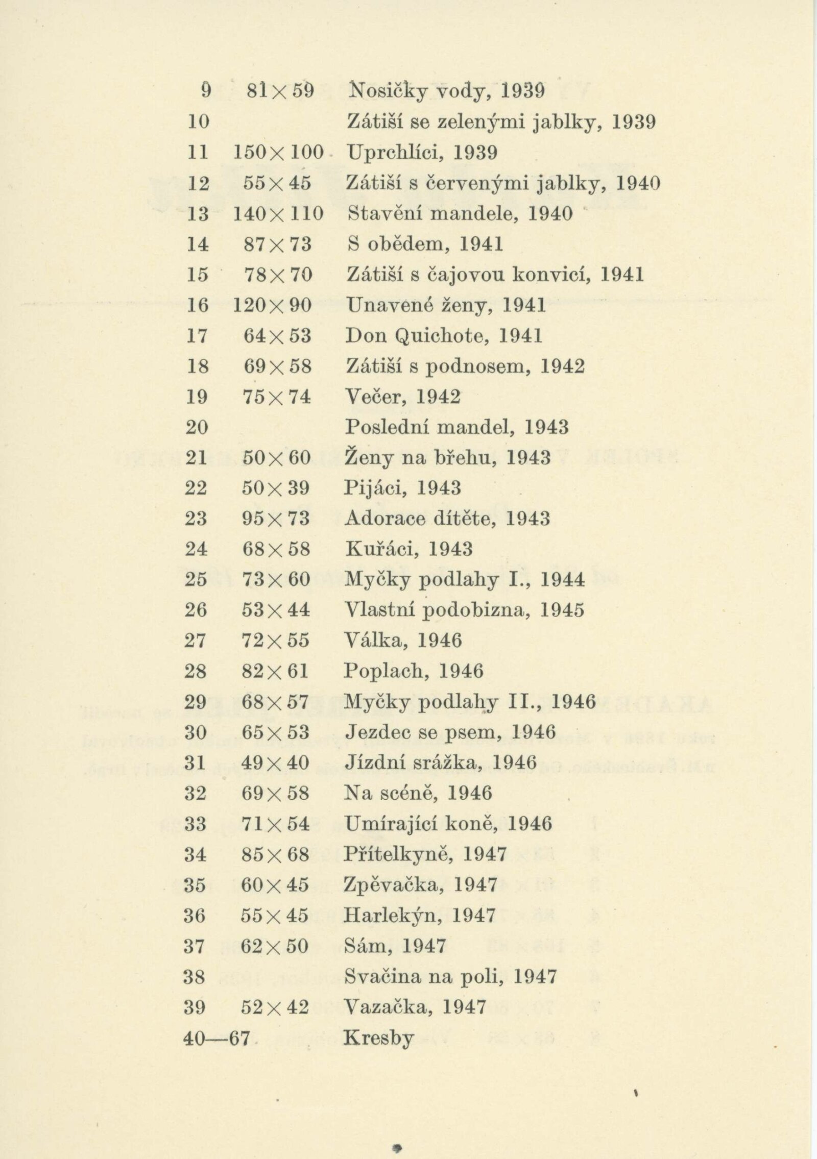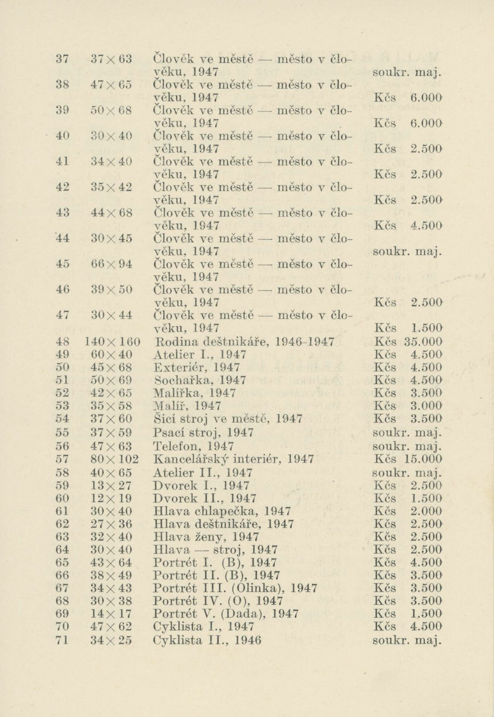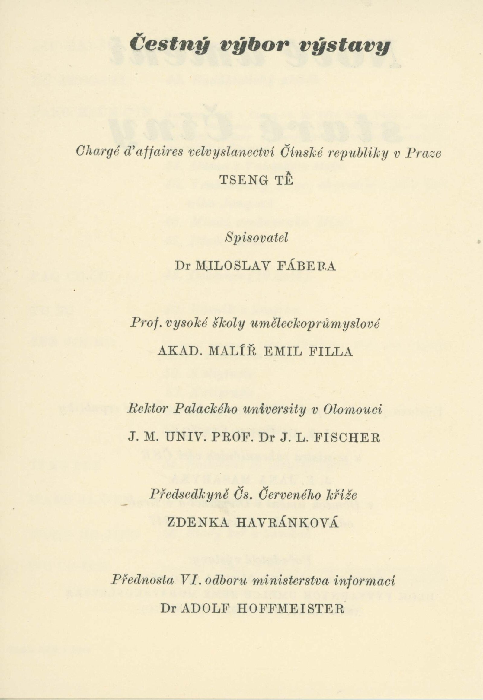 Katalog výstav Domu umění, pořádaných 25. 10. – 16. 11. 1947 / Obsahuje výstavy: Jubilejní soubor obrazů k padesátinám akad. malíře prof. Karla Jílka. 46. výstava, Soubor obrazů akademického malíře Bohumíra Matala a plastik sochaře Ladislava Zívra. 47. výstava, Nové umění staré Číny. 48. výstava, Kresby malířů demokratického Španělska. 49. výstava, Grafika Petra Dillingera. 51. výstava, Soutěžní návrhy na reliéf Domu umění. 52. výstava. – Brno: Blok, SVU Aleš, Čínská společnost, Klub přátel umění v Brně, 1947. – 18 s., obr., životopisy seznam vystavených děl, DU 48–52. – Kubíček 7802; MZK; MG; AMB