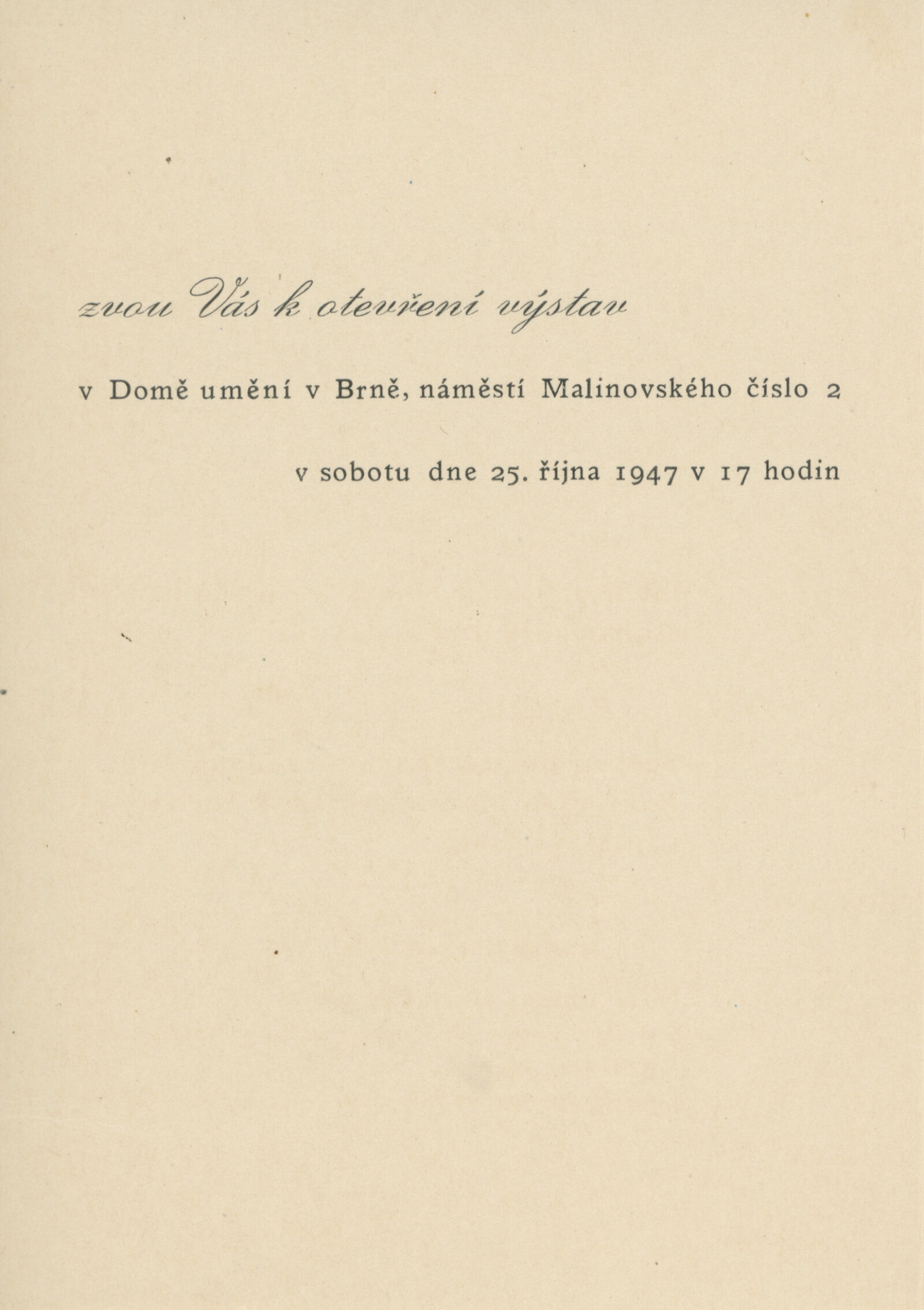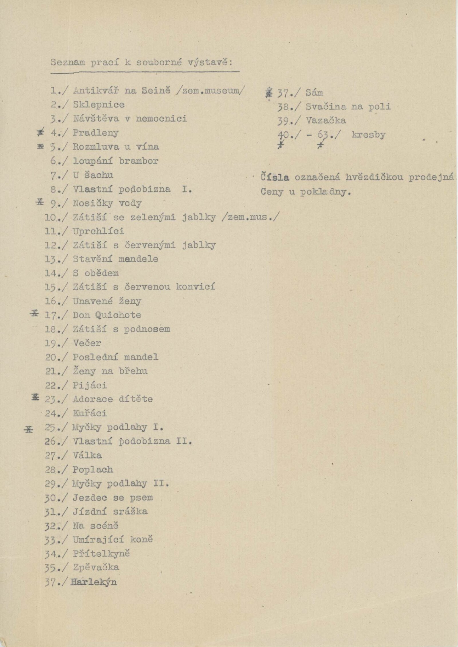 pozvánka, katalog, seznam vystavených děl, korespondence (s Františkem Venerou o přípravě výstavy), provozní korespondence, recenze v tisku