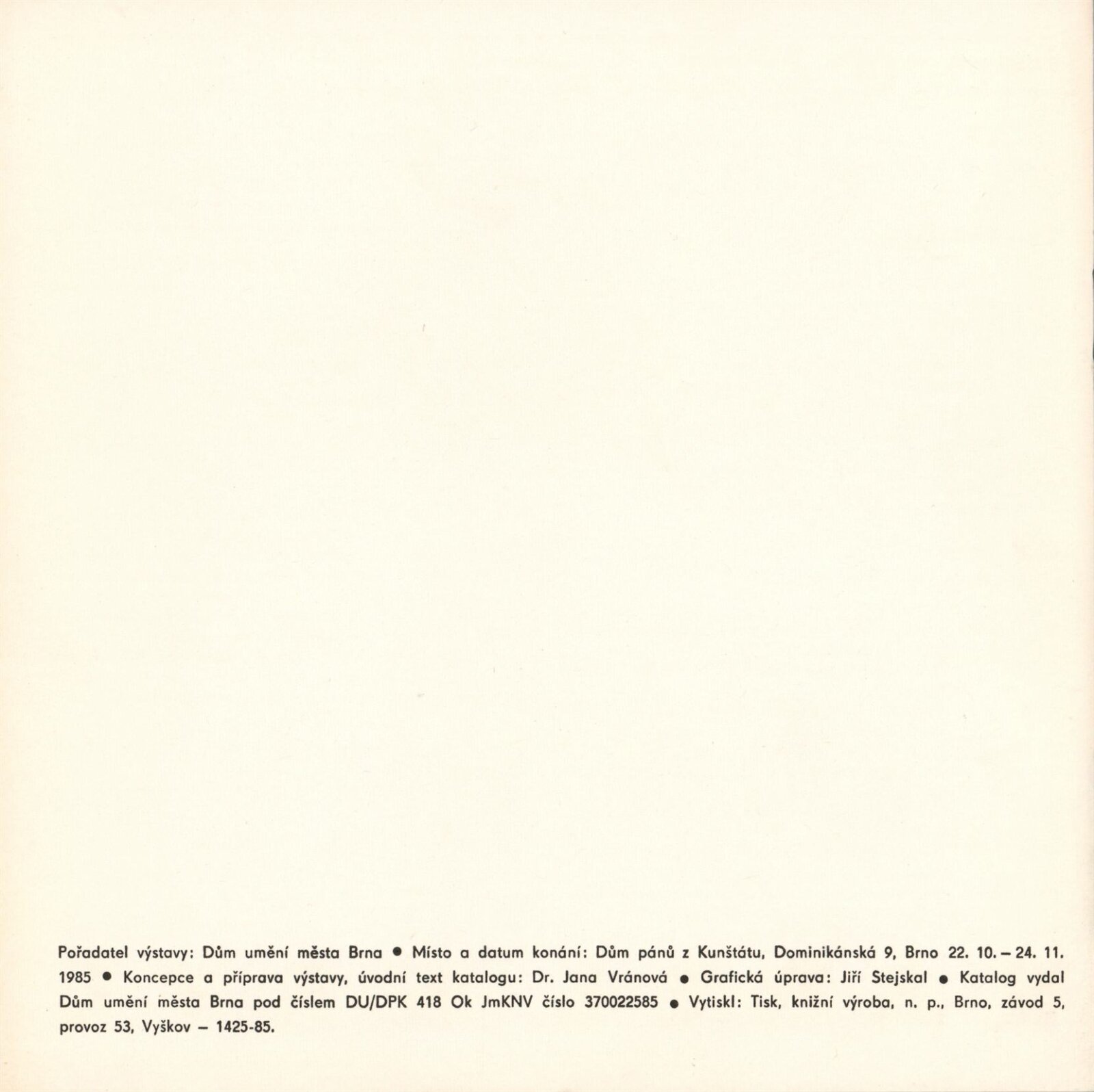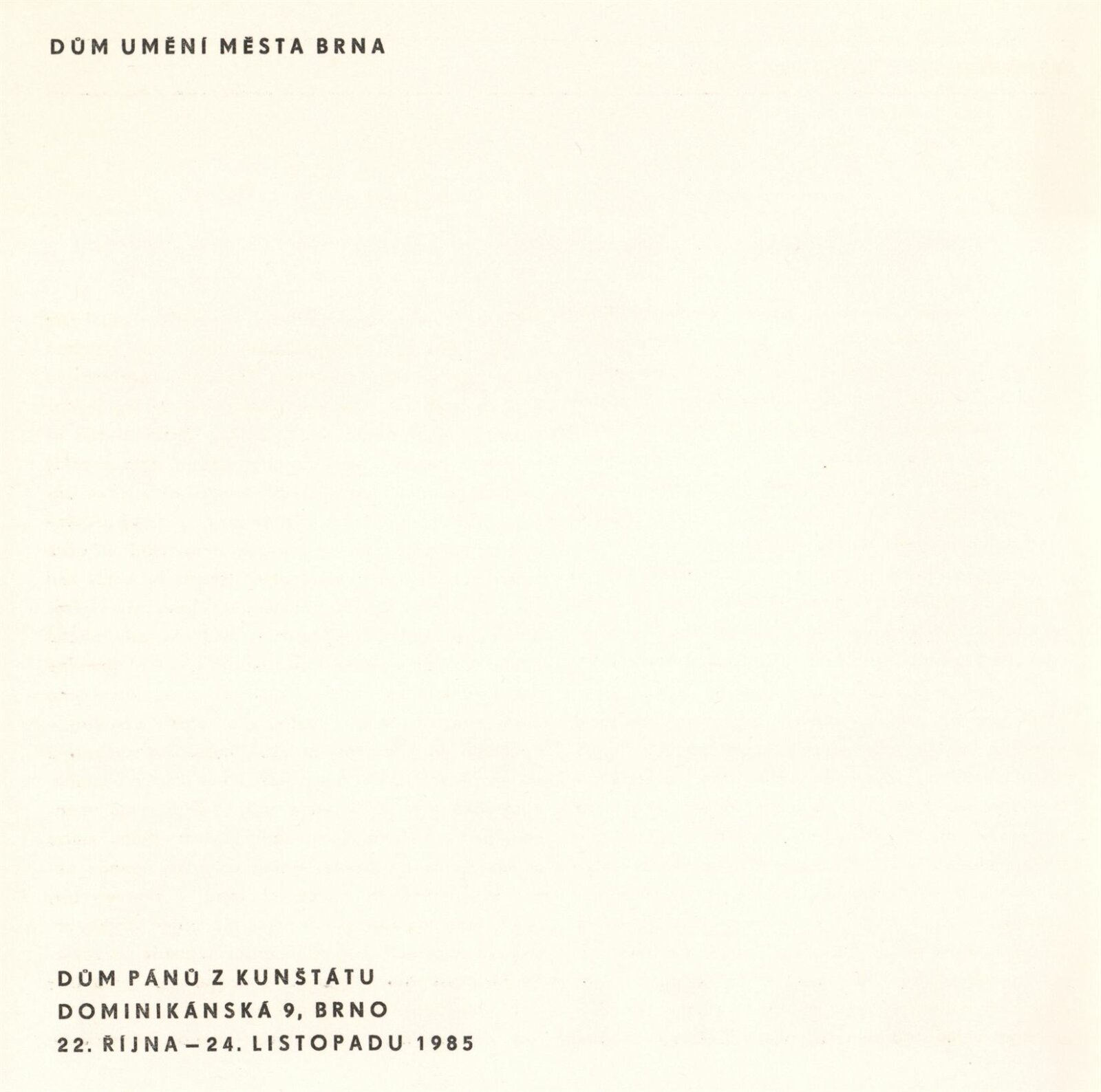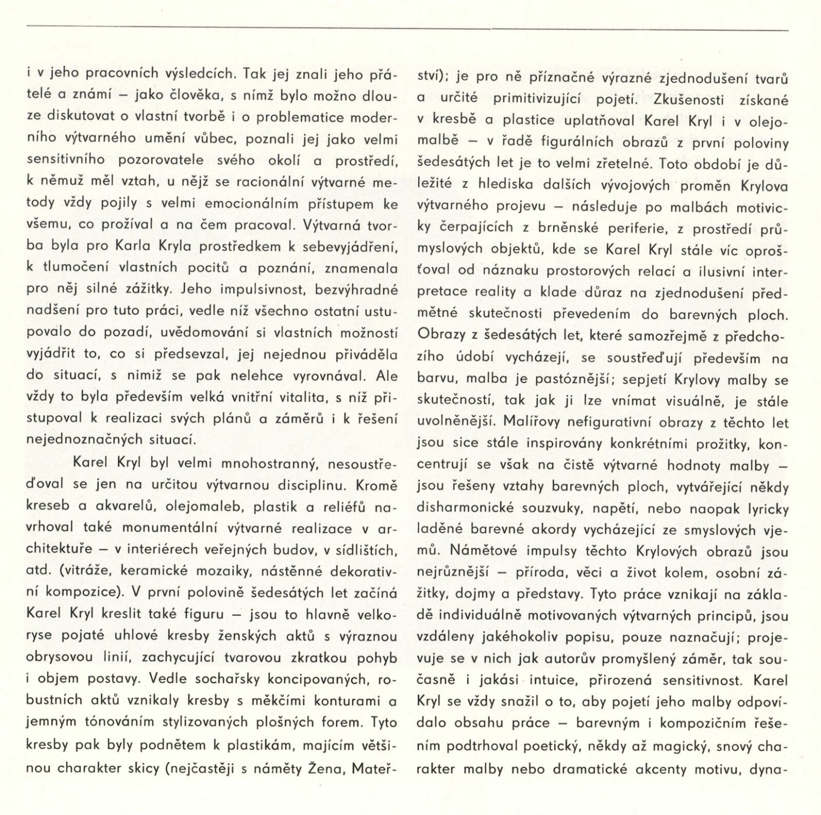 Karel Kryl. Obrazy, kresby, plastiky: Dům umění / Dům pánů z Kunštátu, 22. 10. – 24. 11. 1985 / Text: Jana Vránová. – Brno: DUmB, 1985. – 17 s., obr., seznam vystavených prací 3 s., životní data, výstavy, realizace v architektuře, DPK 856. – MZK; MG; MMB