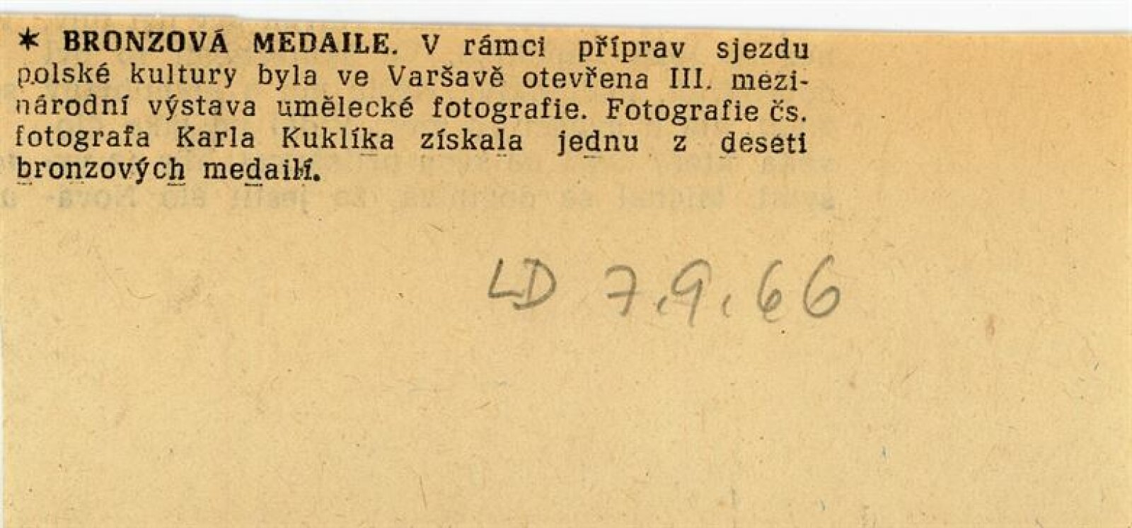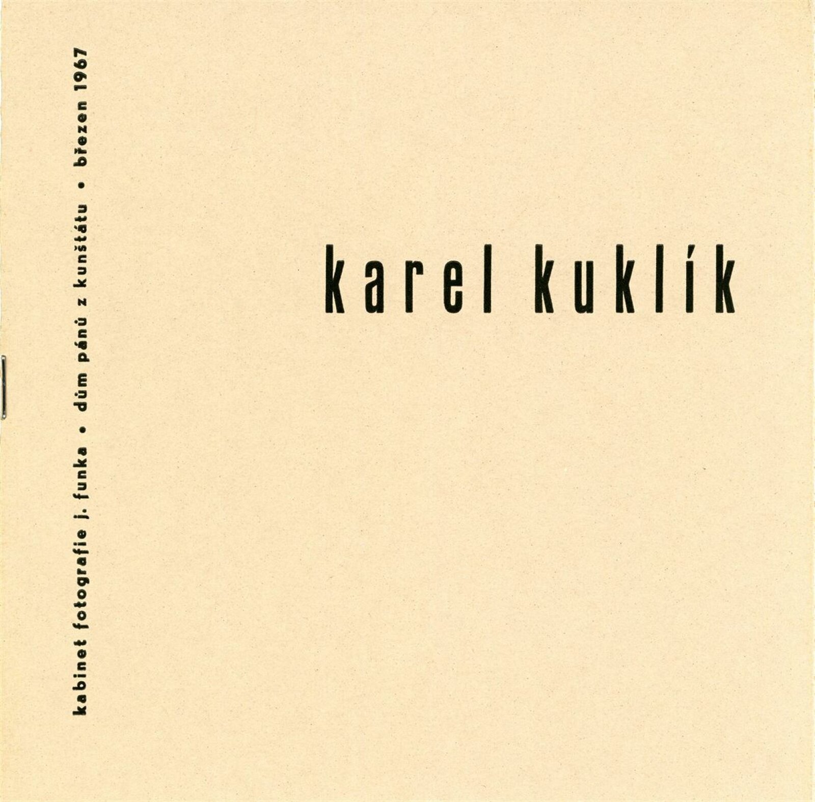 Karel Kuklík. Výběr fotografií z let 1958 –1966: Dům umění města Brna/ Dům pánů z Kunštátu, 80. výstava Kabinetu fotografie Jaromíra Funka, 3. 3. – 2. 4. 1967/ Text: Karel Dvořák. – Brno: DUmB, 1967. – 4 s. obr. příl. v obálce, životní data, výstavy, DPK 332. – MZK; MG; MMB