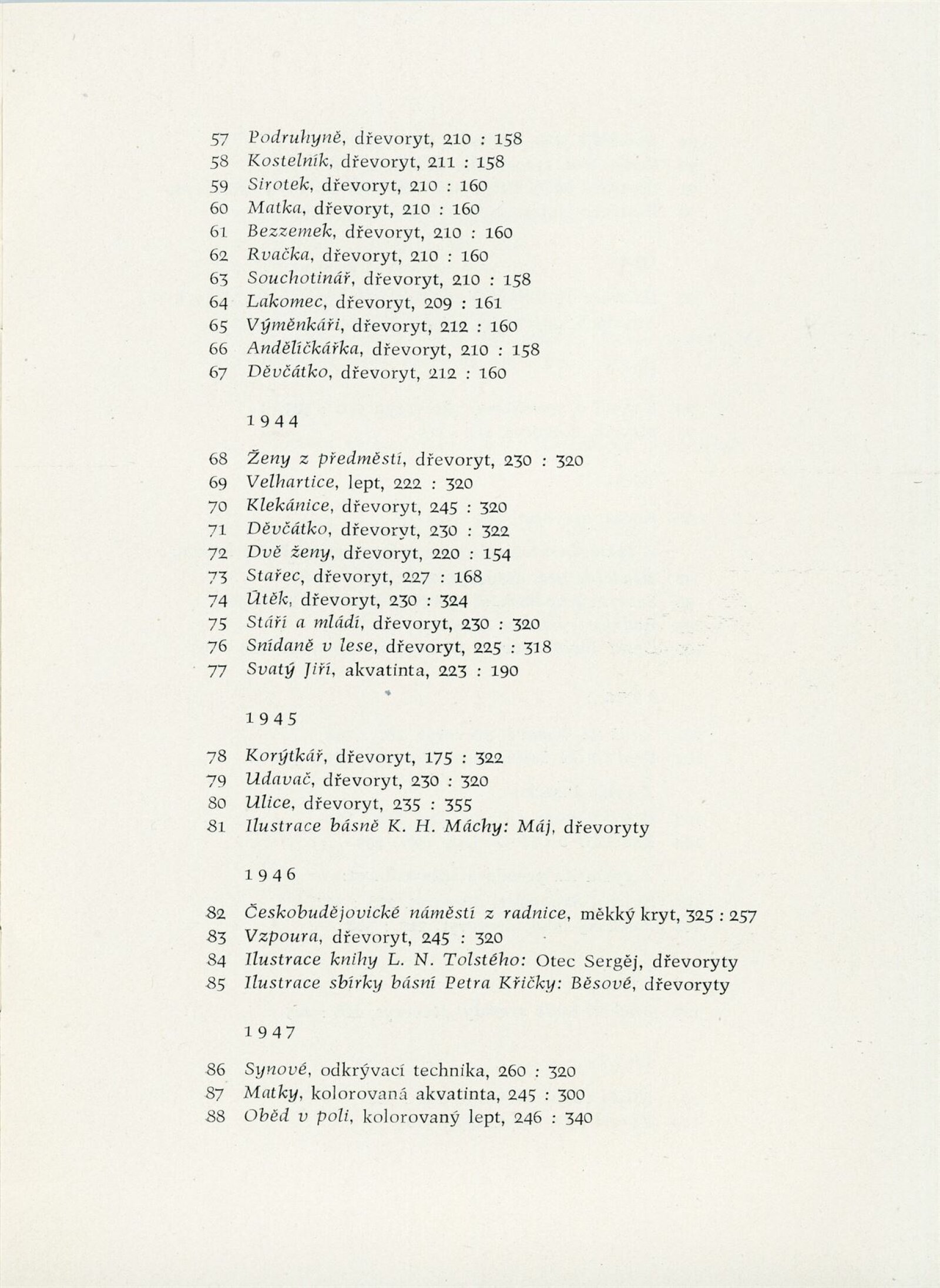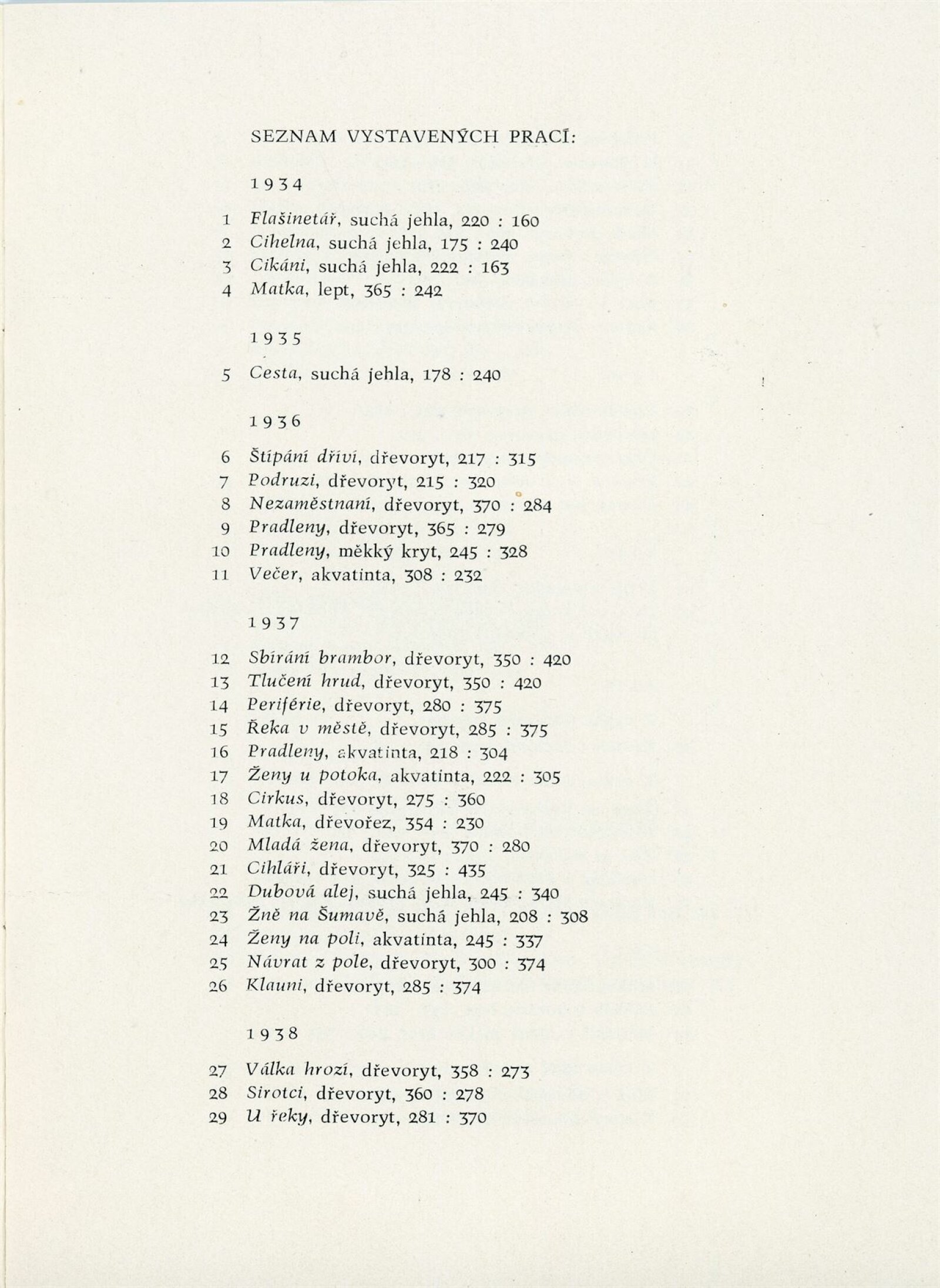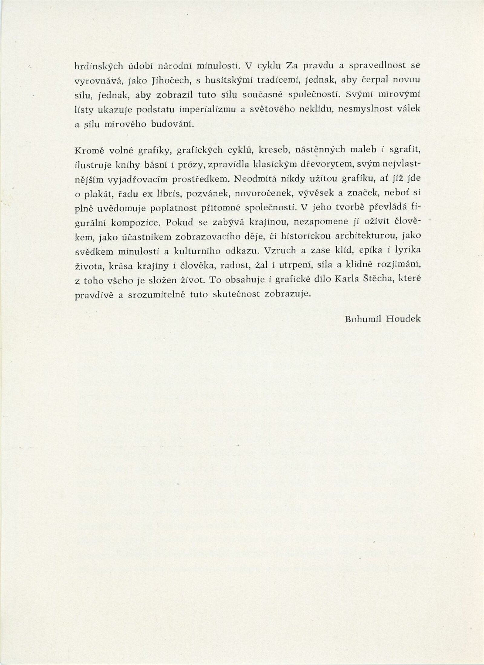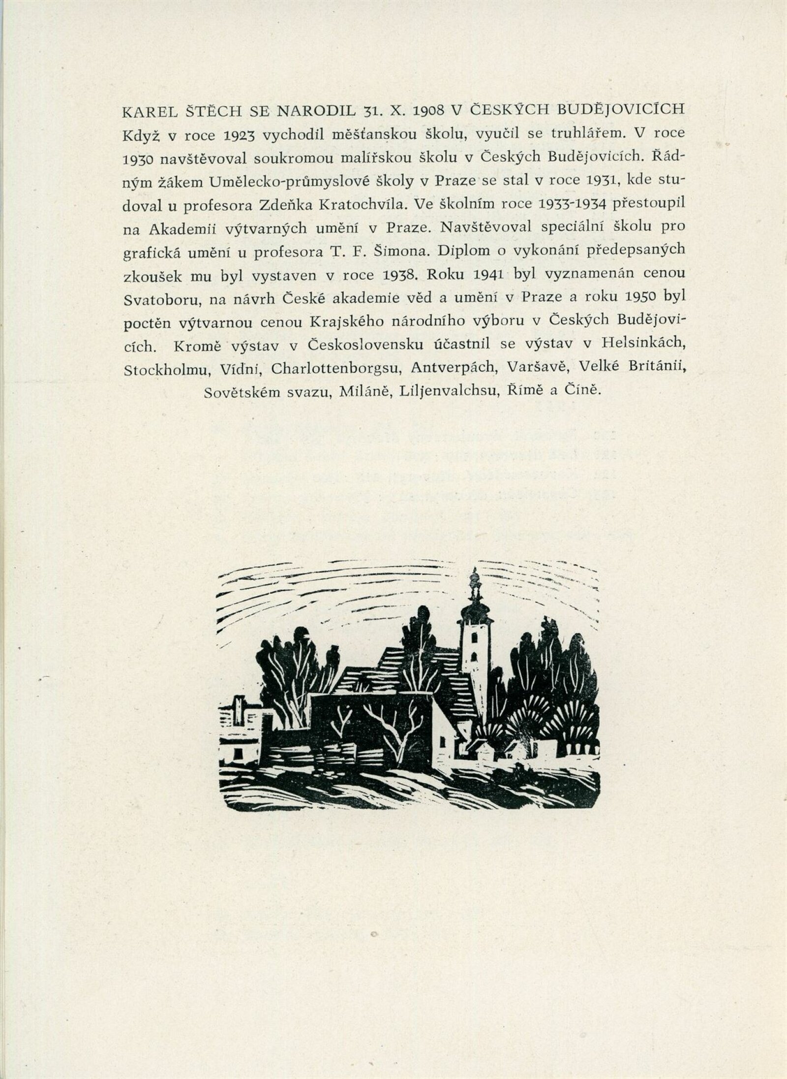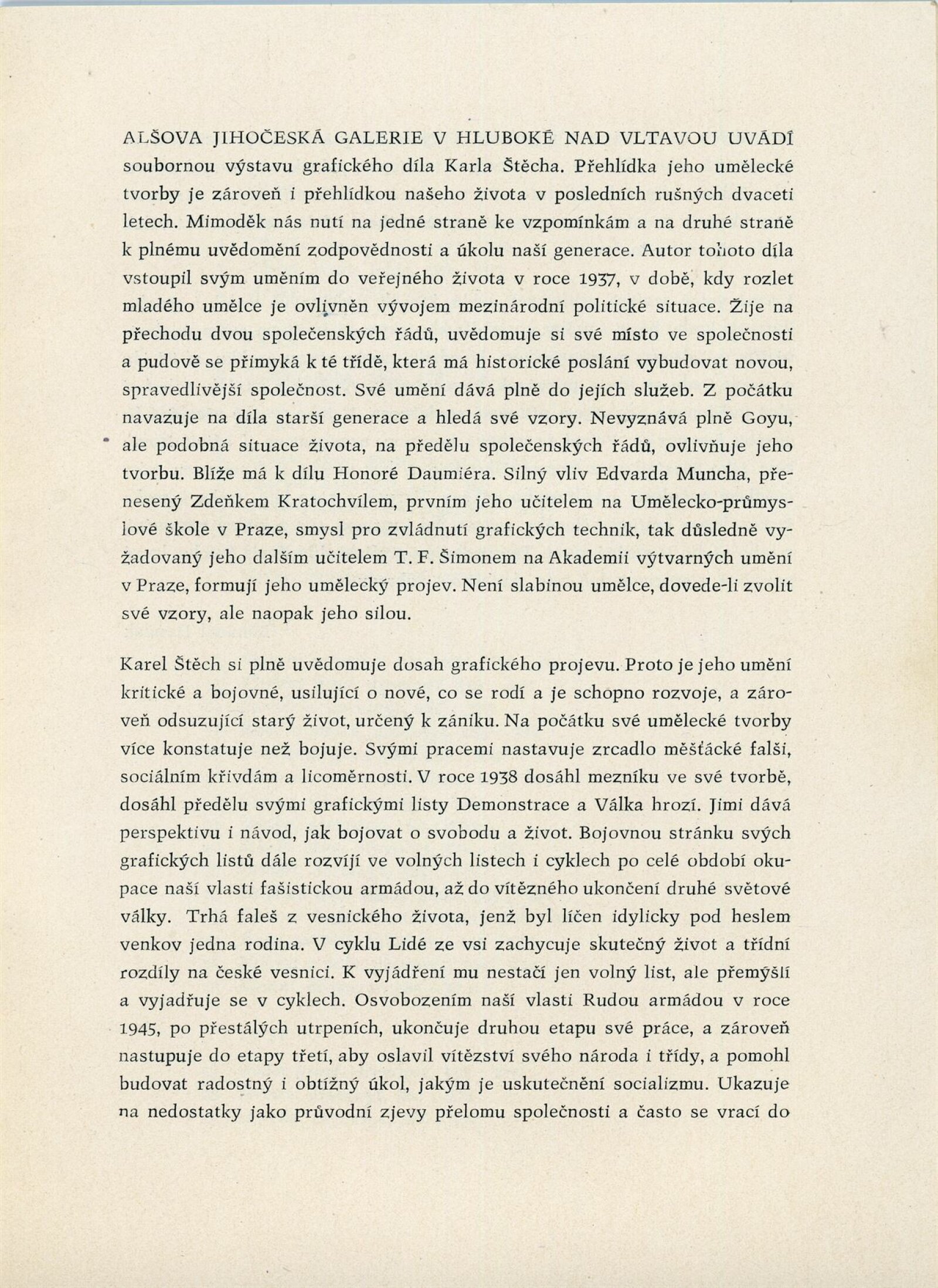 Karel Štěch. Souborná výstava původní grafiky: Dům umění města Brna / Dům pánů z Kunštátu, 11. výstava Kabinetu grafiky, 6. 3. – 3. 4. 1960 / Převzatý katalog. Karel Štěch. Souborná výstava původní grafiky. K padesátinám umělce: Alšova jihočeská galerie Hluboká nad Vltavou, 1958 / Text: Bohumil Houdek. – Hluboká nad Vltavou: AJG, 1958. – 17 s., obr., DPK 59