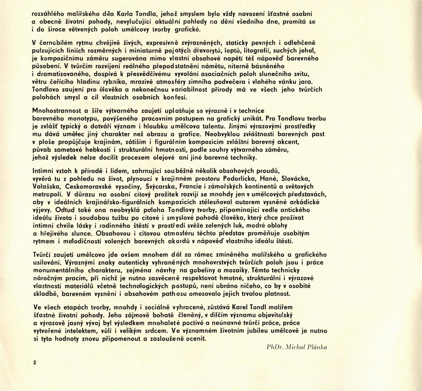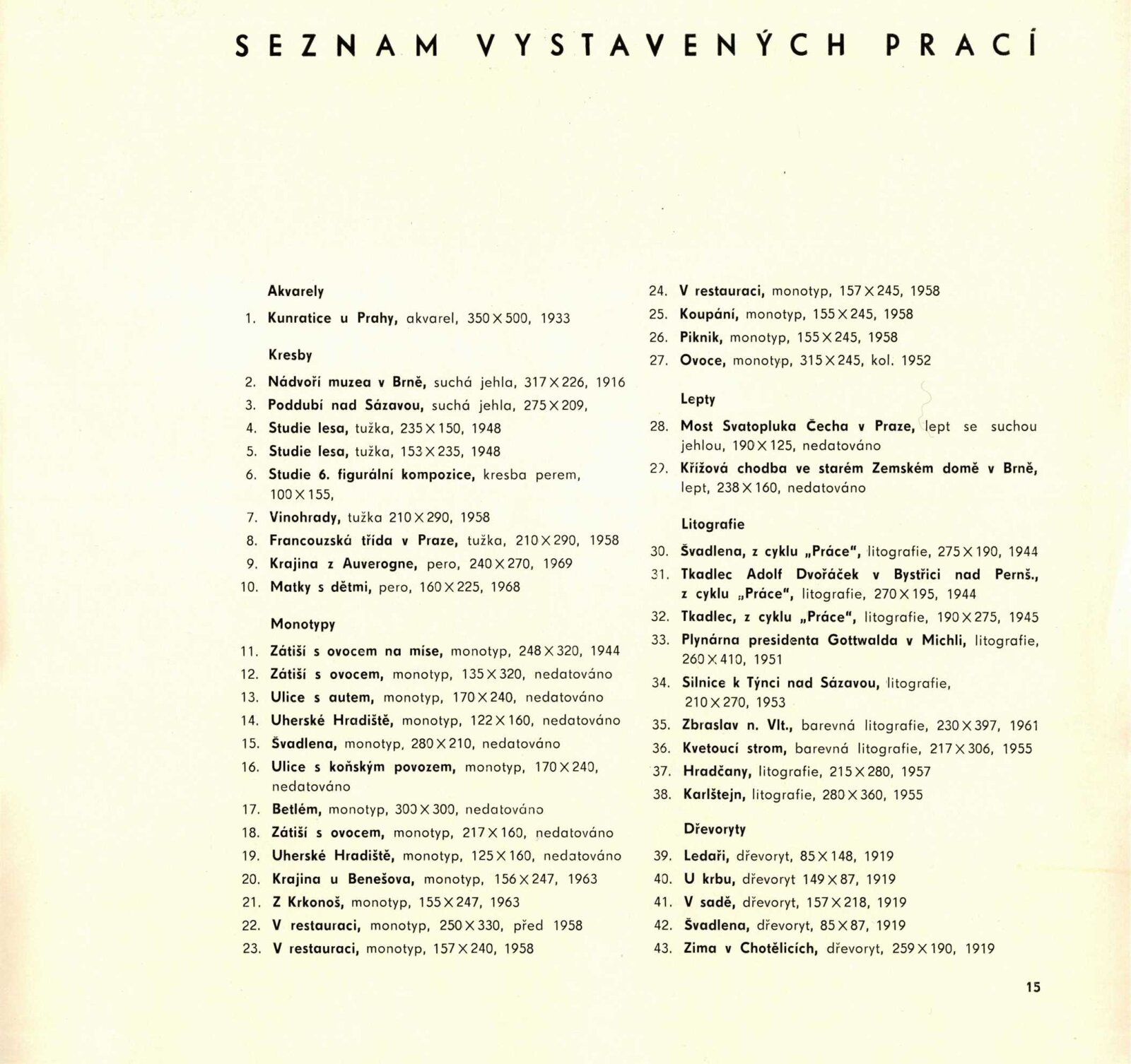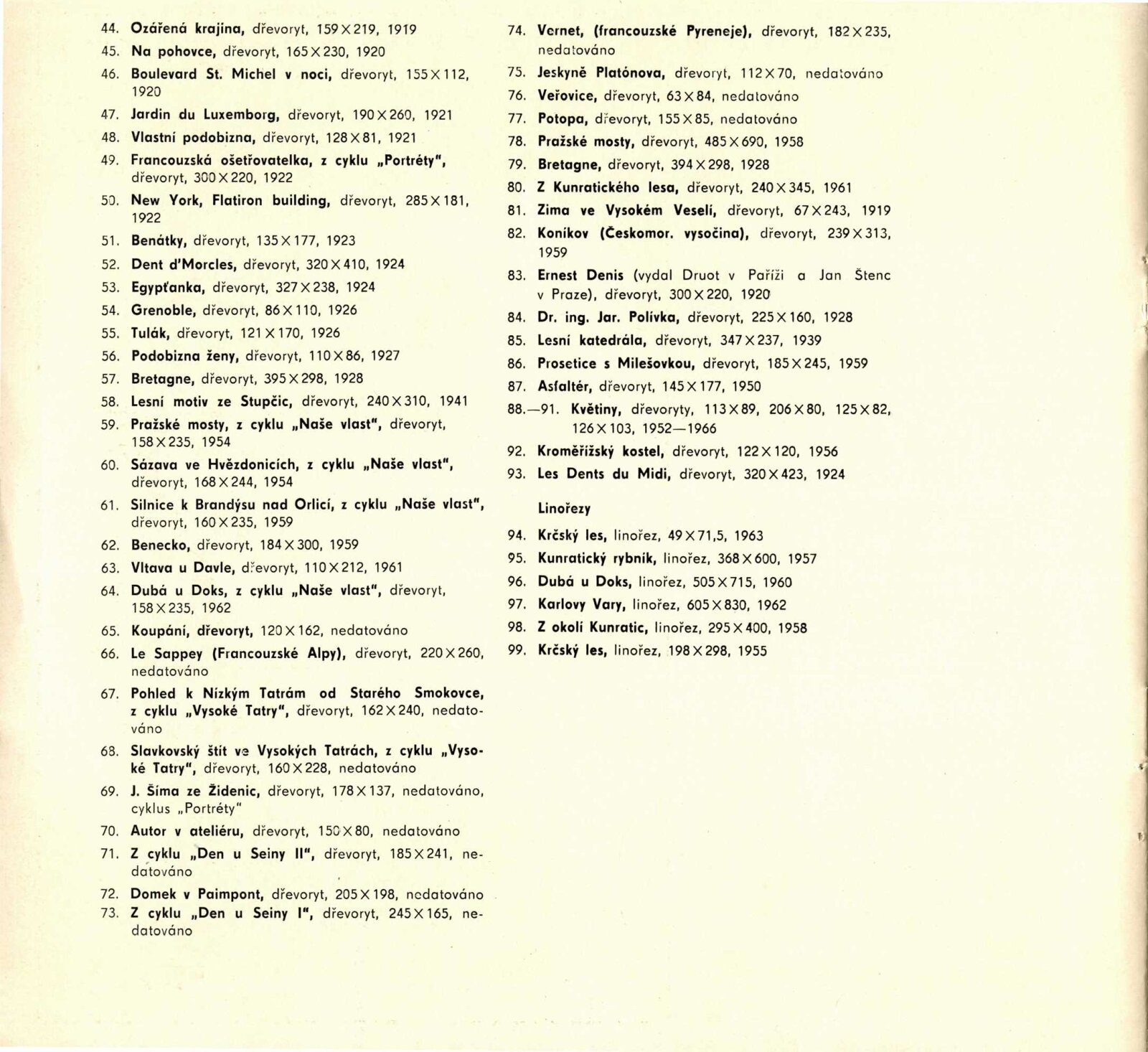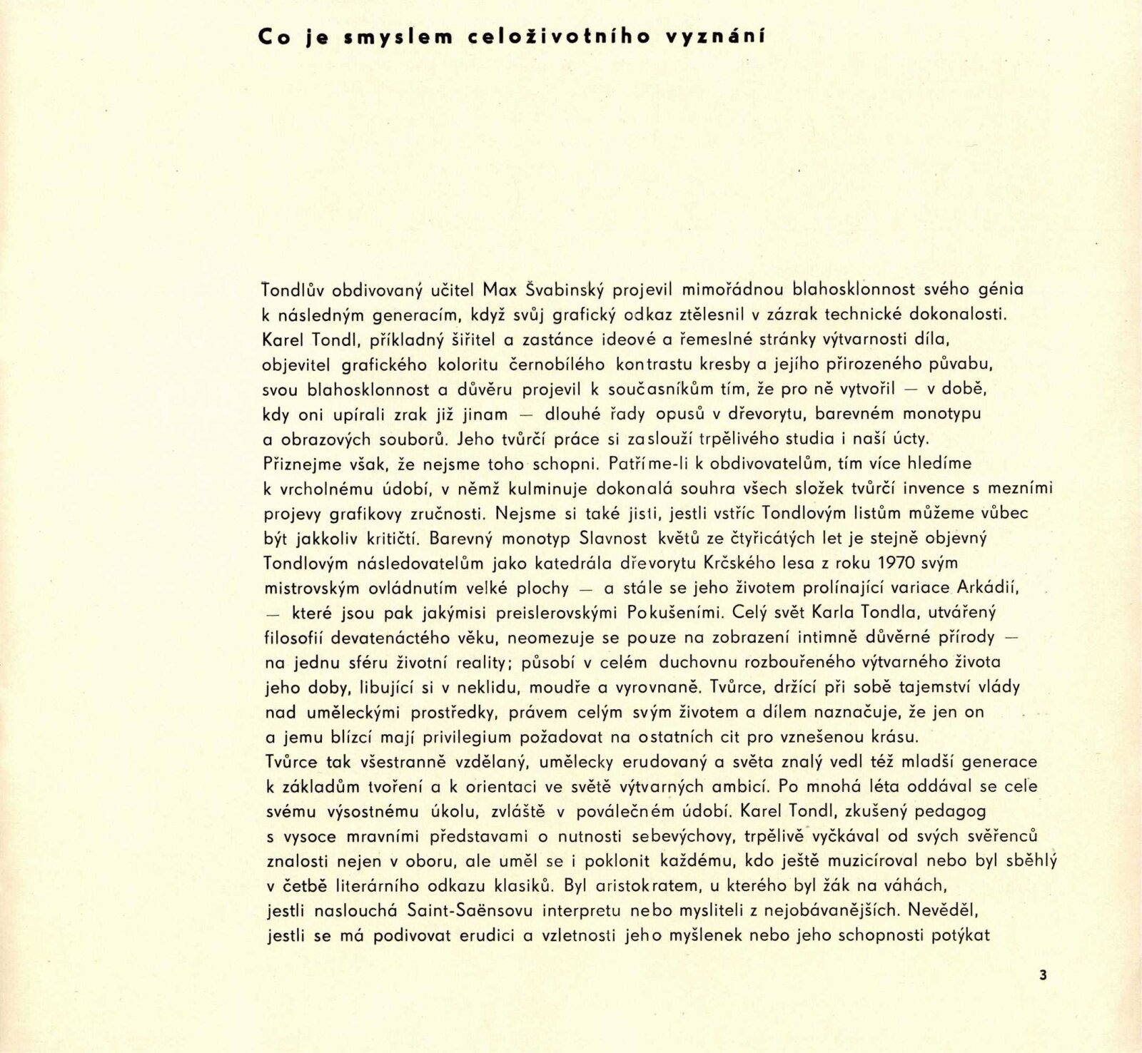 Karel Tondl: Dům umění / Dům pánů z Kunštátu, 142. výstava Kabinetu grafiky, 26. 4. – 2. 6. 1974 / Převzatý katalog. Karel Tondl. Výbor z grafického díla: Grafický kabinet Oblastní galerie výtvarného umění v Gottwaldově, říjen 1973 / Texty: Michal Plánka, Miroslav Kudrna. – Gottwaldov: Oblastní galerie výtvarného umění, 1973. – 15 s., obr., DPK 568. – MZK; MG