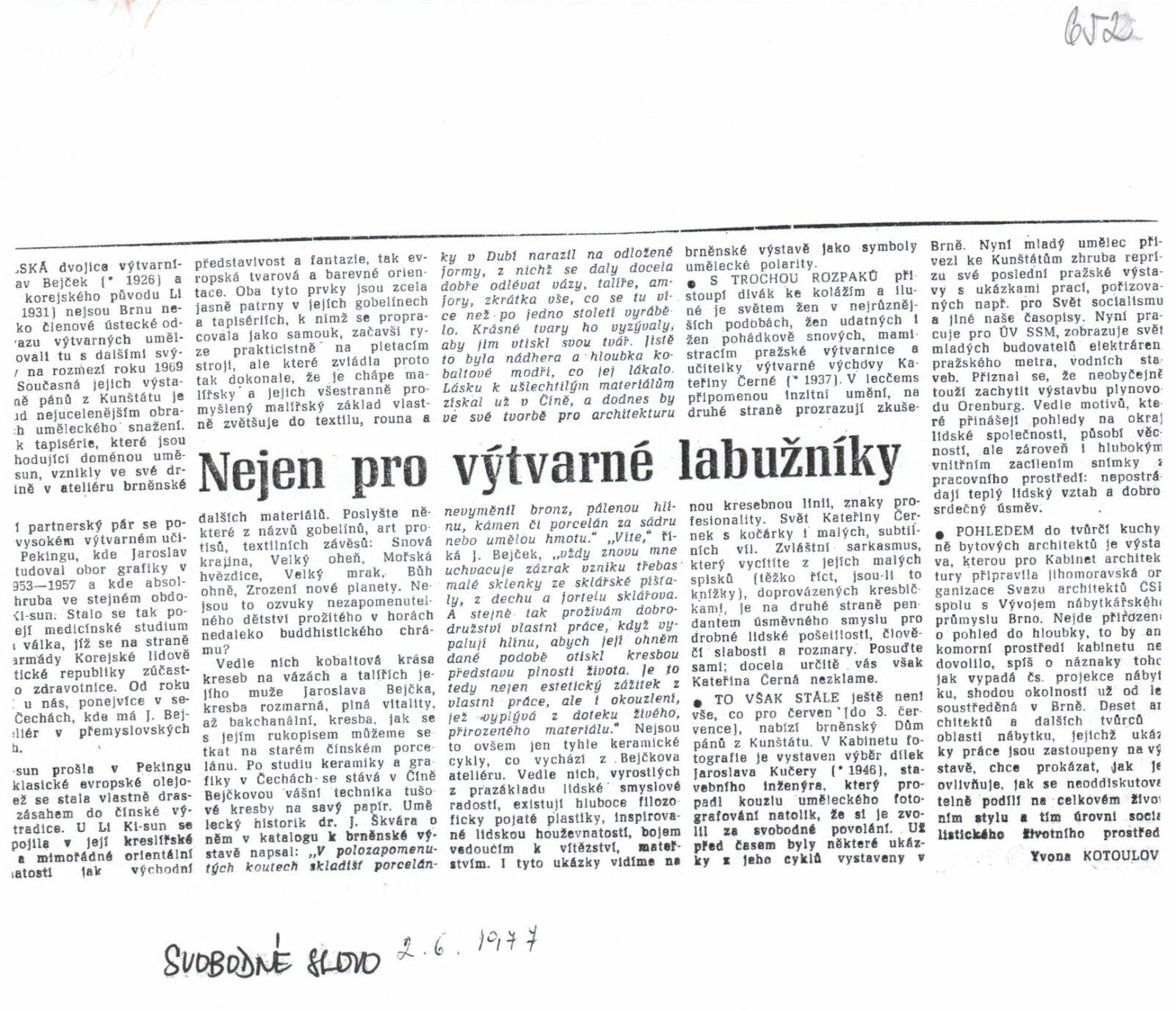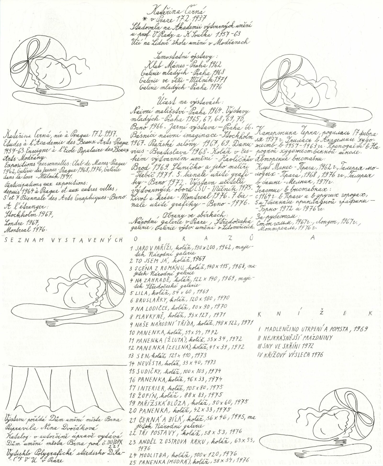 Kateřina Černá. Kabinet grafiky, Dům umění / Dům pánů z Kunštátu, 27. 5. – 3. 7. 1977 / Text: Nina Dvořáková. – Brno: DUmB, 1977. – slož. list v úpravě autorky, životní data, výstavy, díla ve sbírkách, DPK 652. – MZK; MG; MMB
