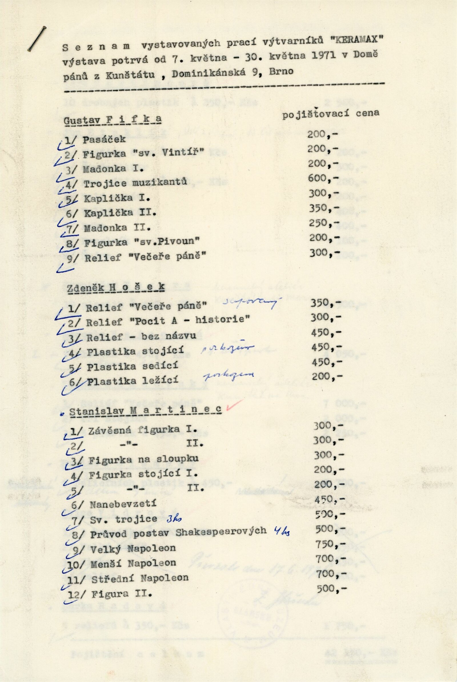 Keramax. Výstava keramiky: Dům umění města Brna / Dům pánů z Kunštátu, 7. 5. – 30. 5. 1971 / Text: vch. – Brno: DUmB, 1971. – 28 s., obr., DPK 470. – MZK; MG