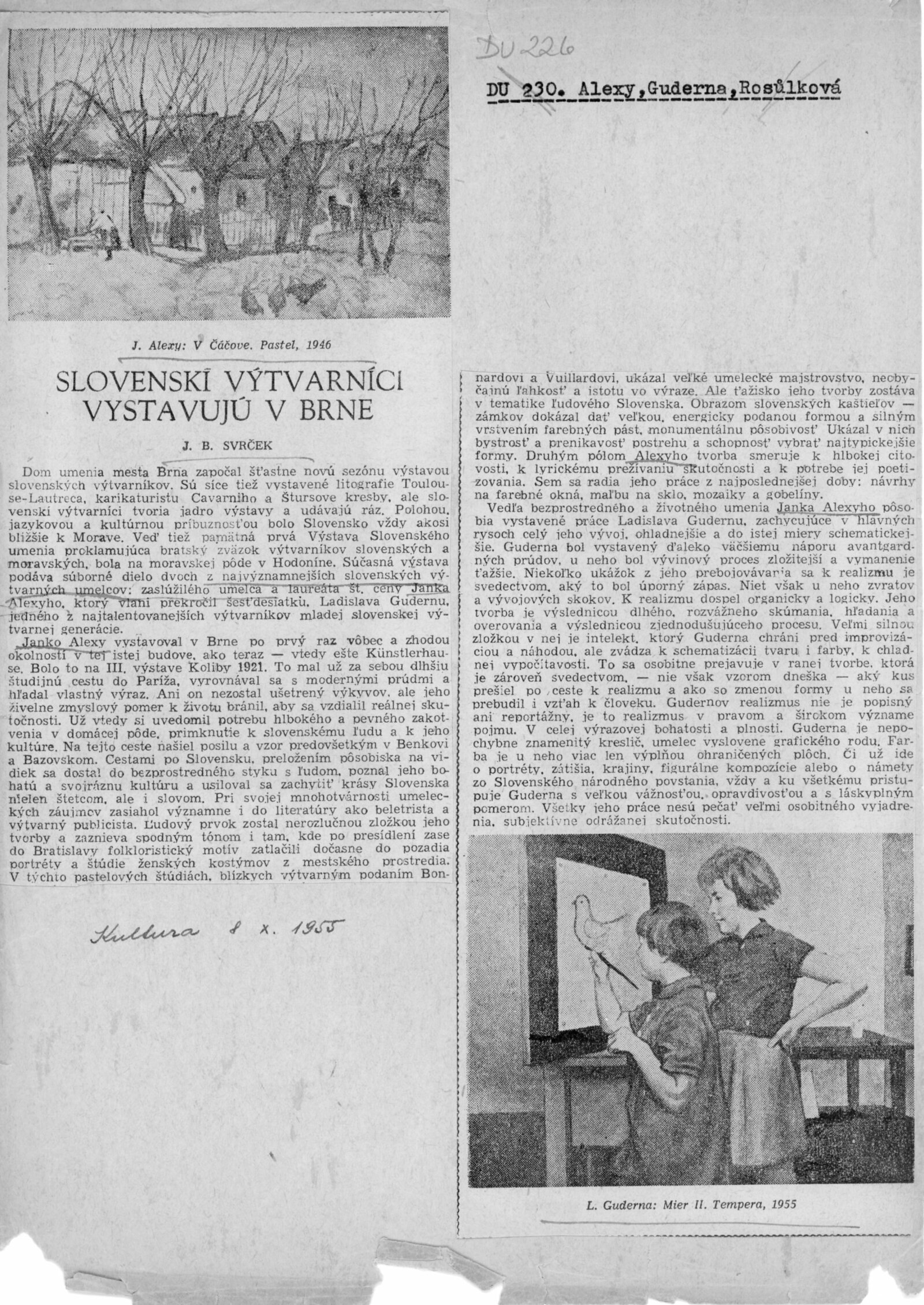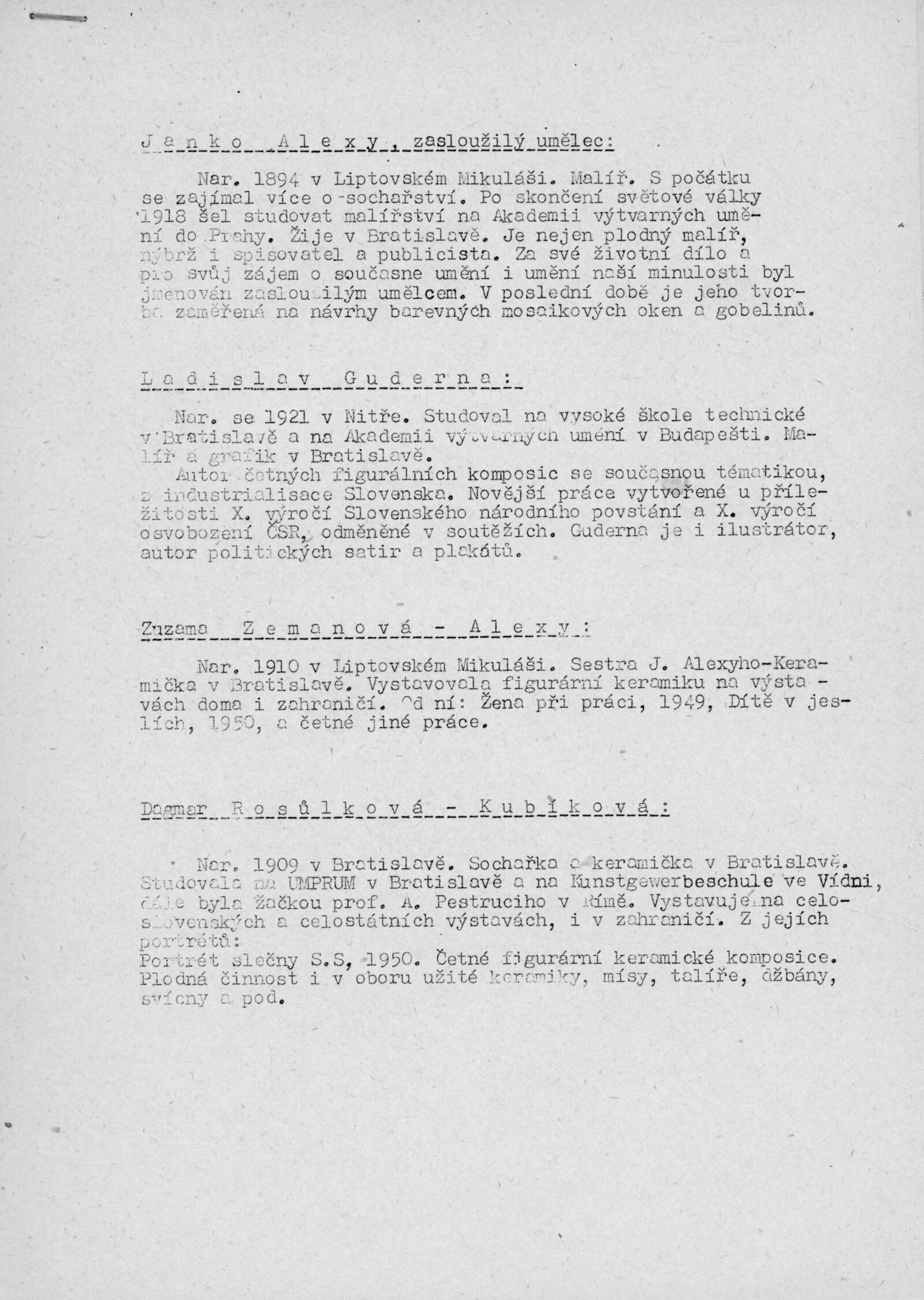 krátké medailony (Janko Alexy, Ladislav Guderna, Dagmar Rosůlková, Zuzana Zemanová), seznam děl