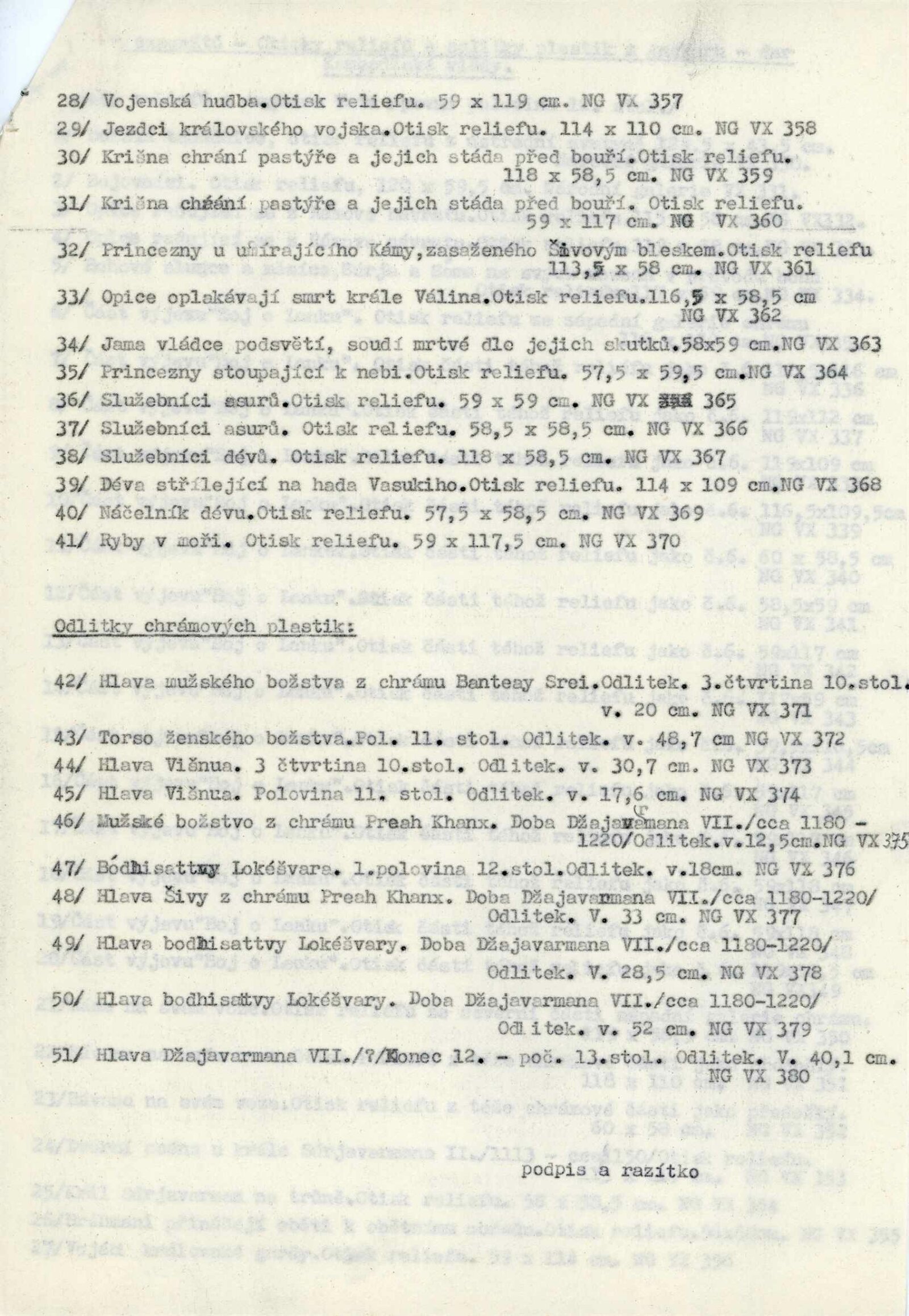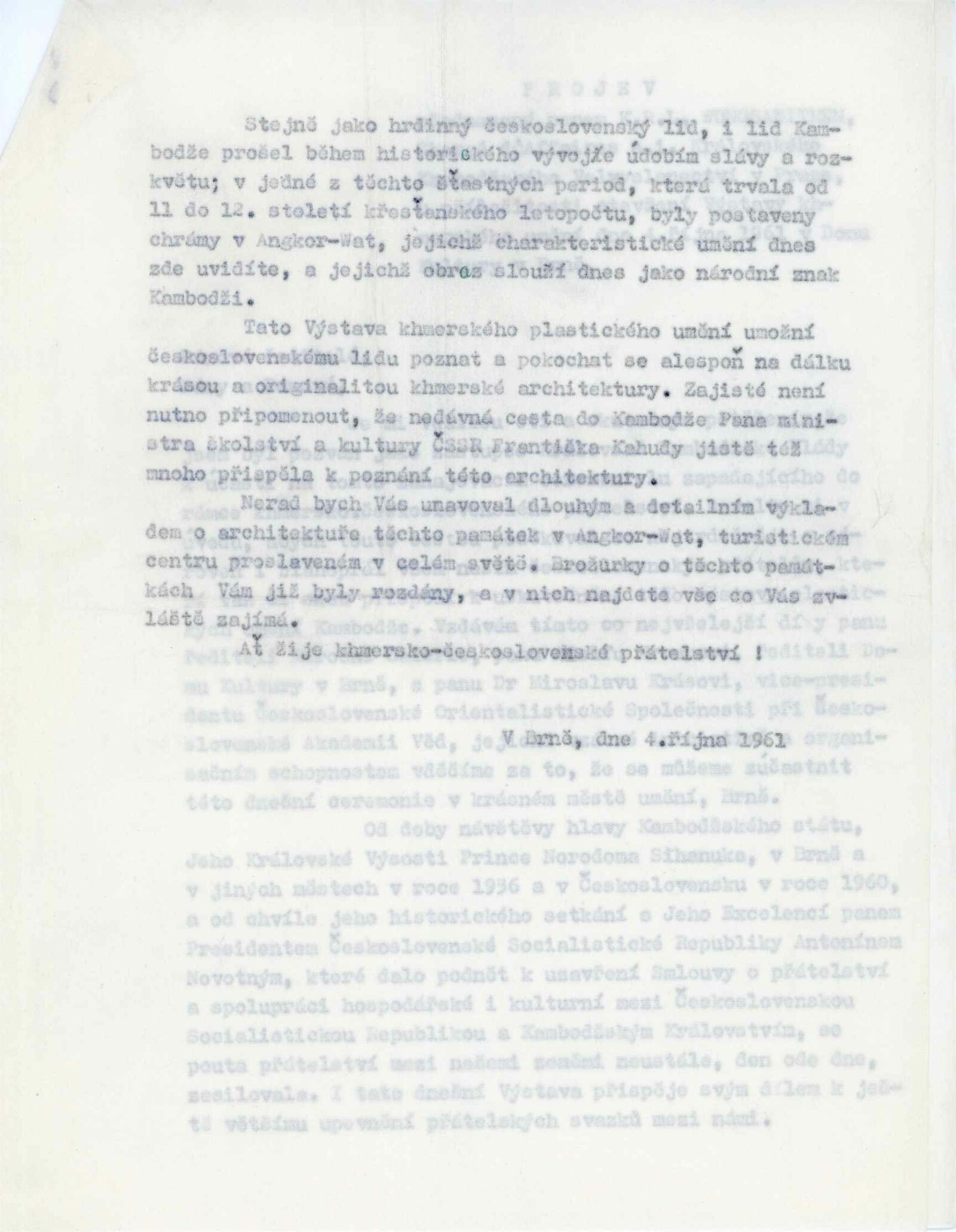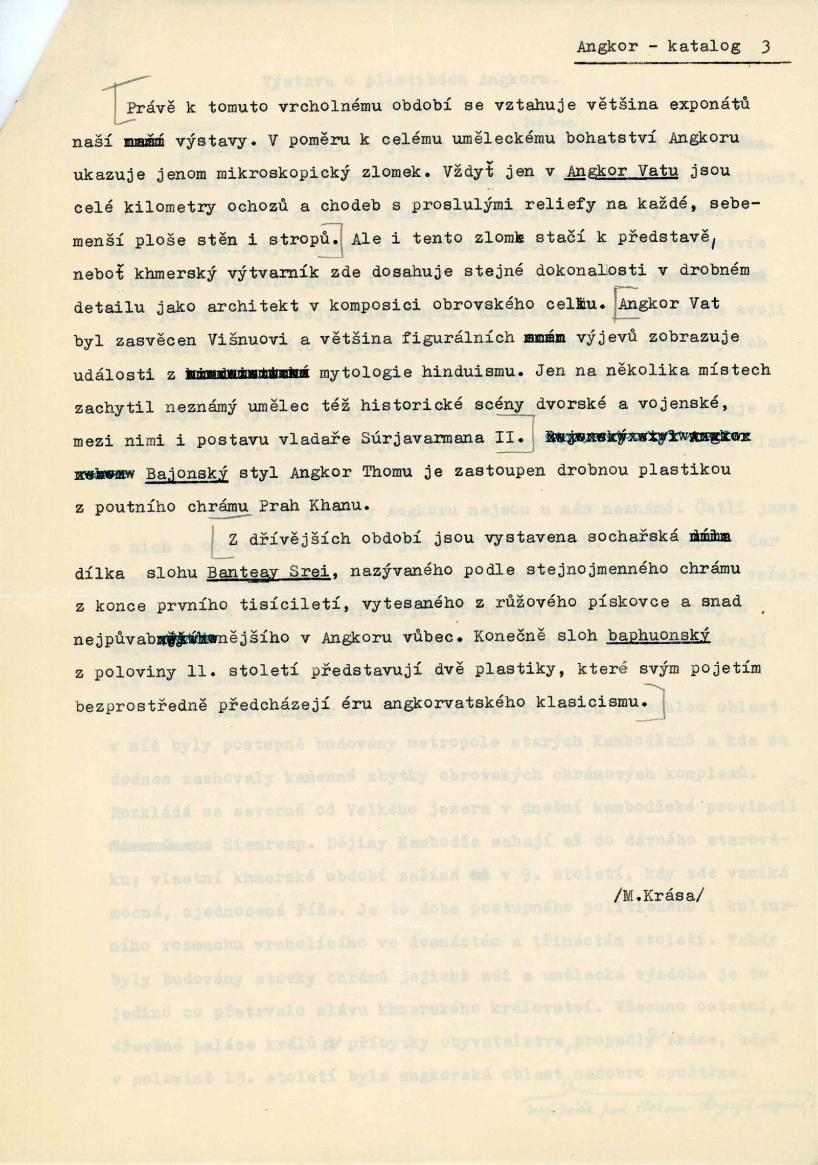 pozvánka, text katalogu (M. Krása), projev (kambodž. velvyslanectví v Praze při zahájení), seznam exponátů, žádost o povolení výstavy, reverz