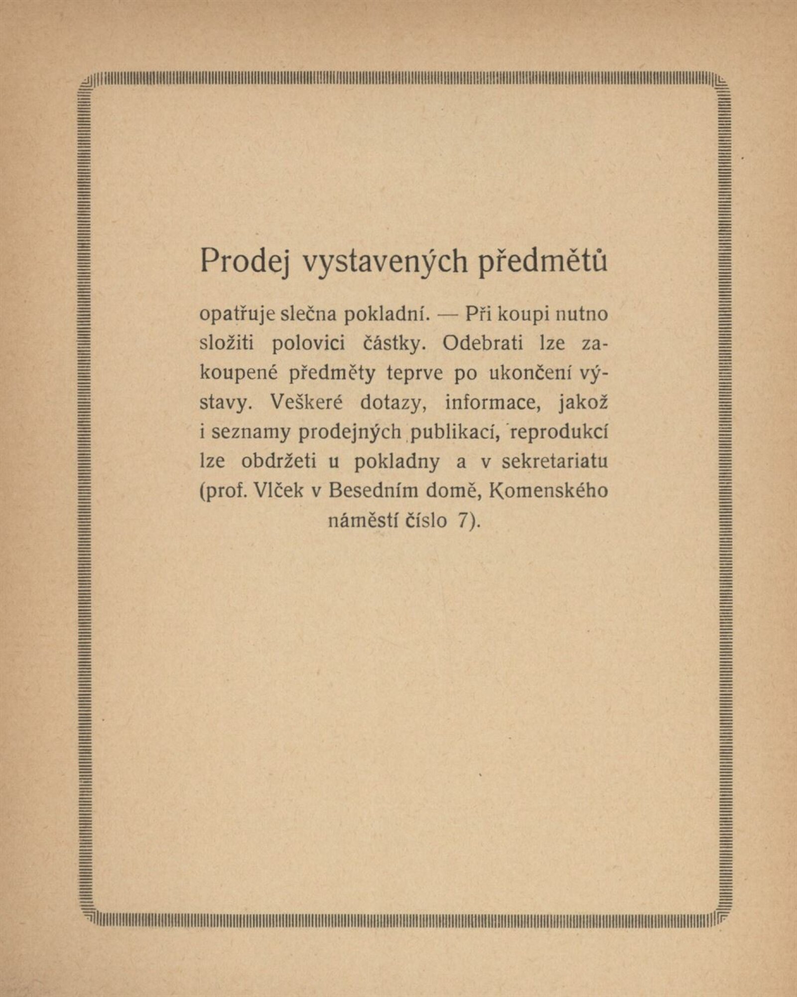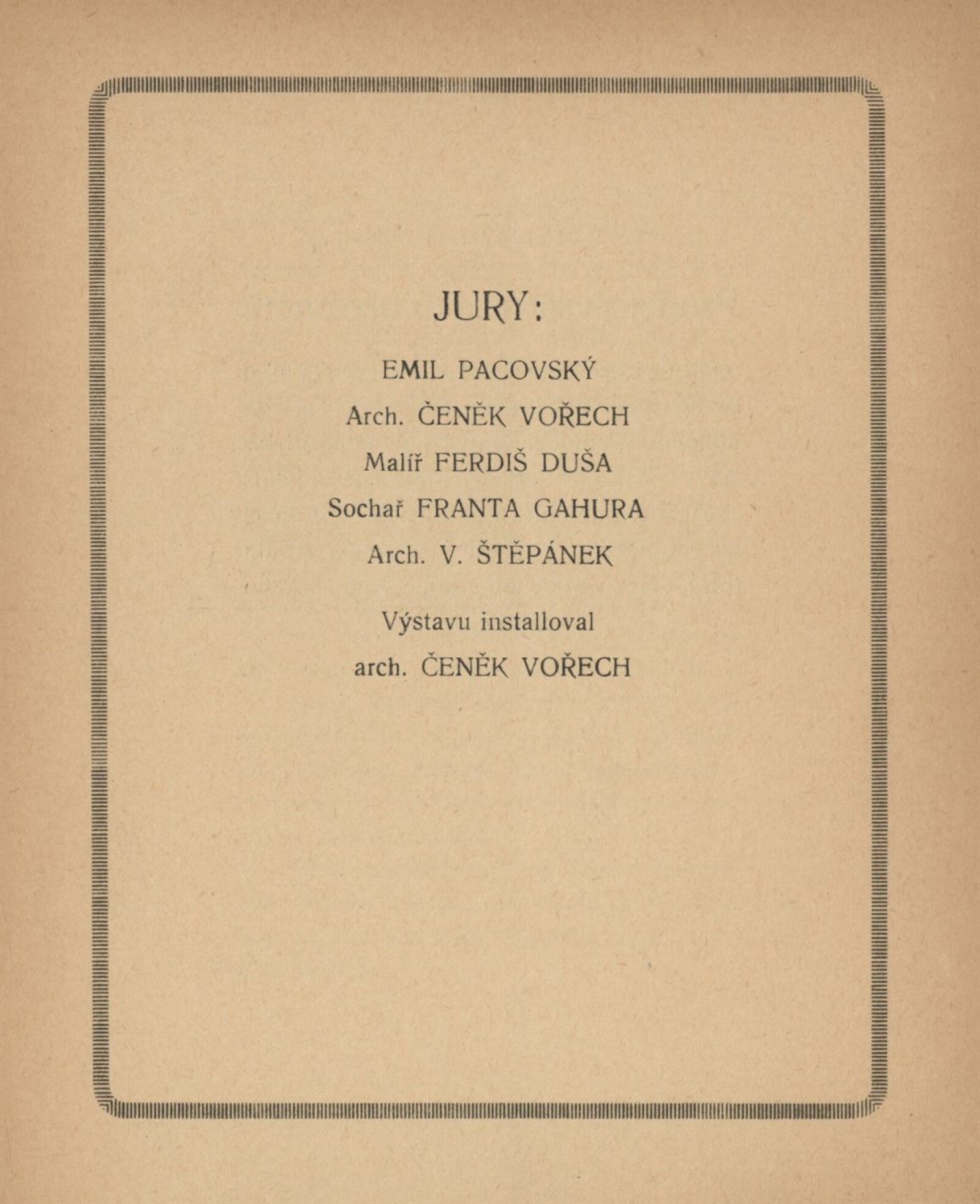 Výstavu instaloval arch. Čeněk Vořech. Digitalizovaný katalog poskytla Moravská zemská knihovna v Brně. Plakát výstavy se nachází ve sbírkách Moravské galerie v Brně: https://sbirky.moravska-galerie.cz/items/CZE:MG.GD_1449-b?has_image=true.
