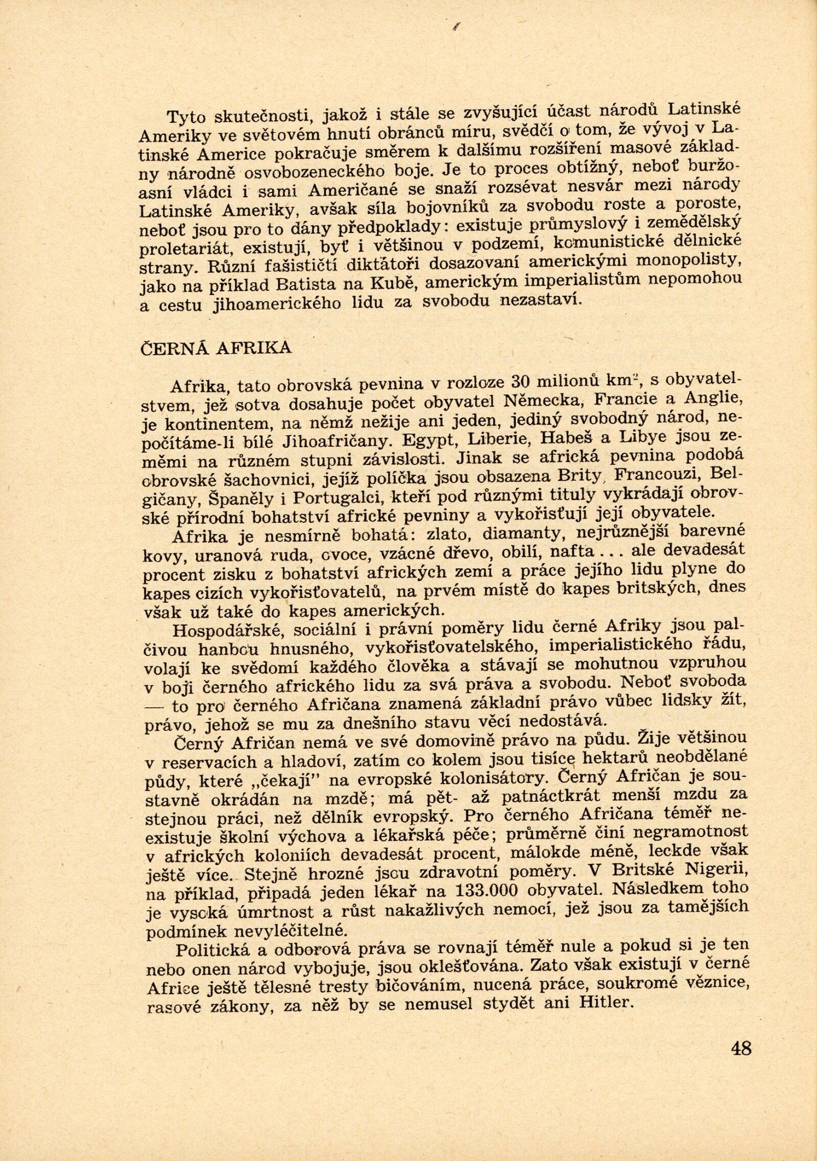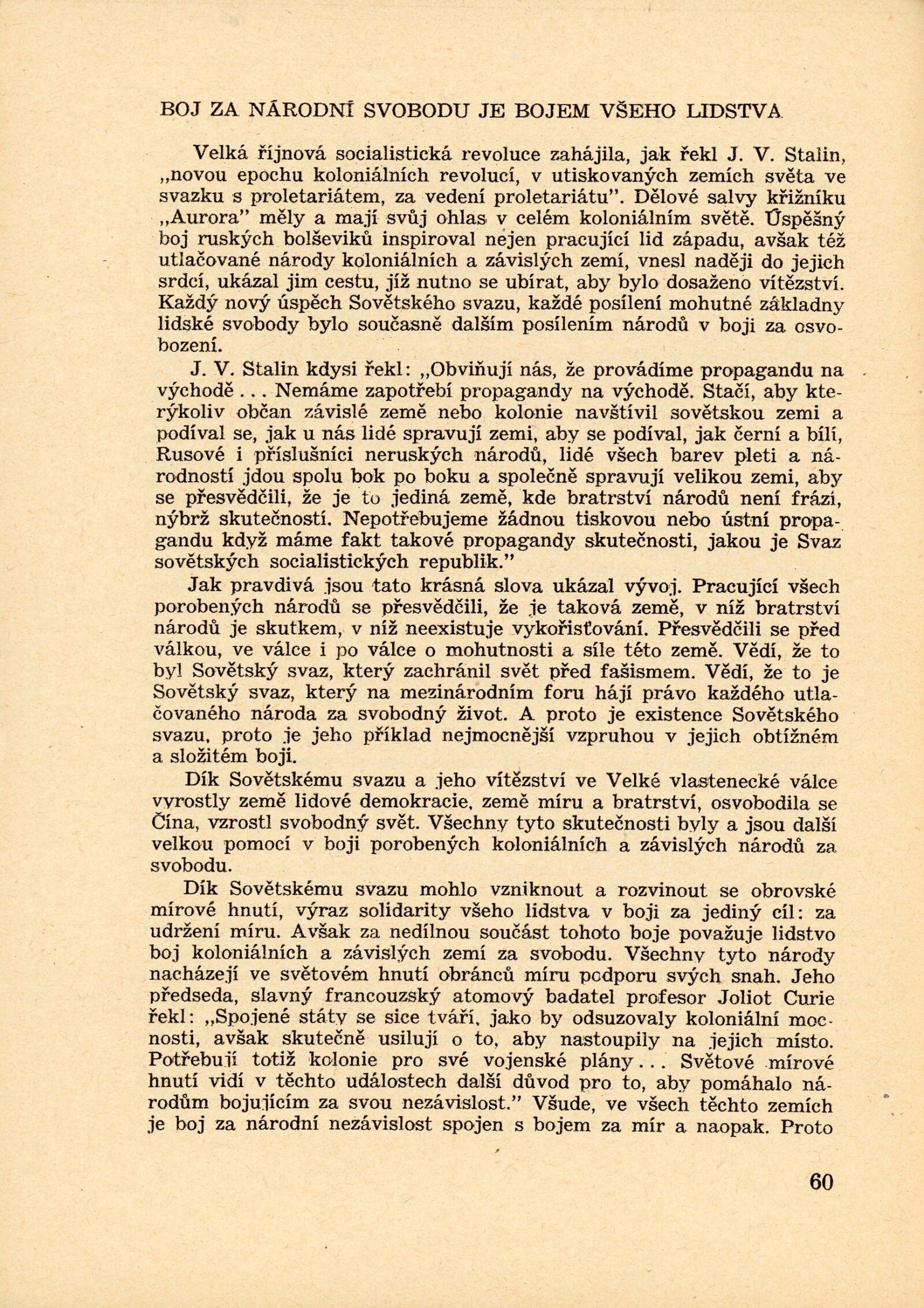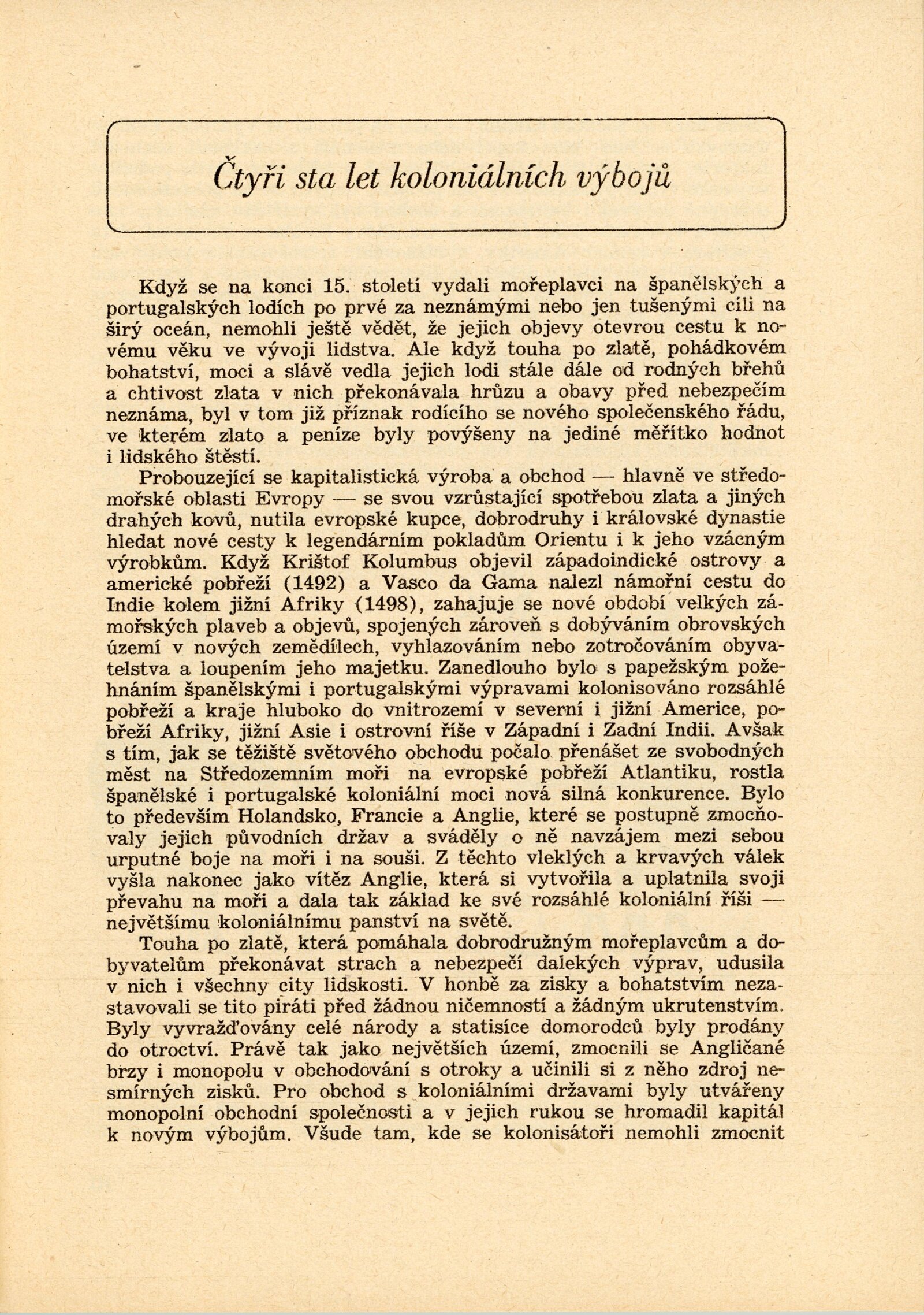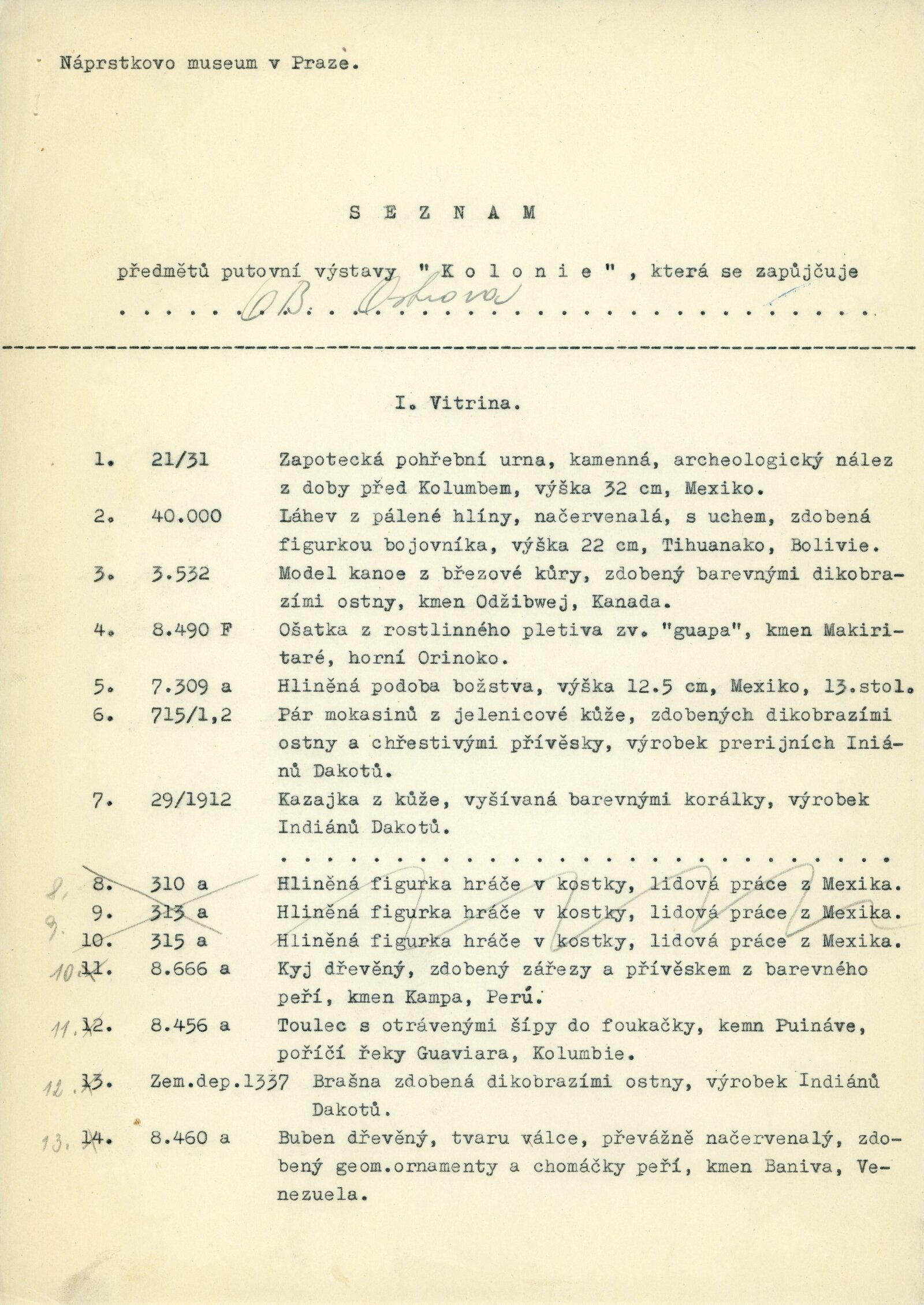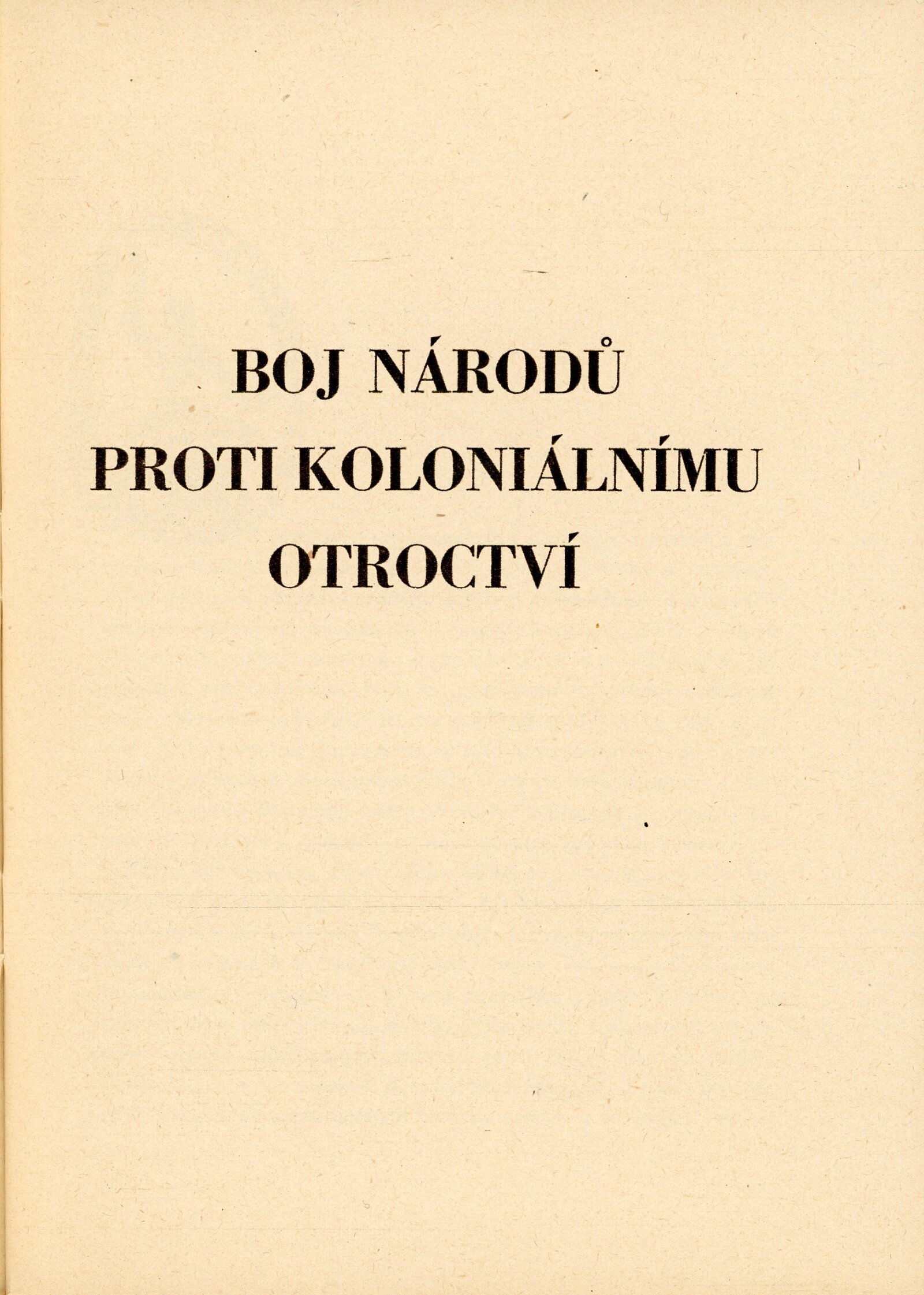 Kolonie: Dům umění v Brně, 23. 1. – 28. 2. 1954 / Převzatý katalog. Boj národů proti koloniálnímu otroctví: Národní museum v Praze / Náprstkovo museum v Praze, Československá společnost pro šíření politických a vědeckých znalostí, 1953 / Texty: Miloslav Krása, Miroslav Žemla, Jiří Štěpanovský, Zdeněk Seiner a Jiří Hronek. – Praha: Náprstkovo museum, 1953. – 61 s., DU 193. – MZK; MG