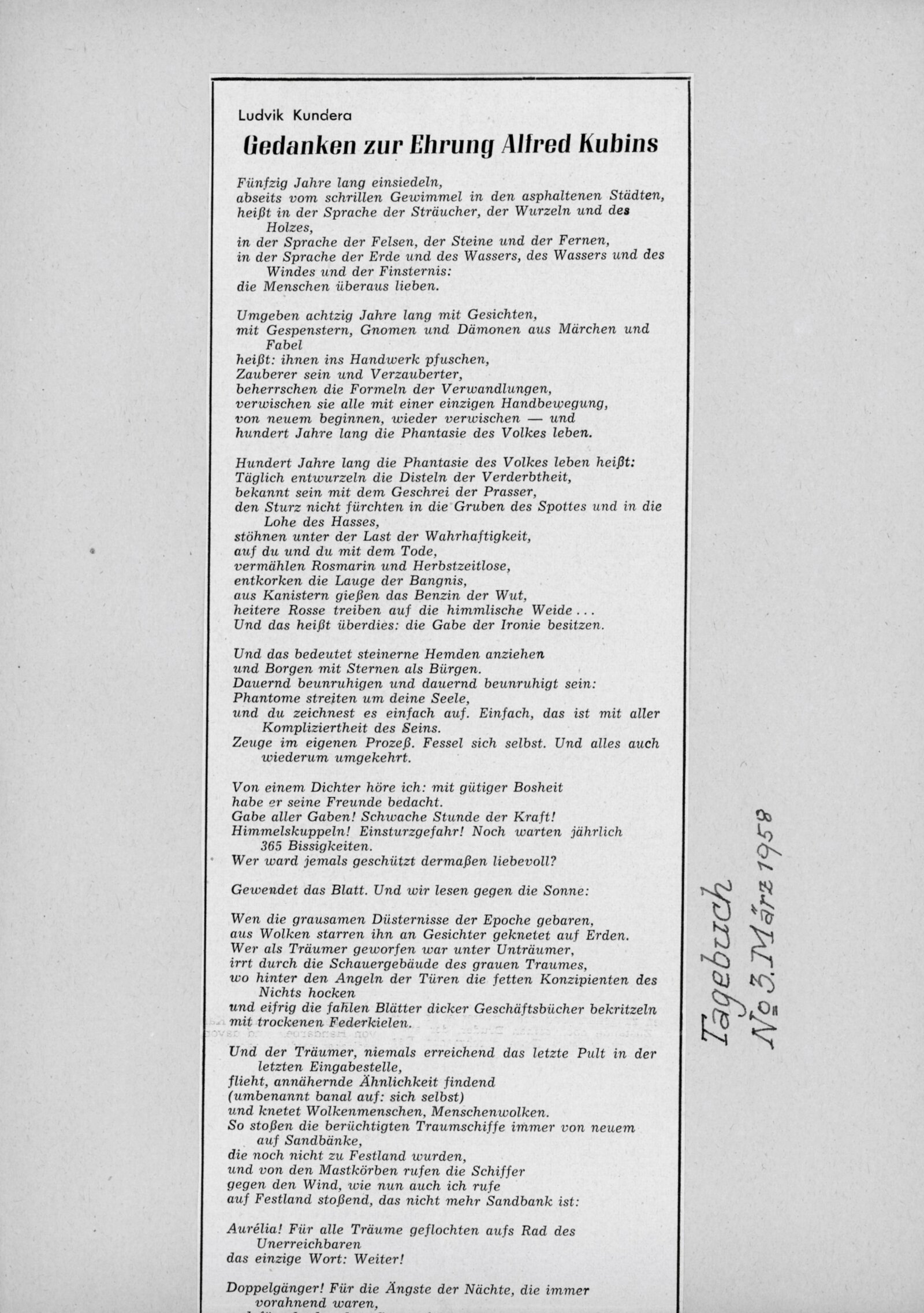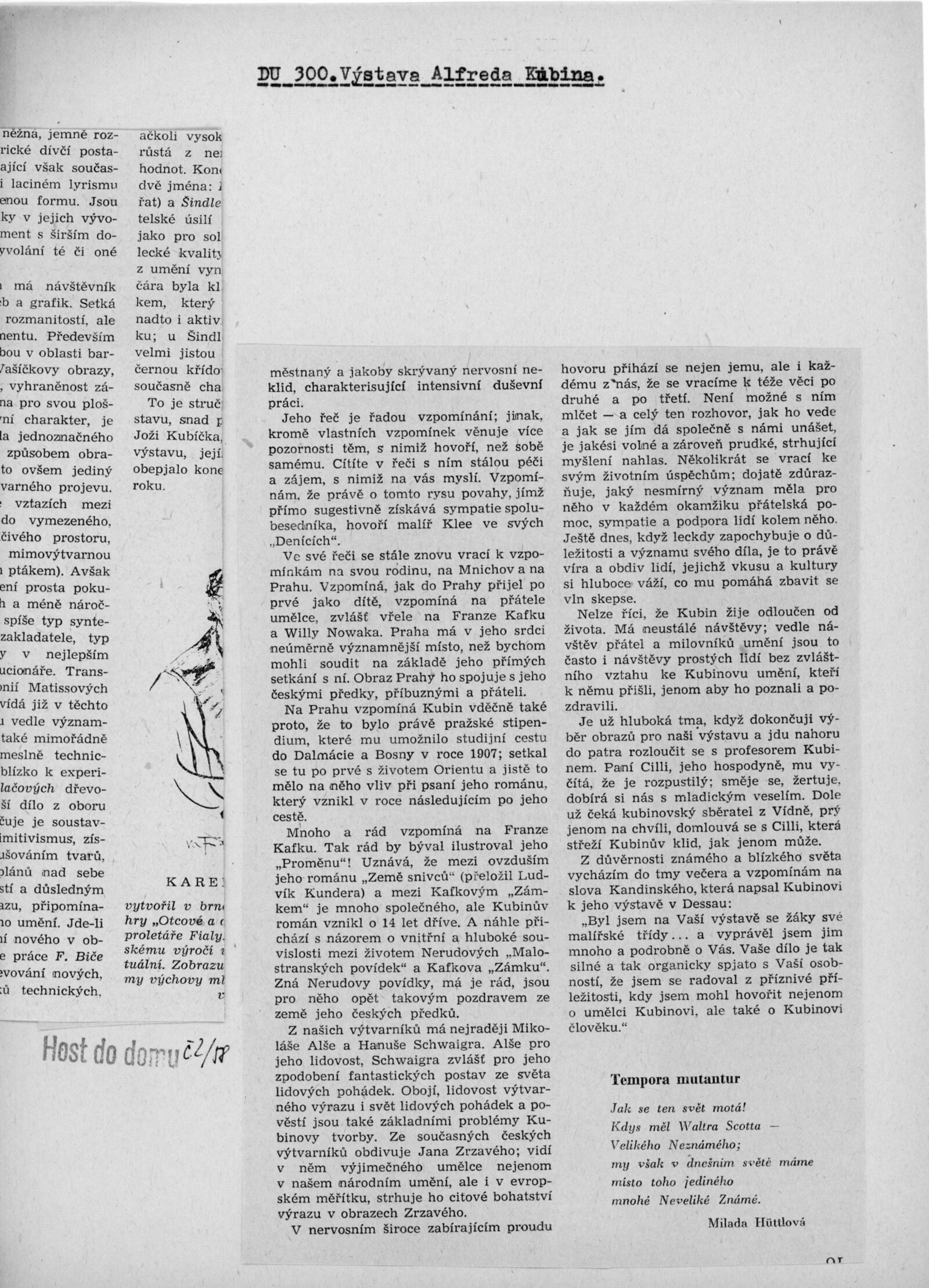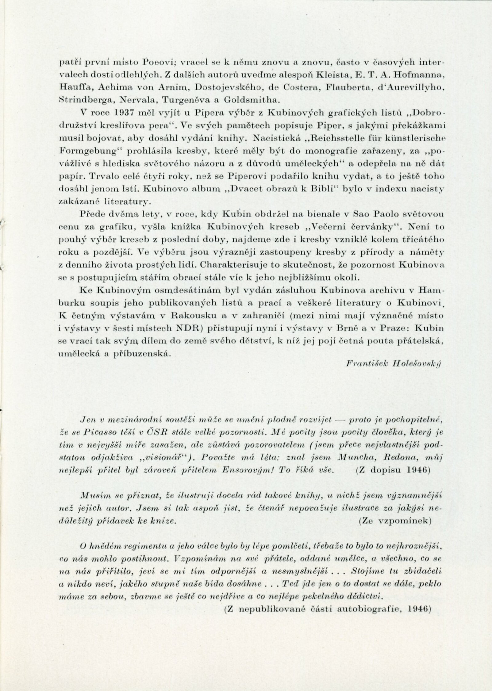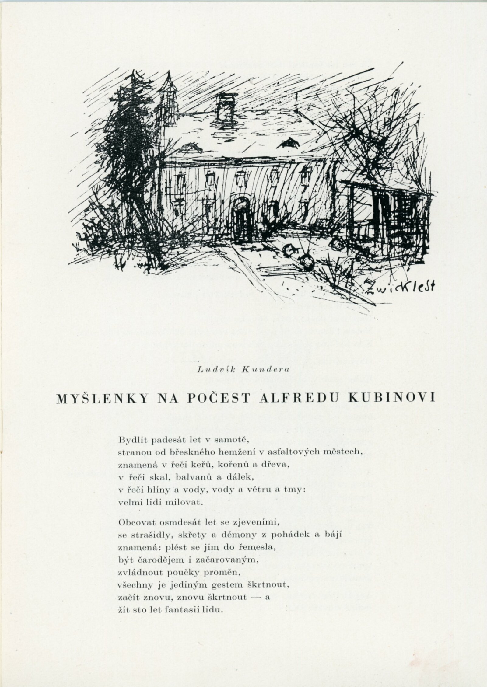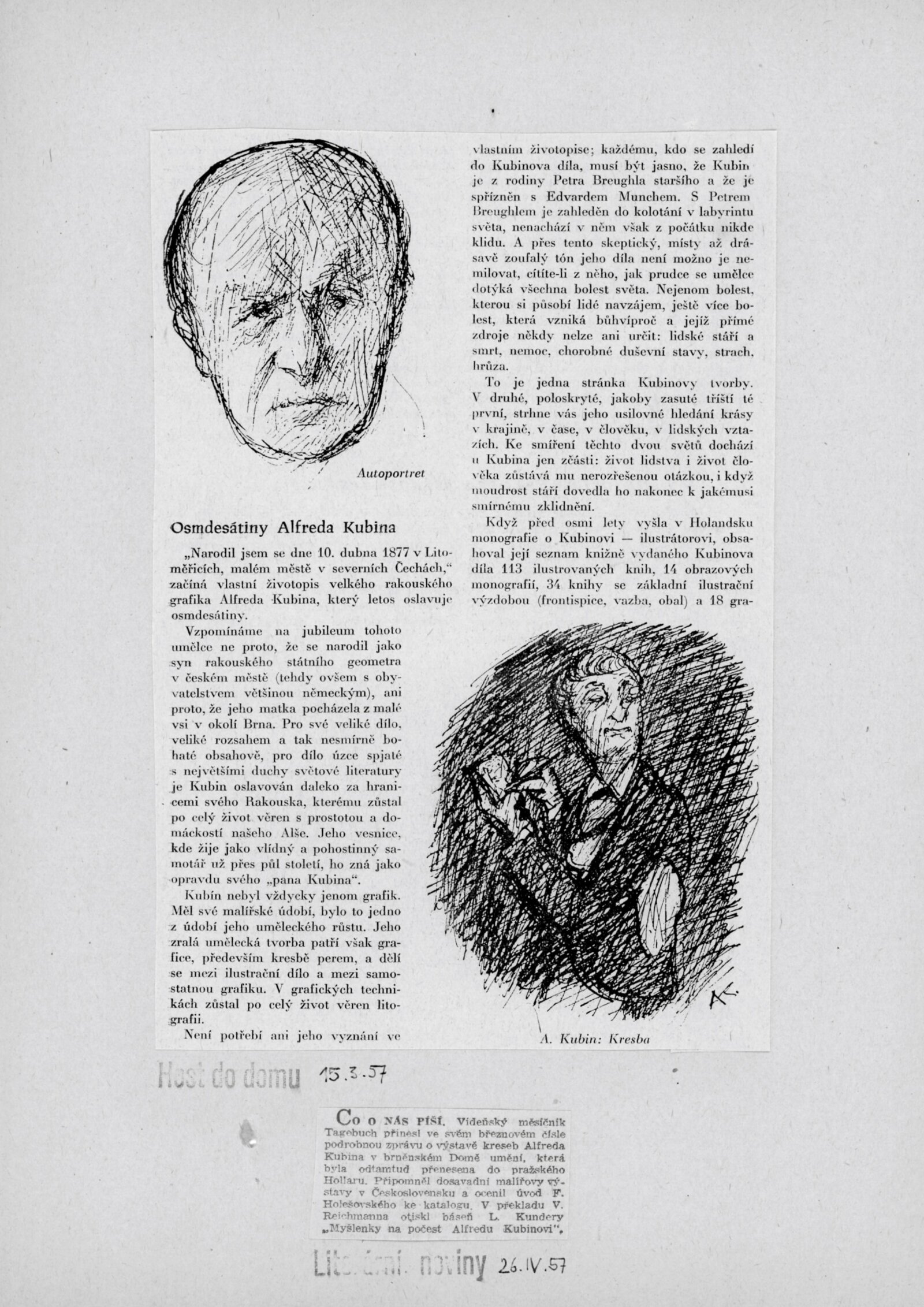 Krajina a lidé v díle Alfreda Kubina: Dům umění v Brně, 14. 12. 1957 – 12. 1. 1958 / Texty: Ludvík Kundera, František Holešovský, Alfred Kubin. – Brno: DUmB, 1957. – 18 s., obr., DU 300. – MZK; MG