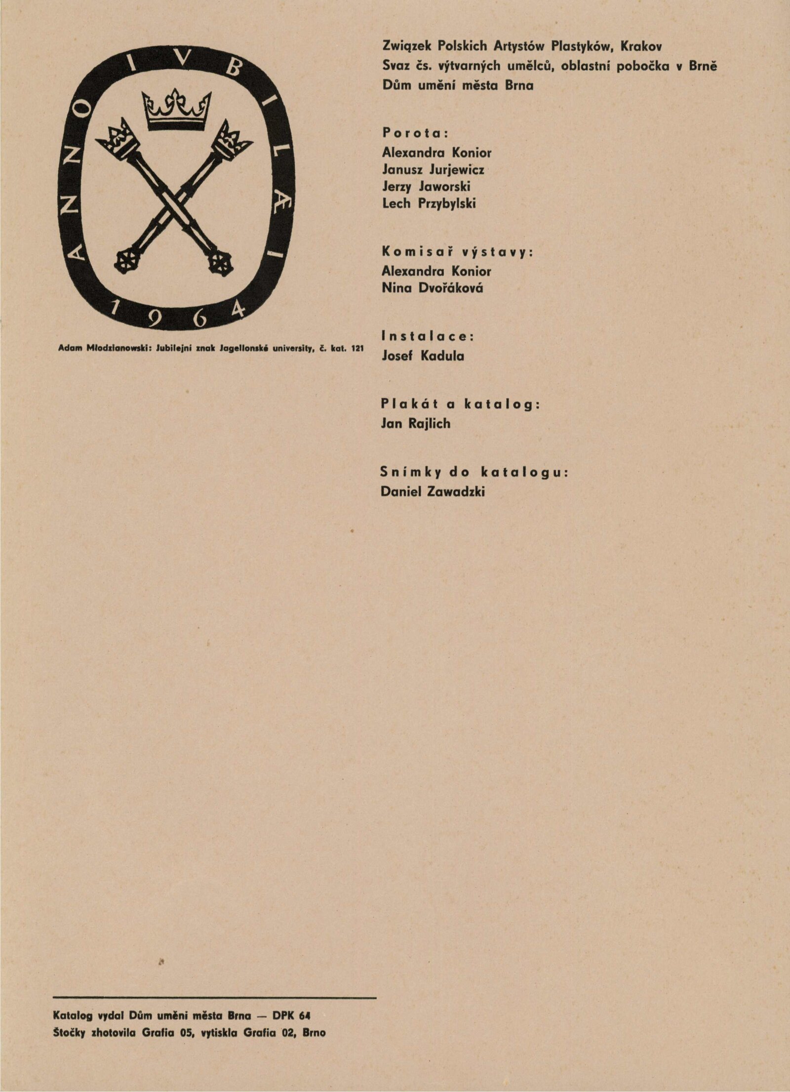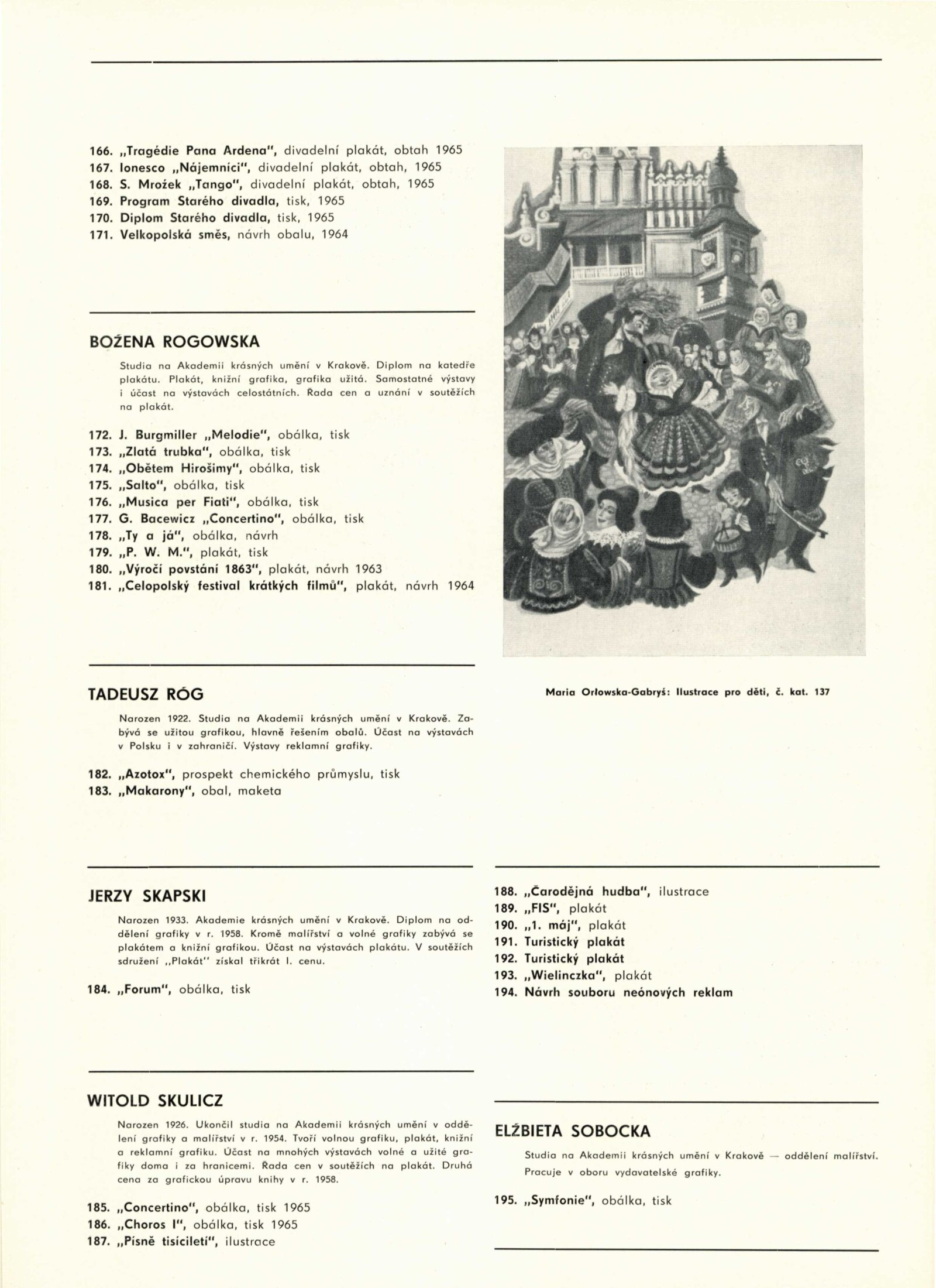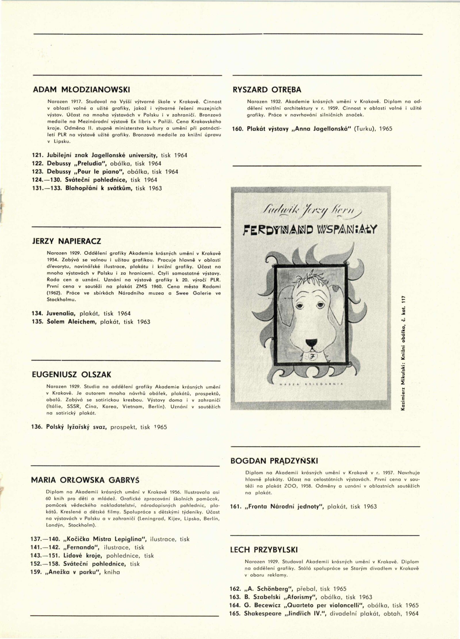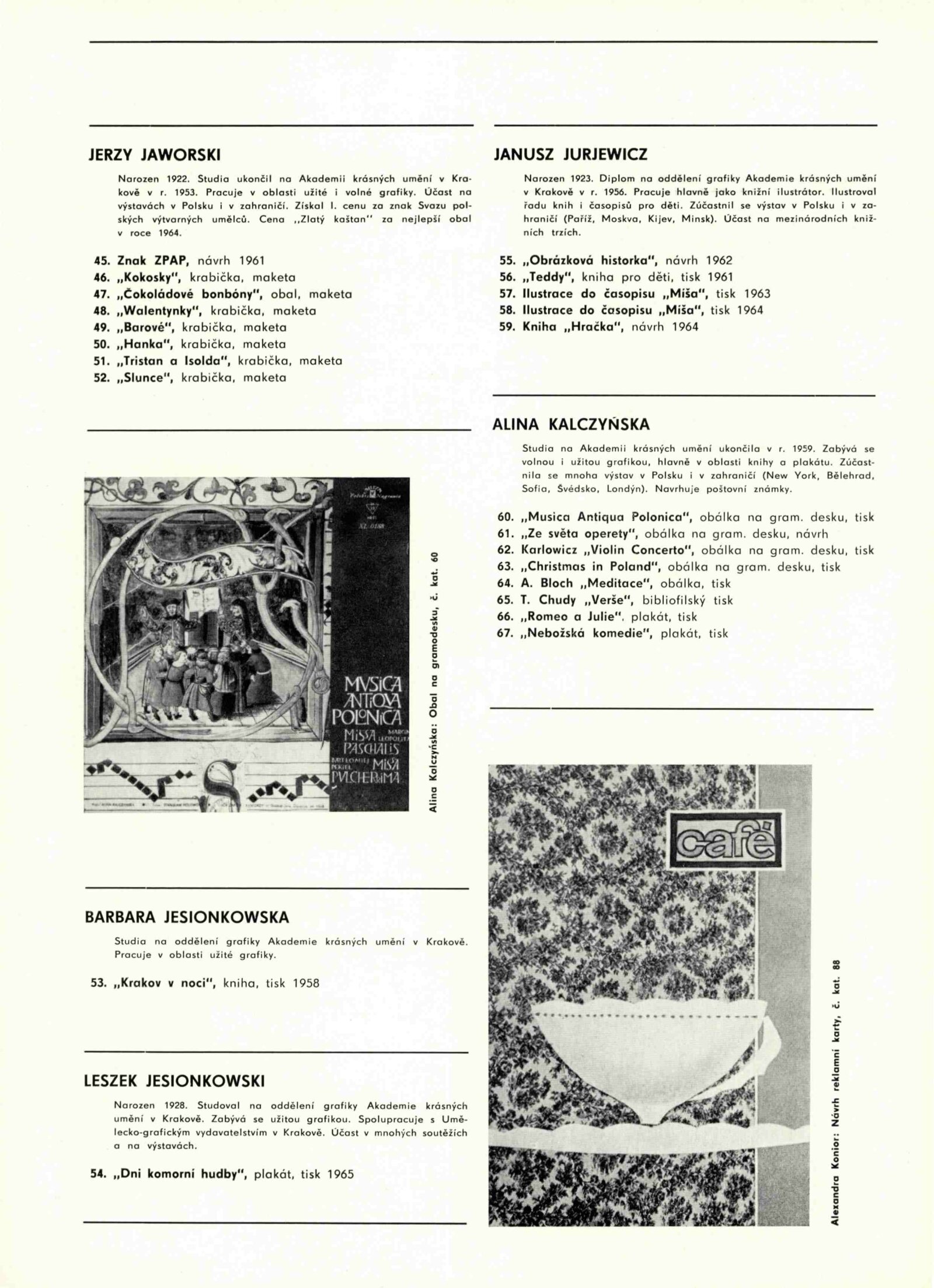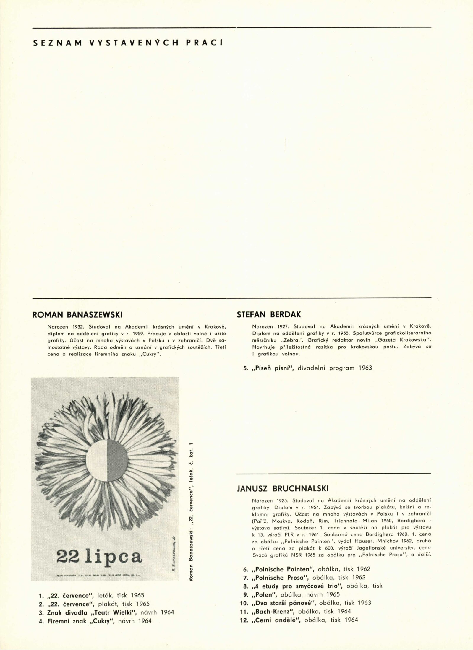 Užitá grafika. Krakov: Dům umění města Brna / Dům pánů z Kunštátu, 73. výstava Kabinetu grafiky, 4. 3. – 27. 3. 1966 / Text: Nina Dvořáková. – Brno: DUmB, 1966. – 15 s., obr., životní data vystavujících, DPK 299. – MZK; MG